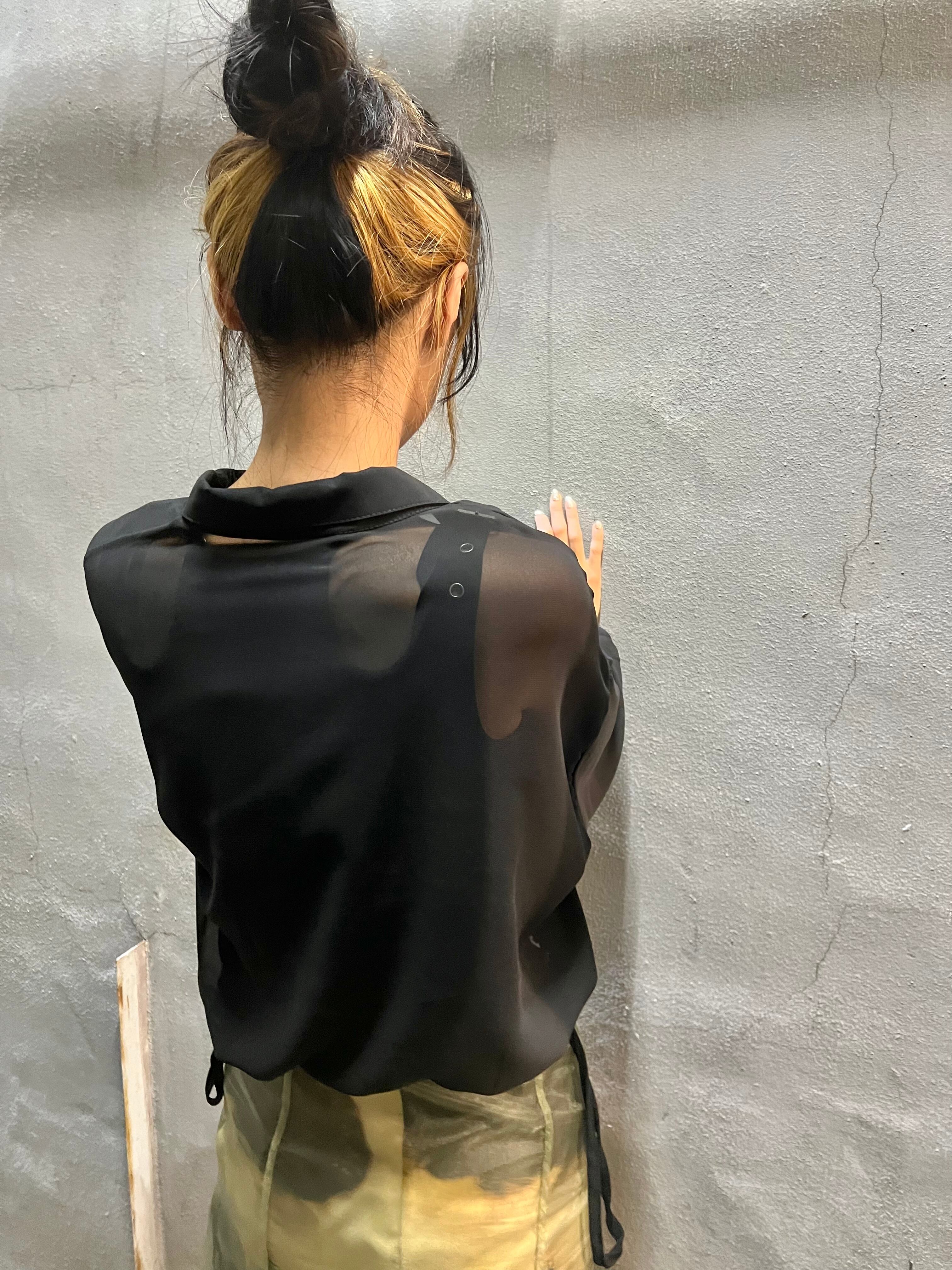 black chiffon shirt tops シフォン シャツ トップス デザイントップス シースルー