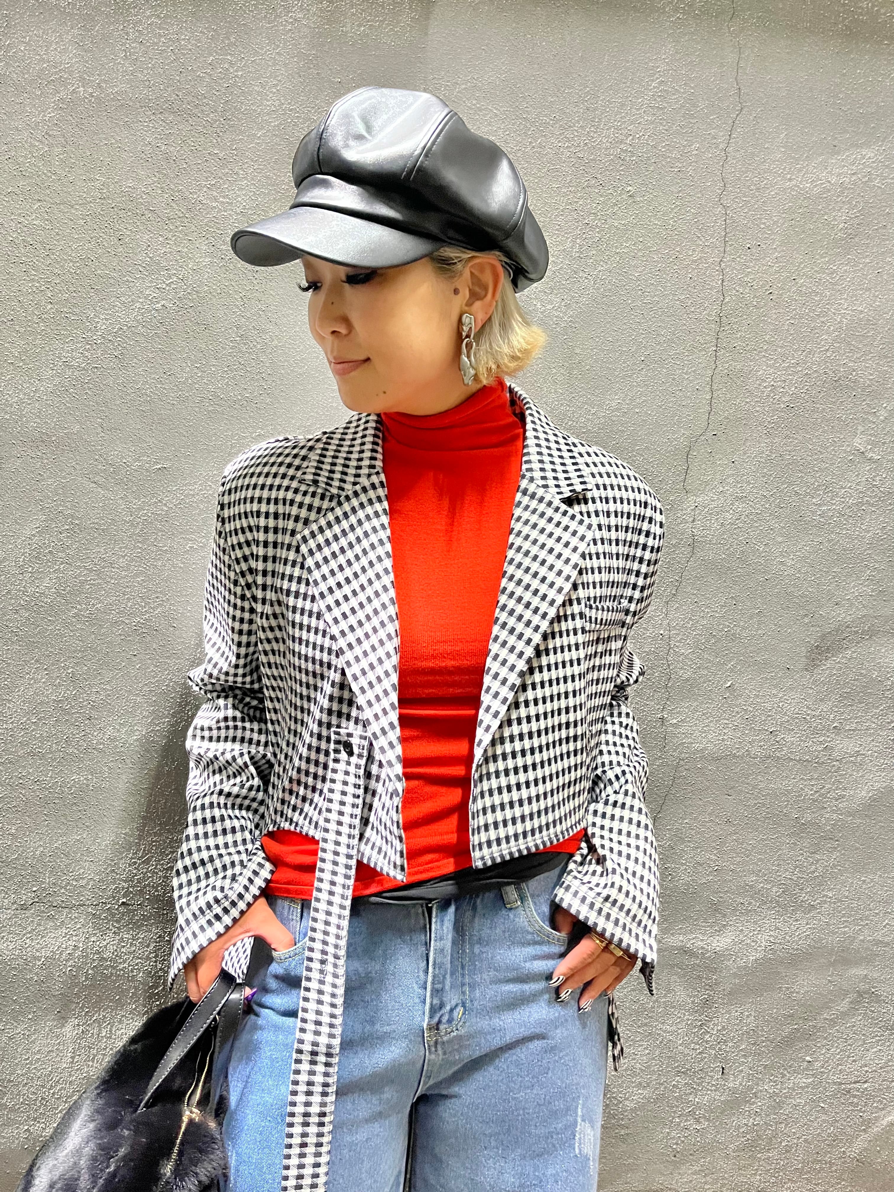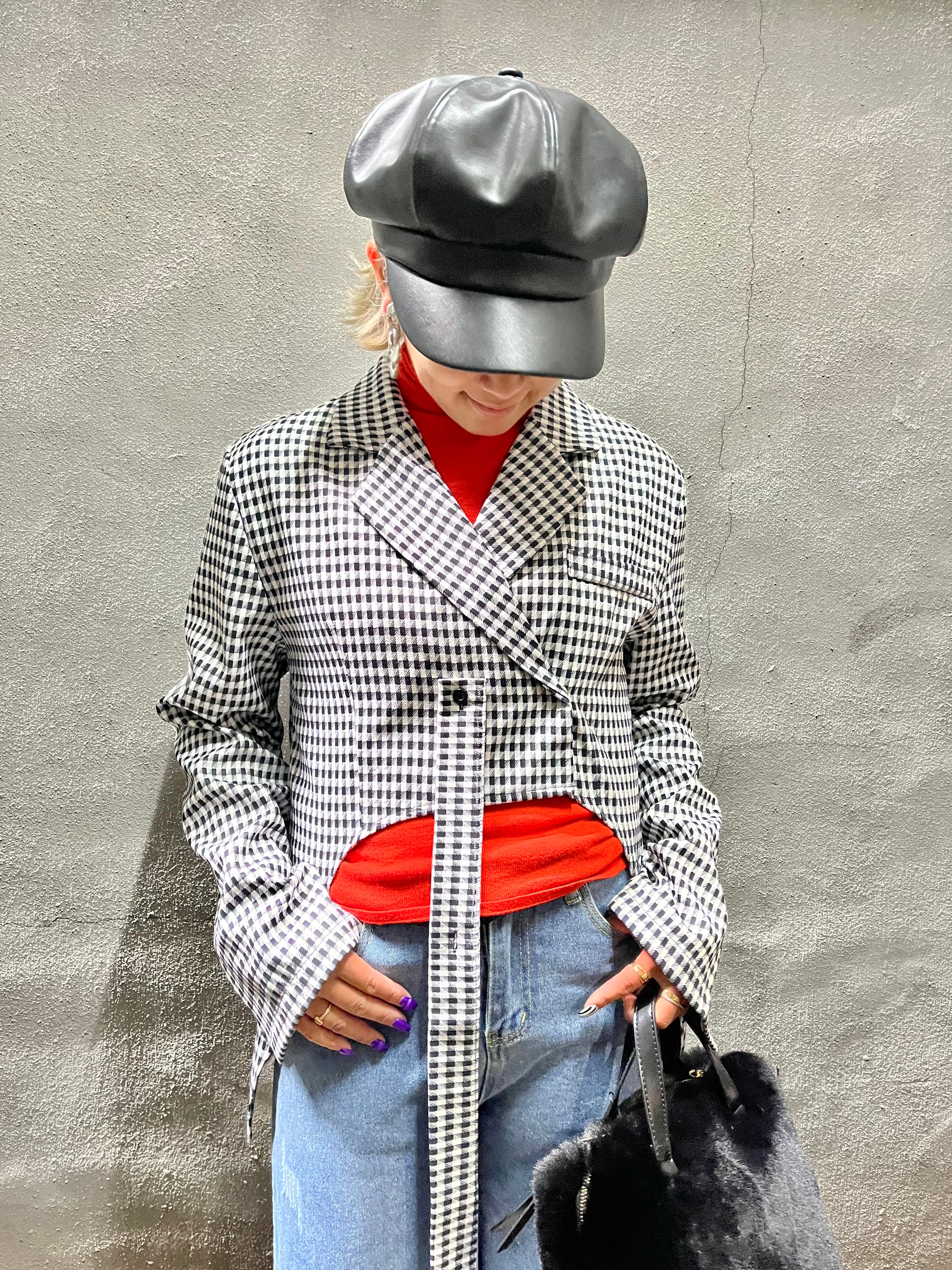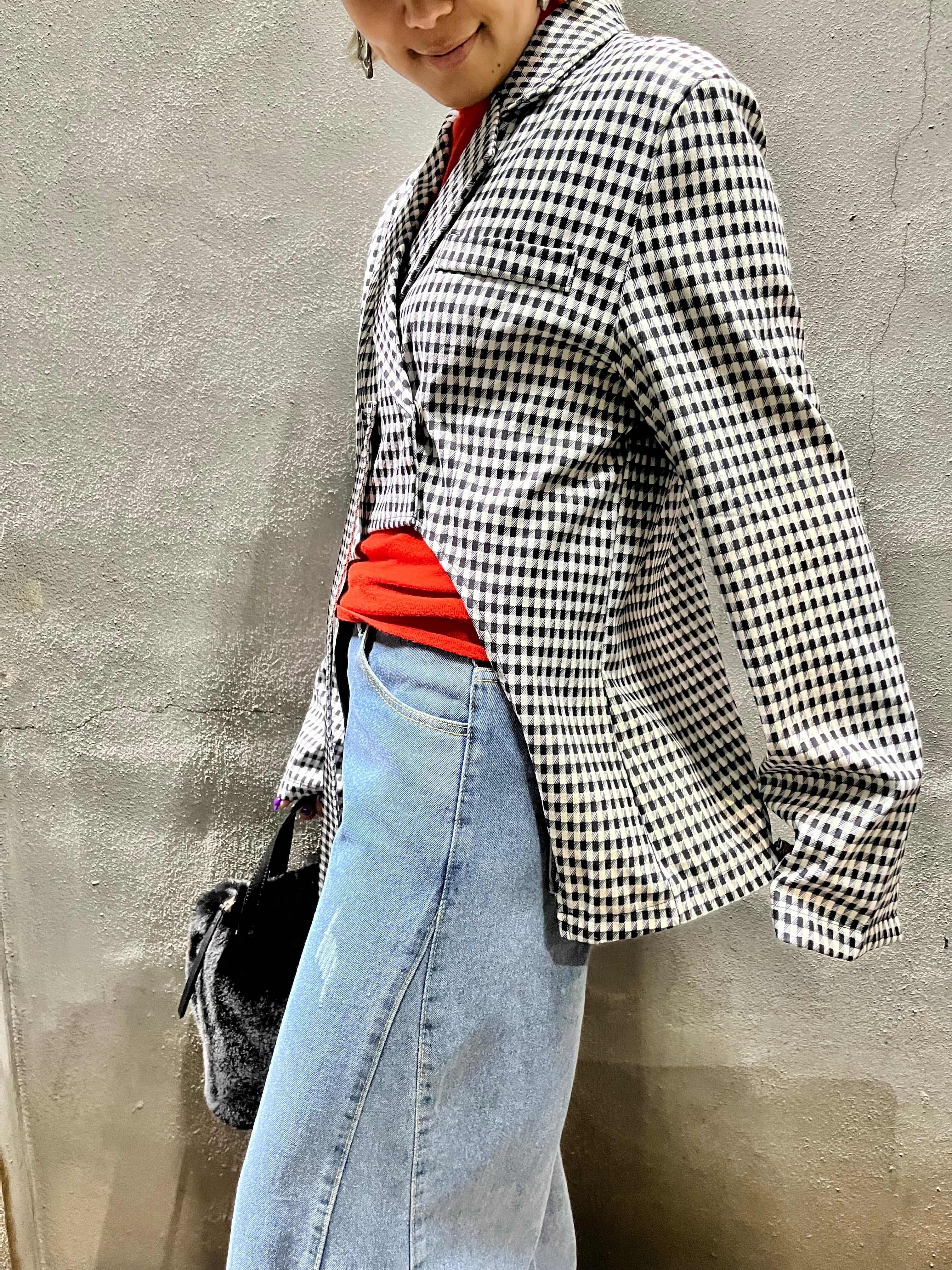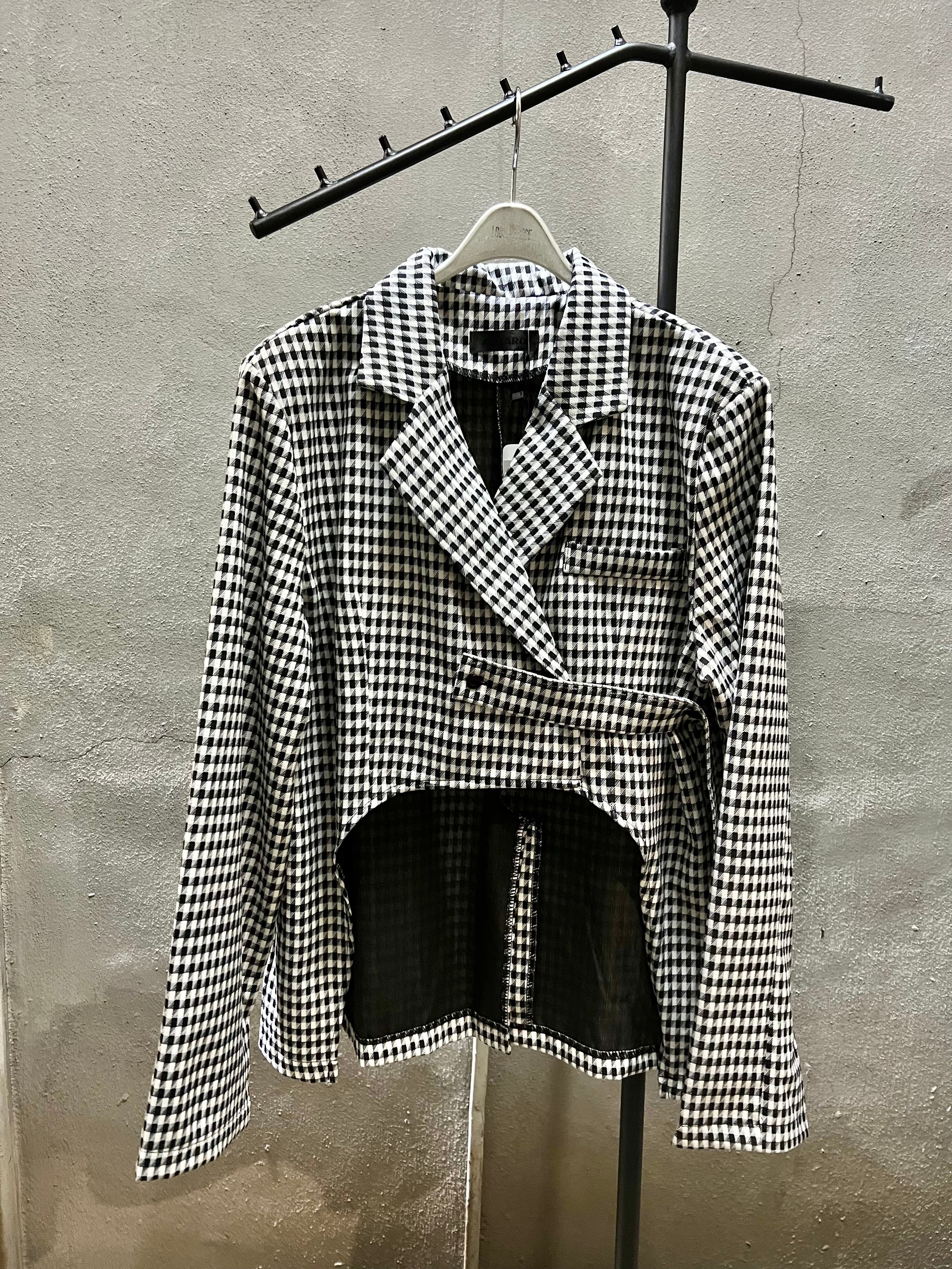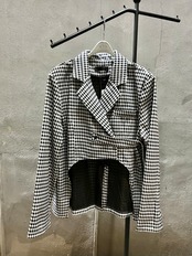 chec pattern short long design jacket ジャケット デザインジャケット チェック バイカラー 白黒 個性派