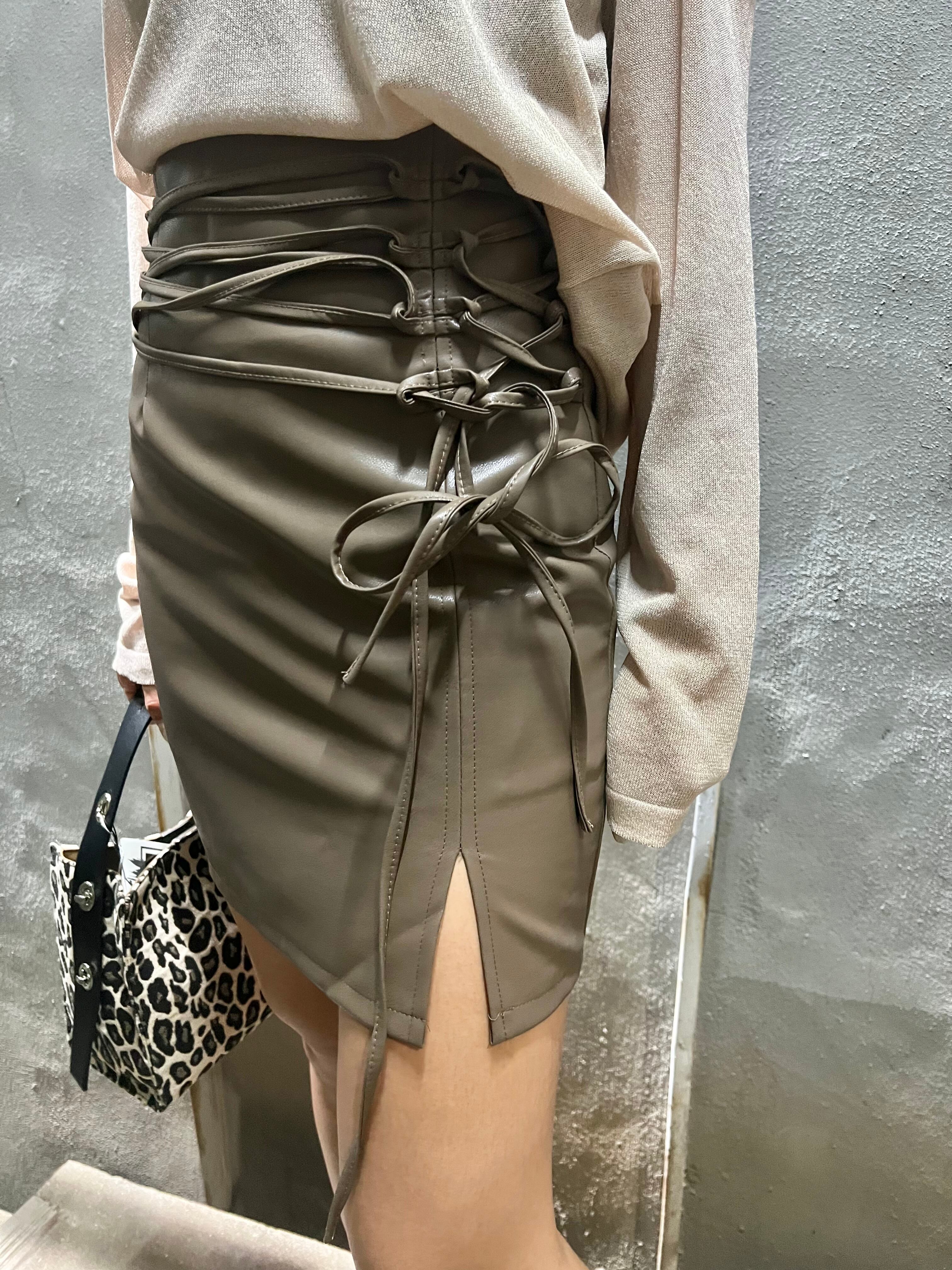 eco leather loosing waist design skirt スカート ミニスカート 合皮 レザー エコレザー タイト ミニ