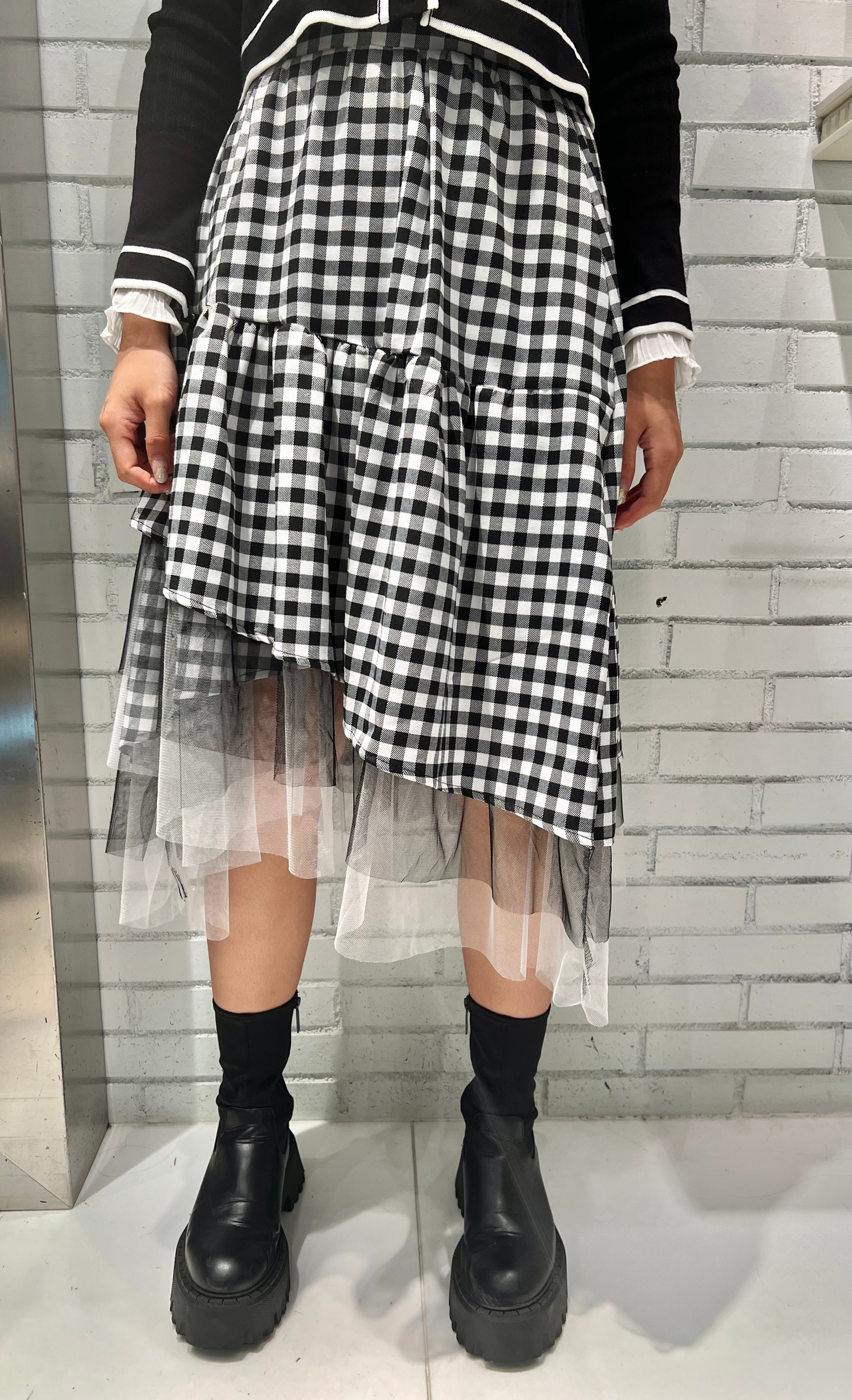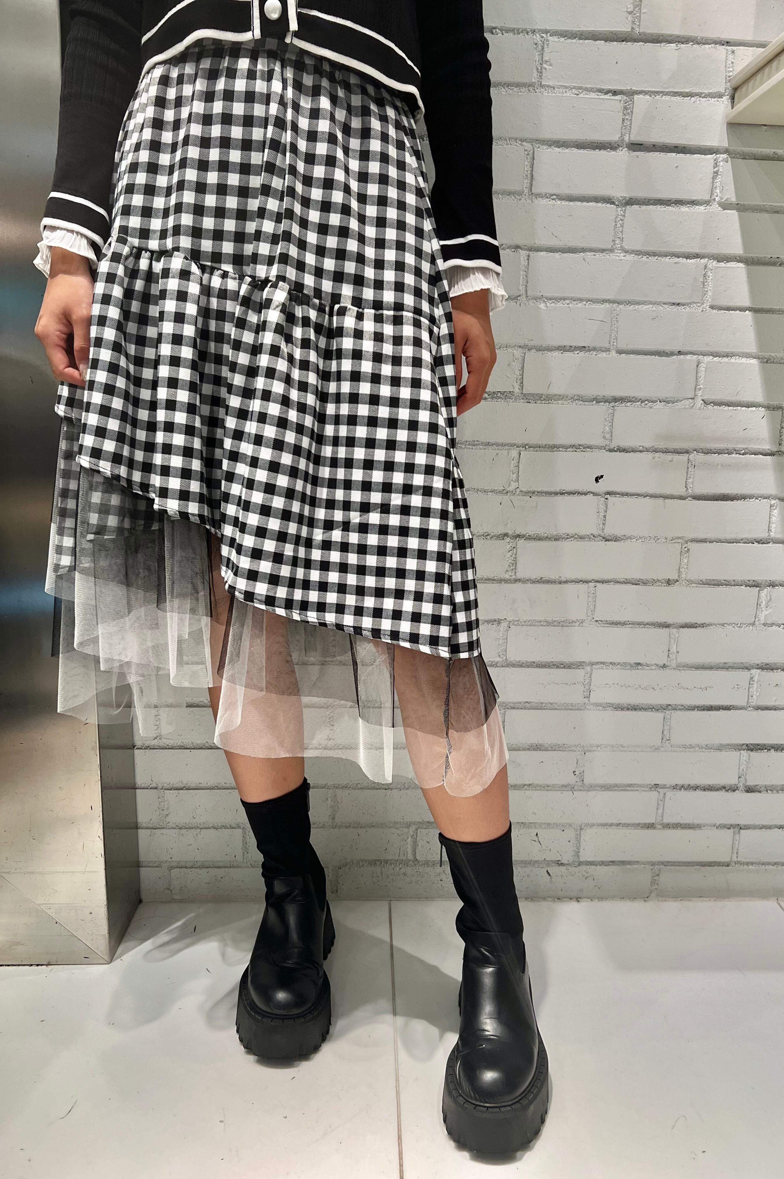 check pattern tulle layered skirt スカート チェック チュール ギンガムチェック 白黒 バイカラー