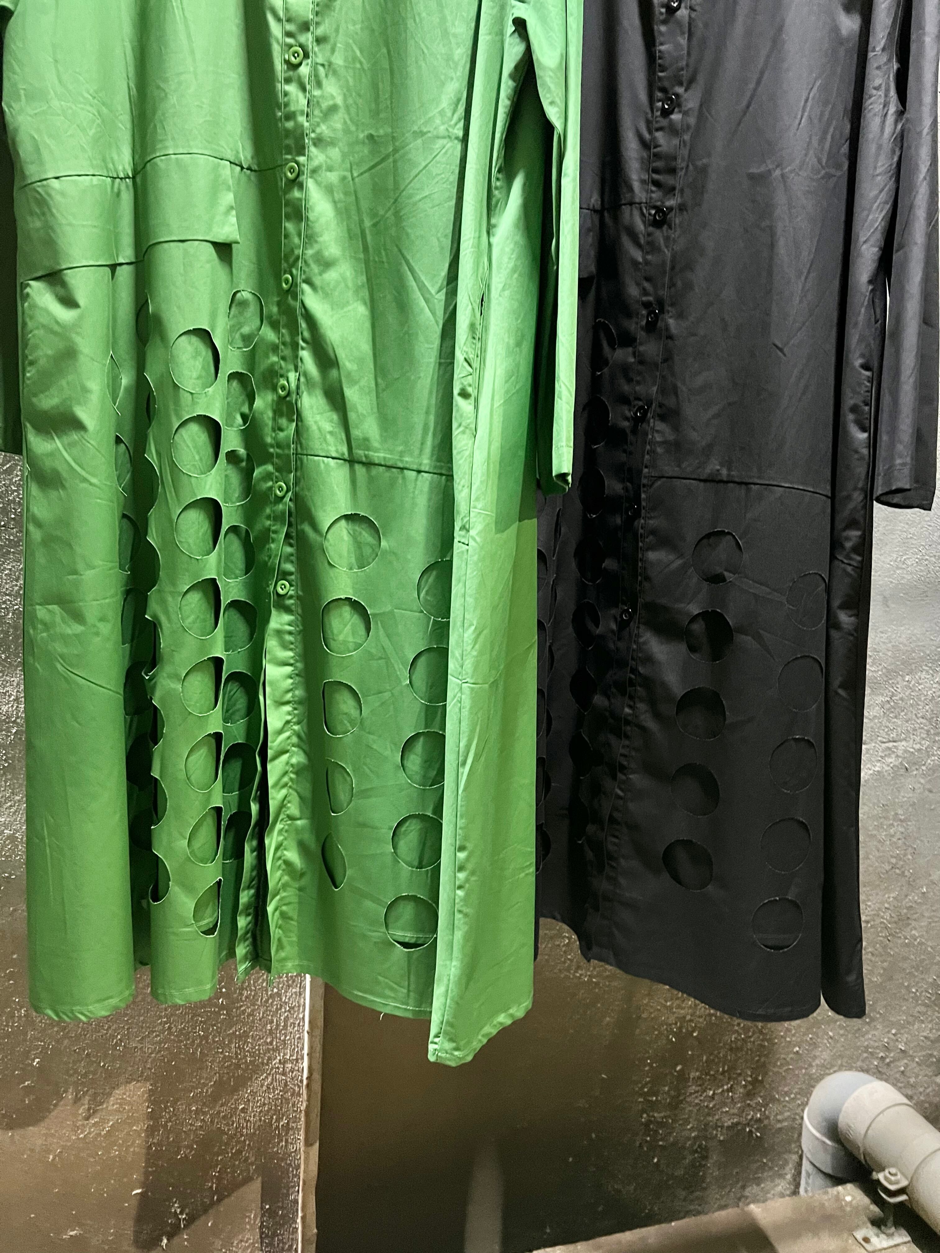 punching open long shirt one-piece ワンピース ワンピ シャツワンピ パンチング デザインワンピ