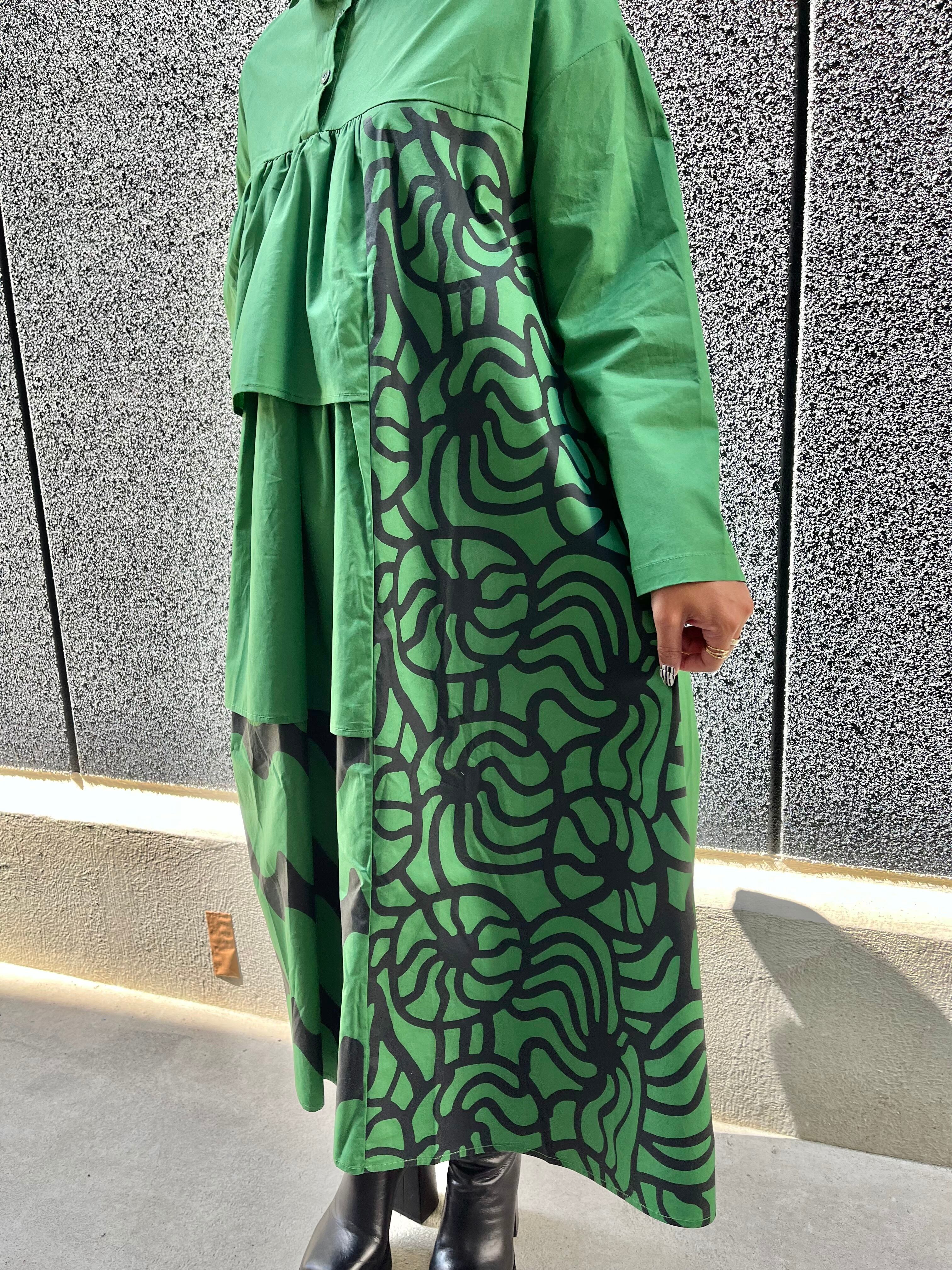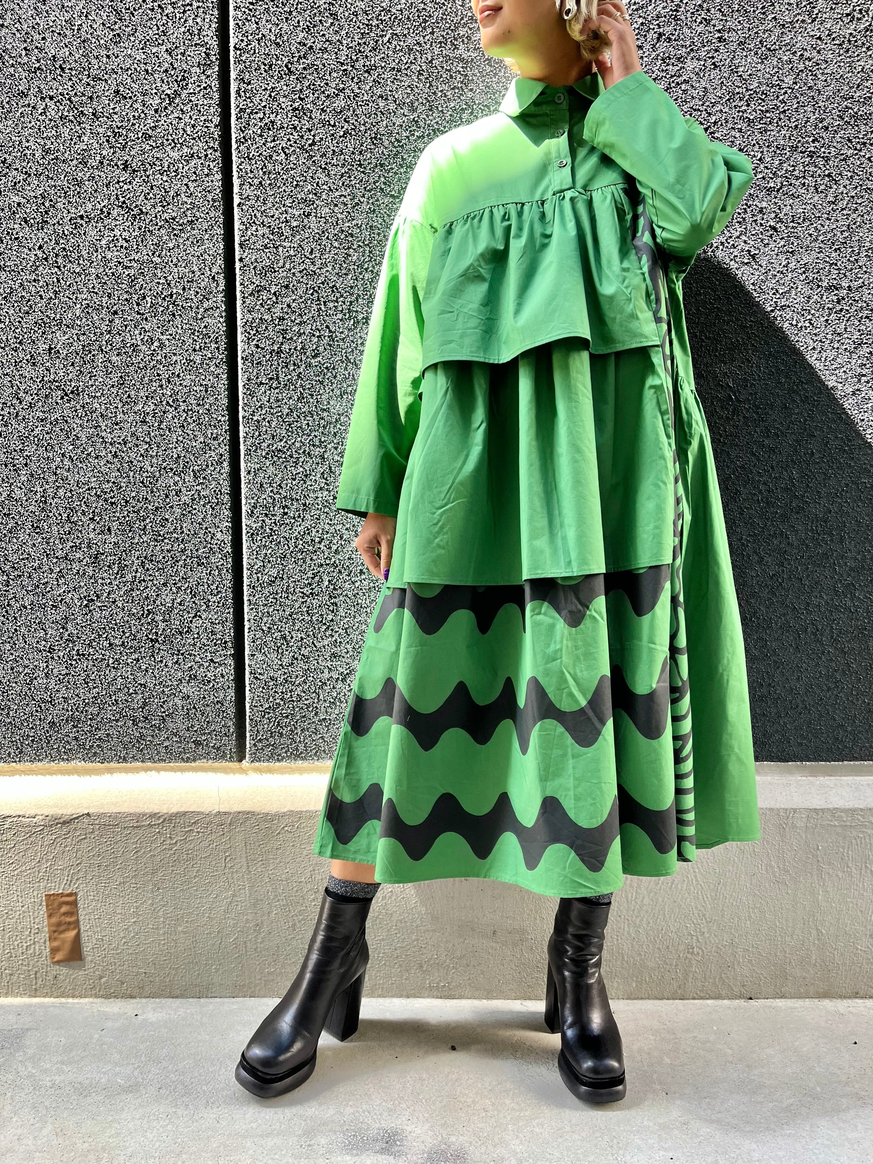 bi-color print frill change design shirt one-piece ワンピース ワンピ シャツワンピ バイカラー 柄ワンピ フリル