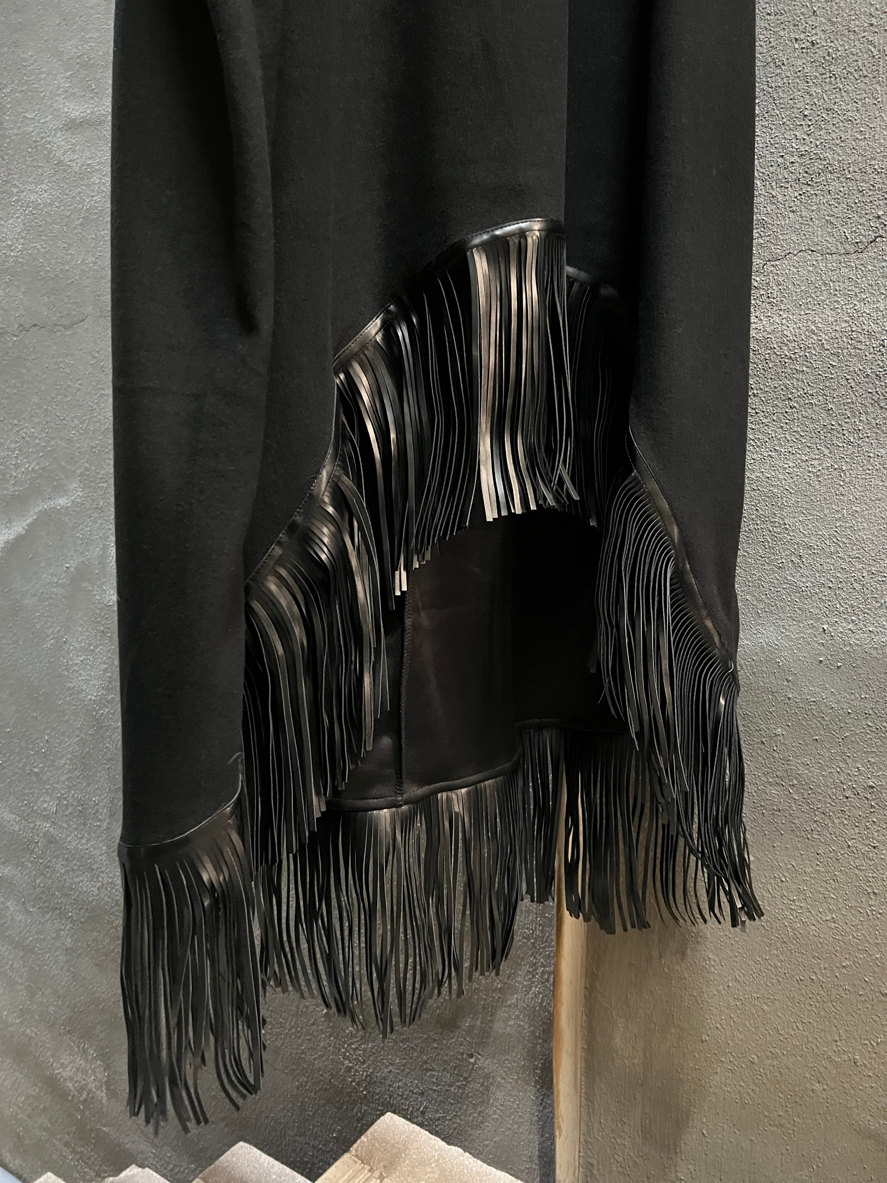 裾がPUレザーのフリンジ、ハイ&ローデザインが斬新♡