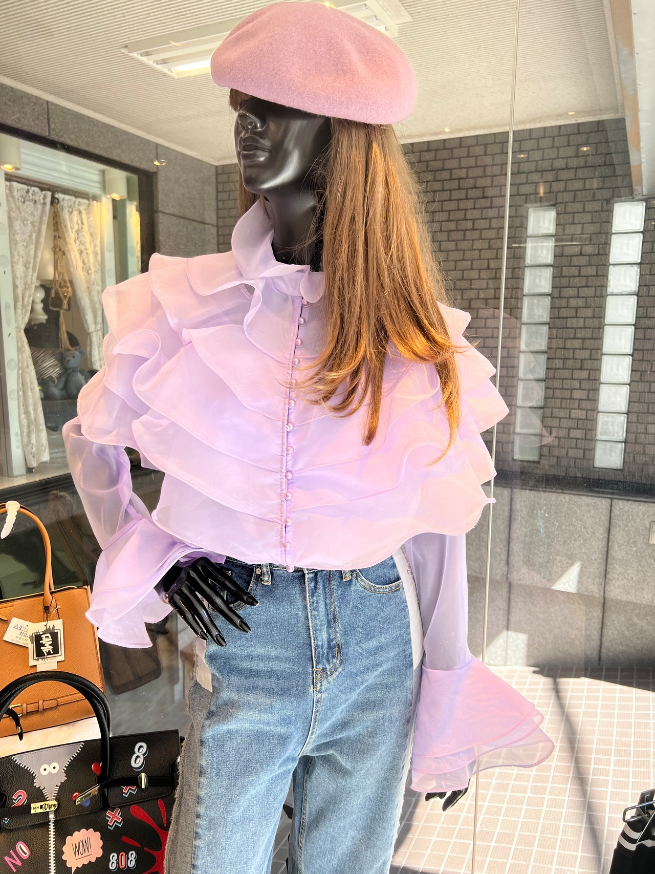 organdy tiered frill shirt blouse シャツ ブラウス オーガンジー ボリュームフリル 可愛い