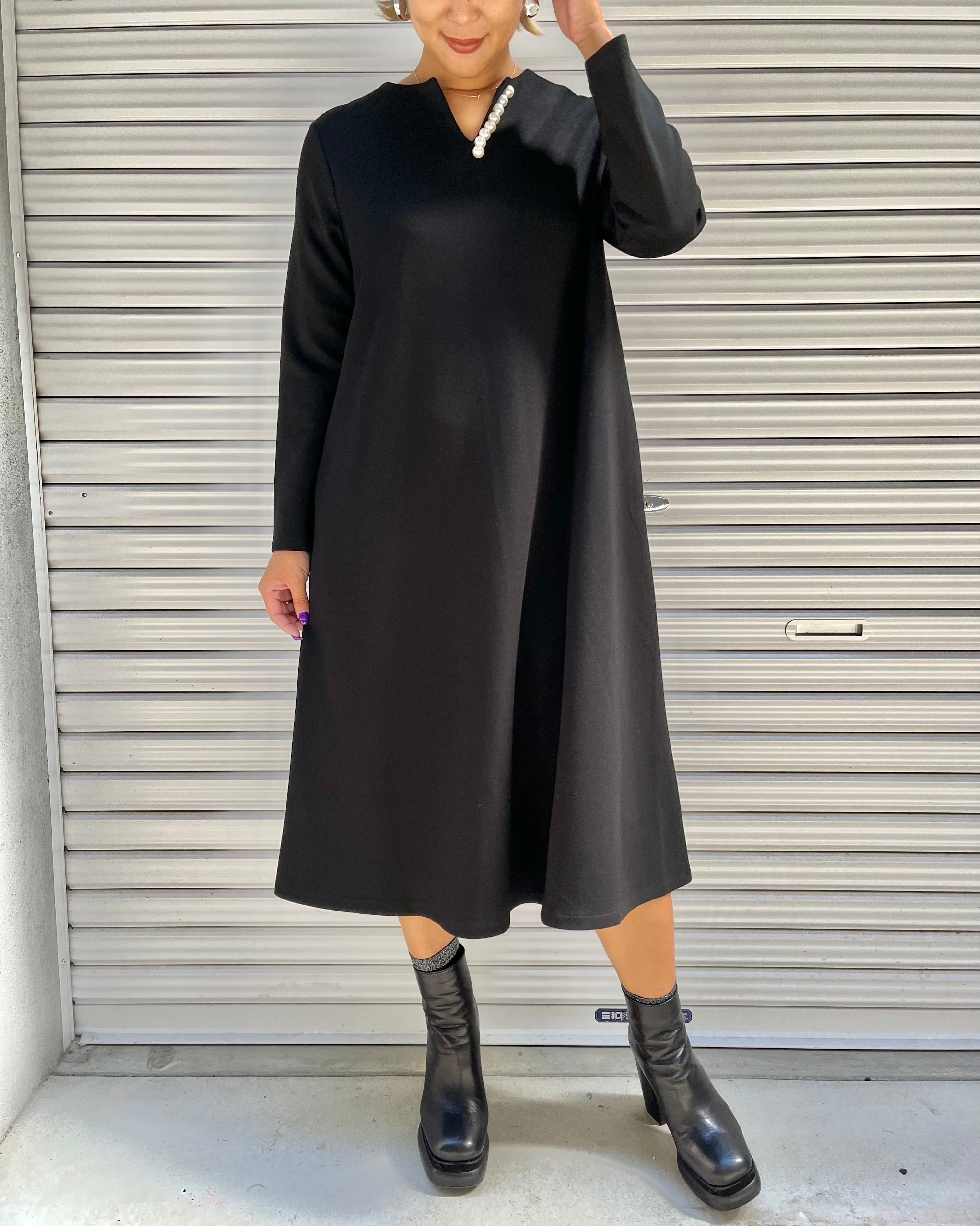 pearl neck A-line one-piece ワンピース ワンピ パール シンプル きれいめ