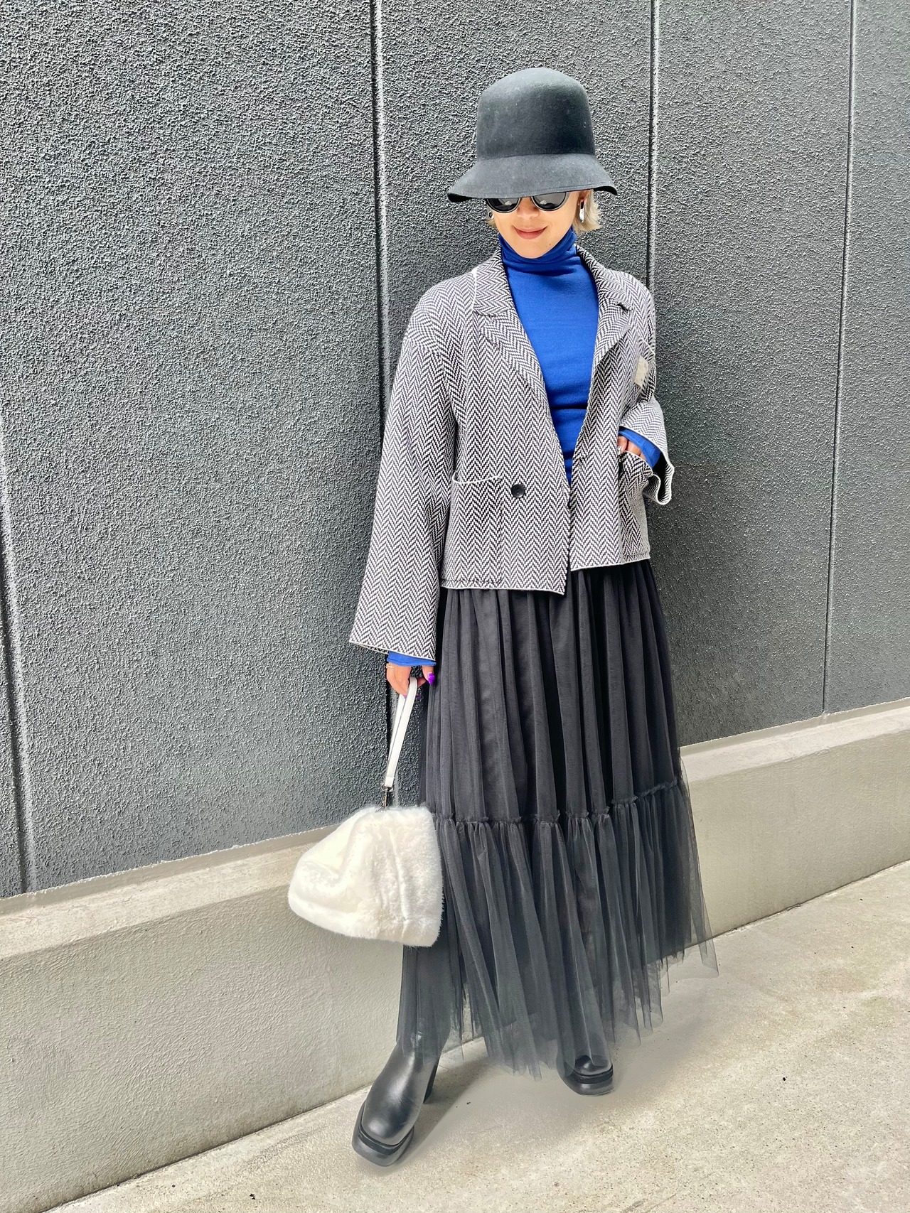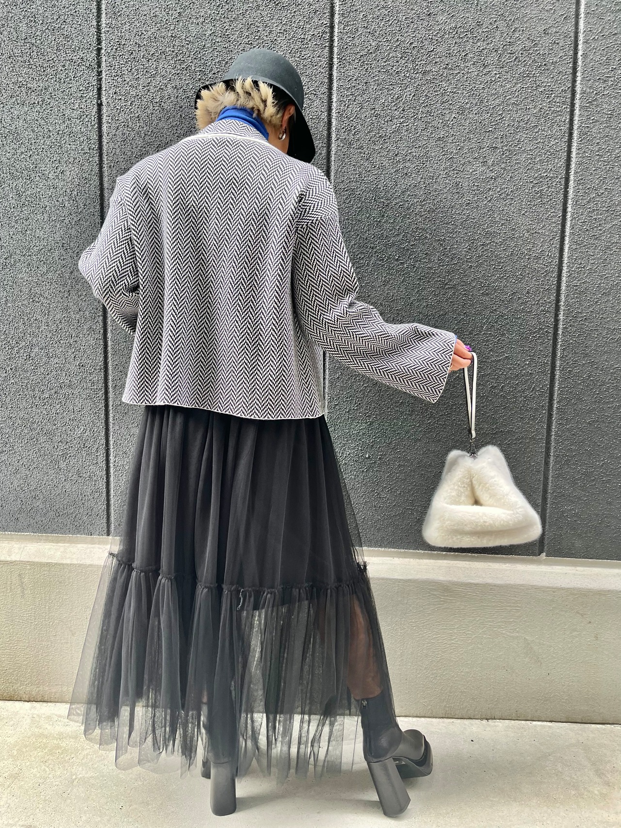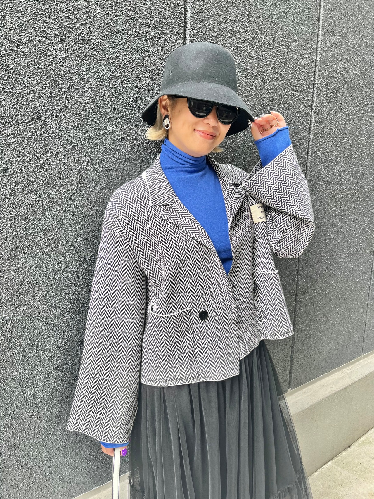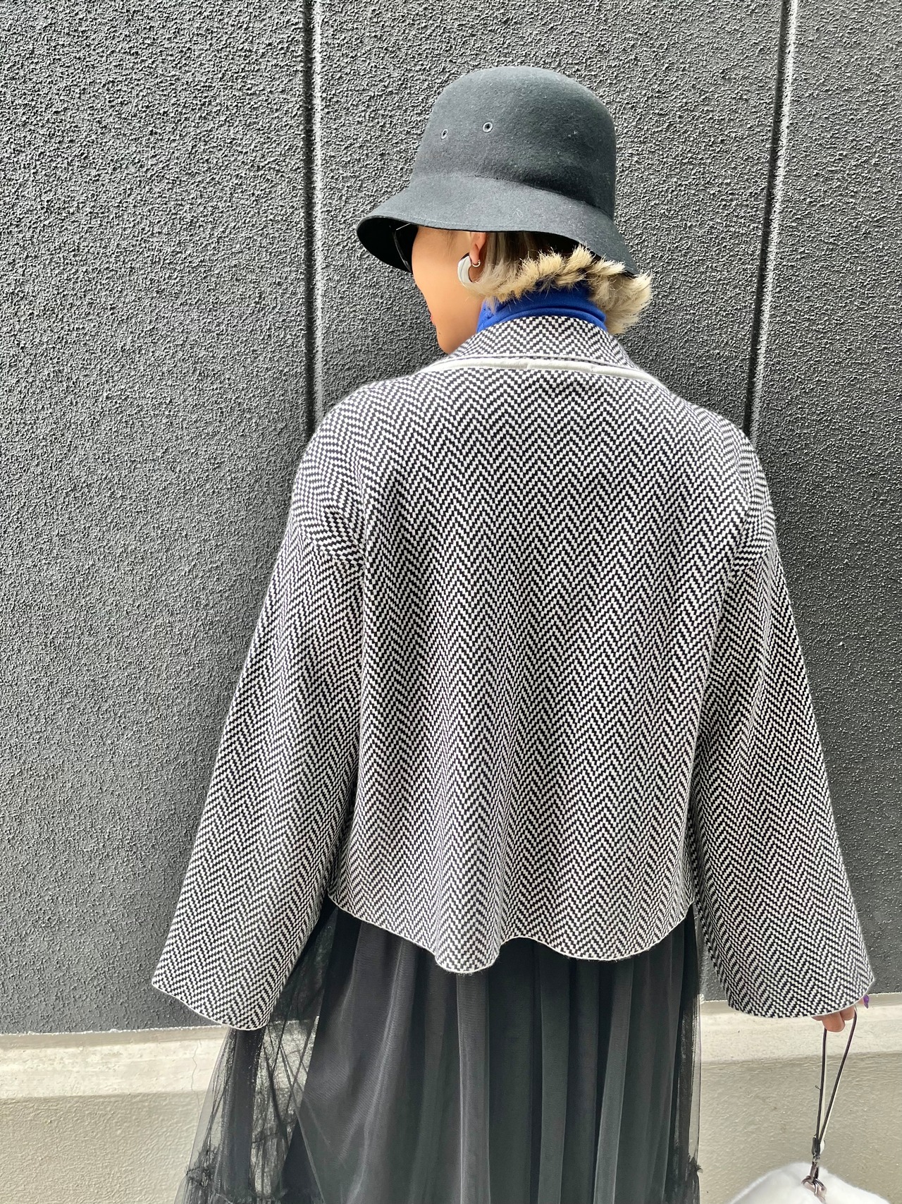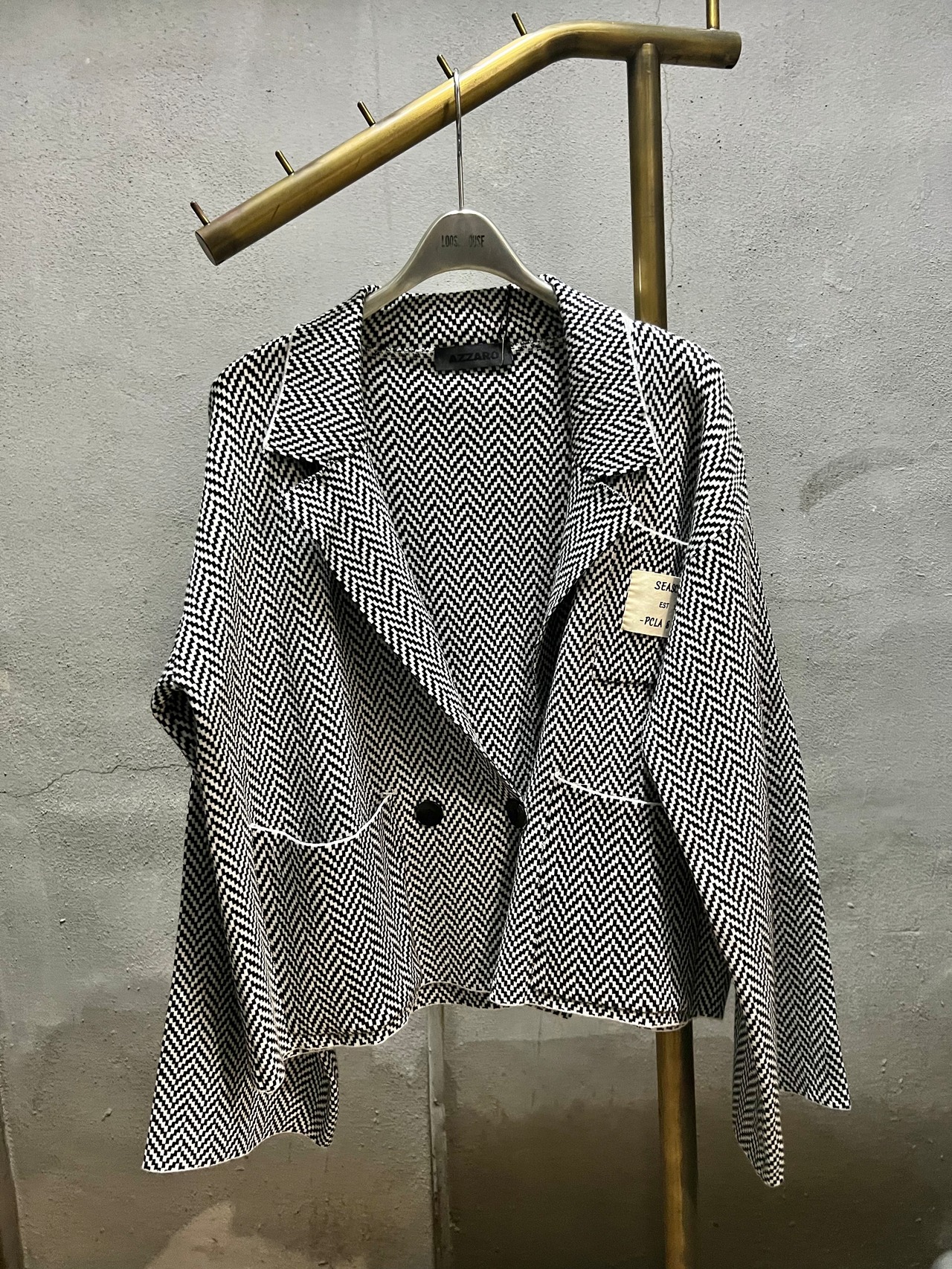 ヘリンボーン柄のオシャレなニット・ジャケット
