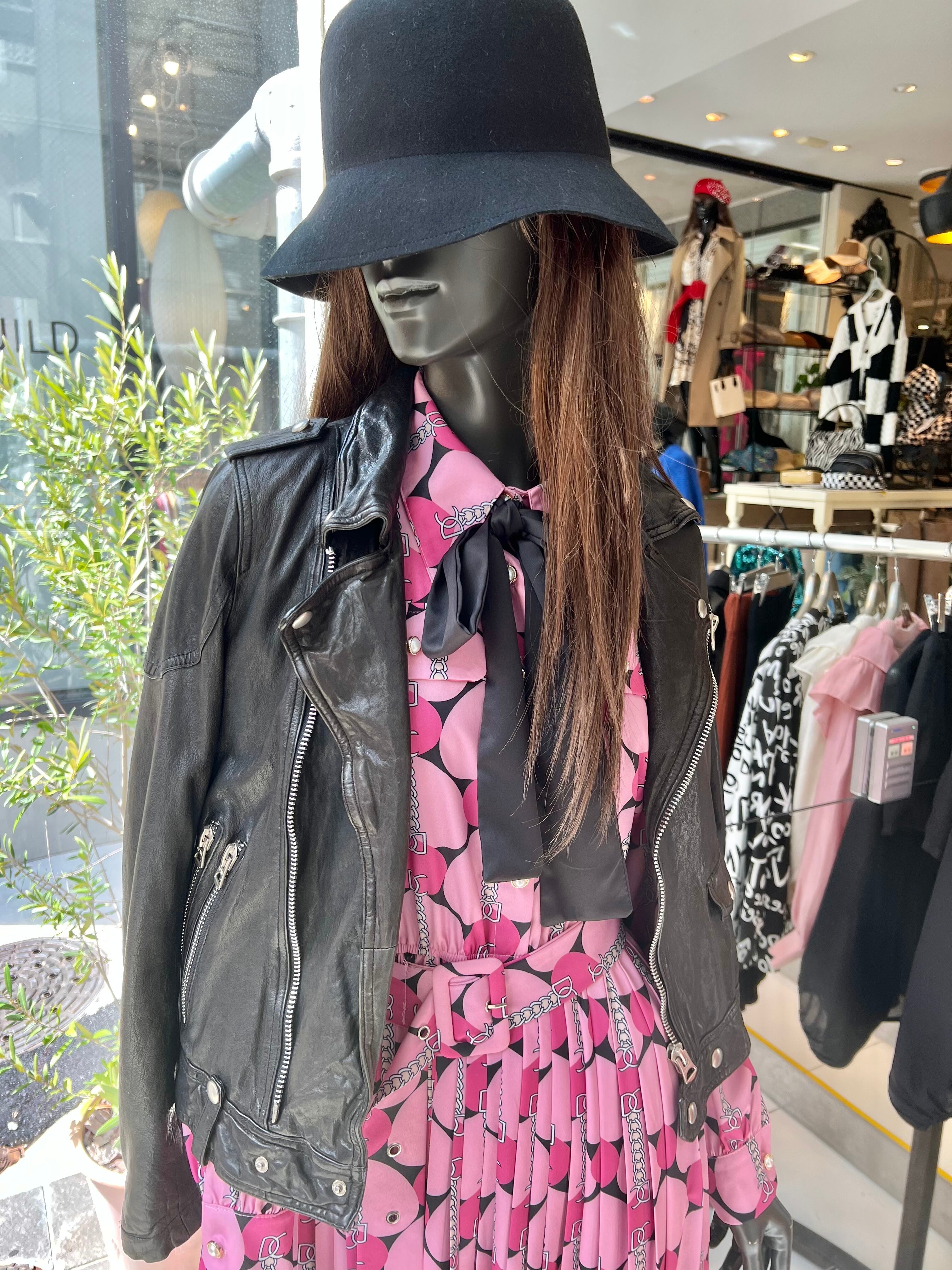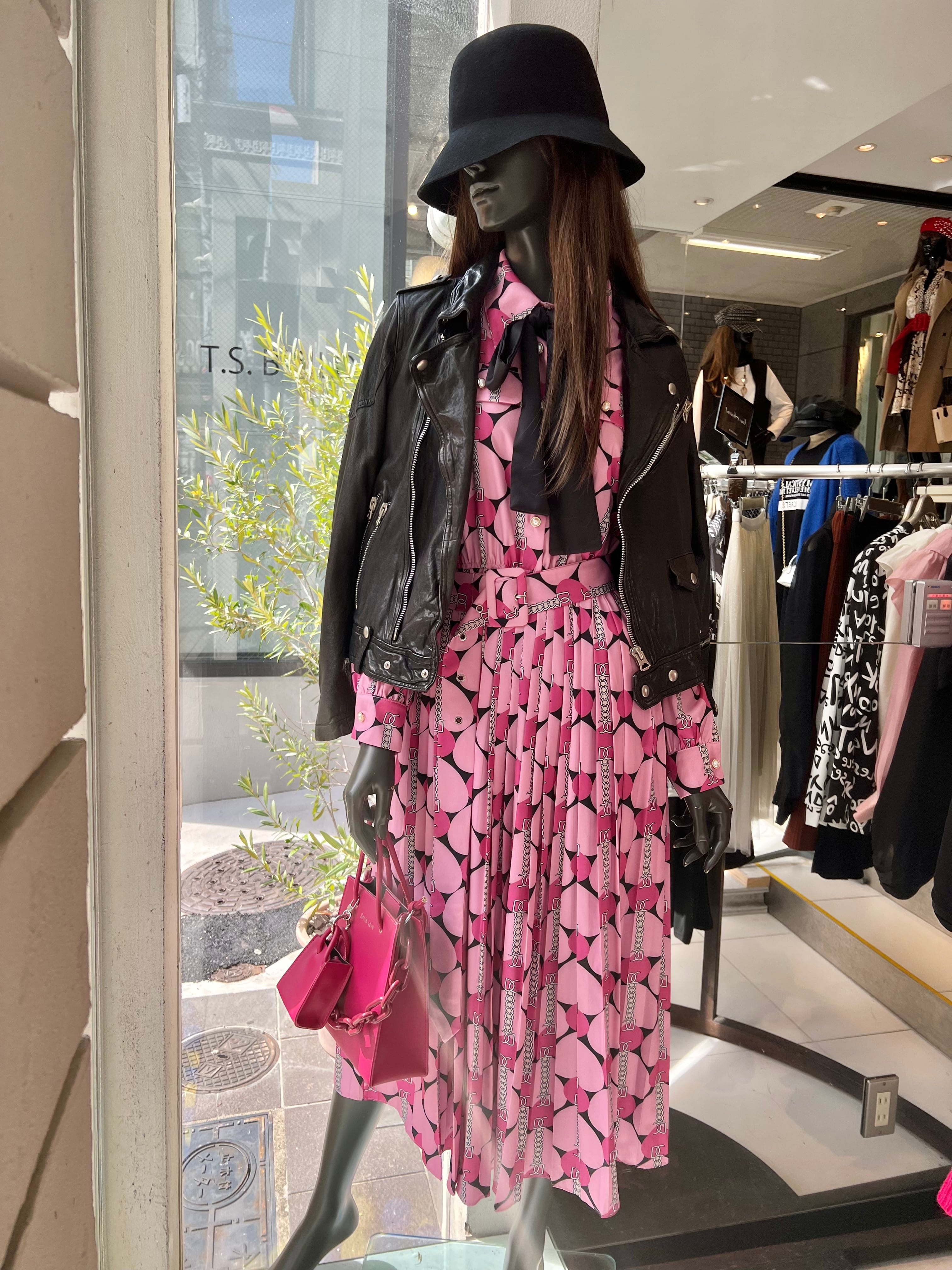 heart chain print black ribbon one-piece ワンピース ワンピ ハート チェーン 柄ワンピ ピンク リボン ベルト付き