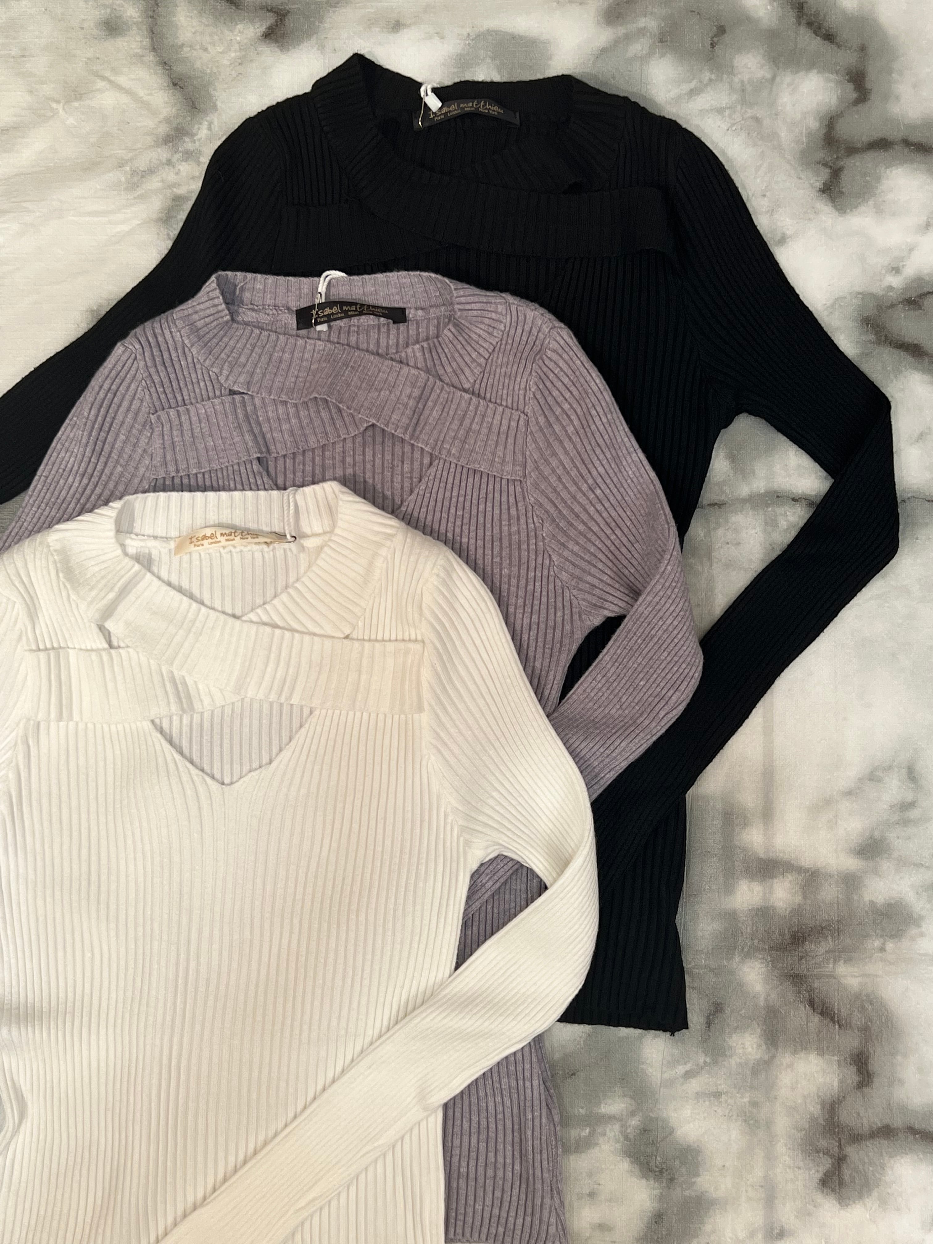 cross neck rib knit tops トップス ニット リブニット テレコ デザインネック 柔らかい 着心地 肌触り
