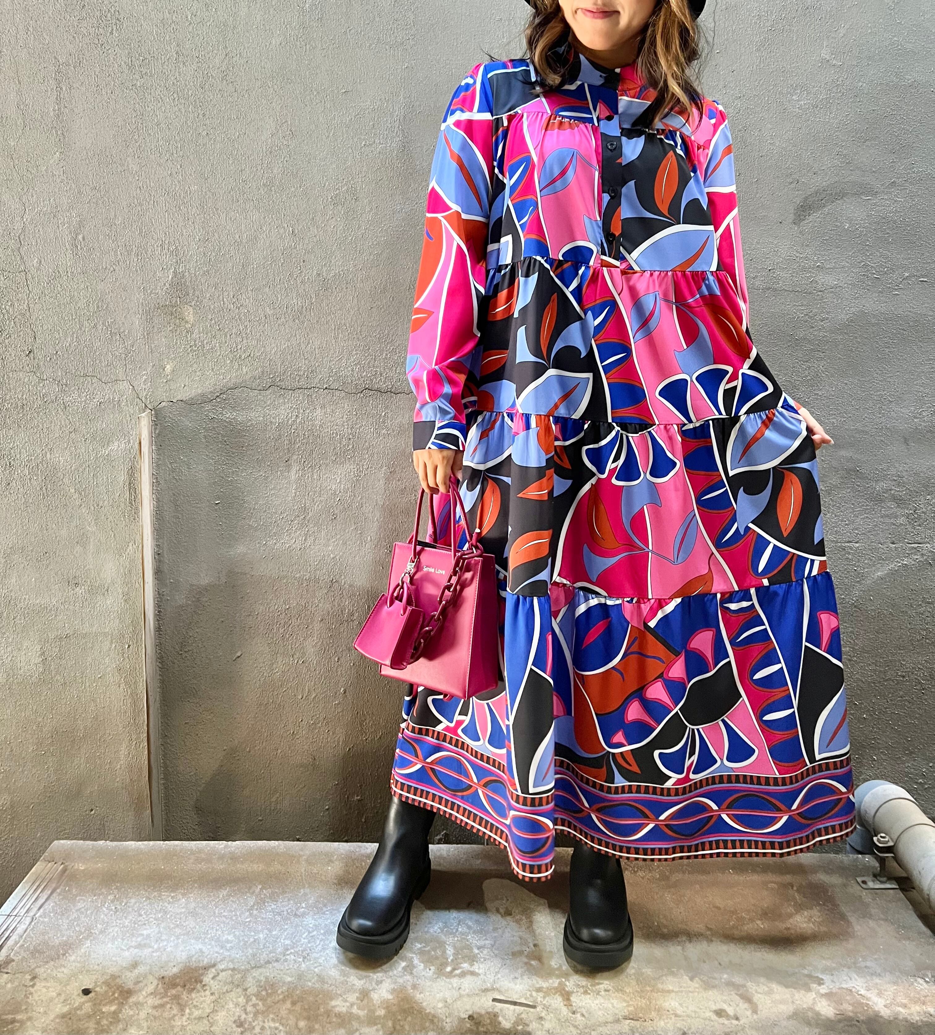 colorful print tiered gather long one-piece ワンピース ワンピ ティアード ギャザー ロングワンピ カラフル プッチ風