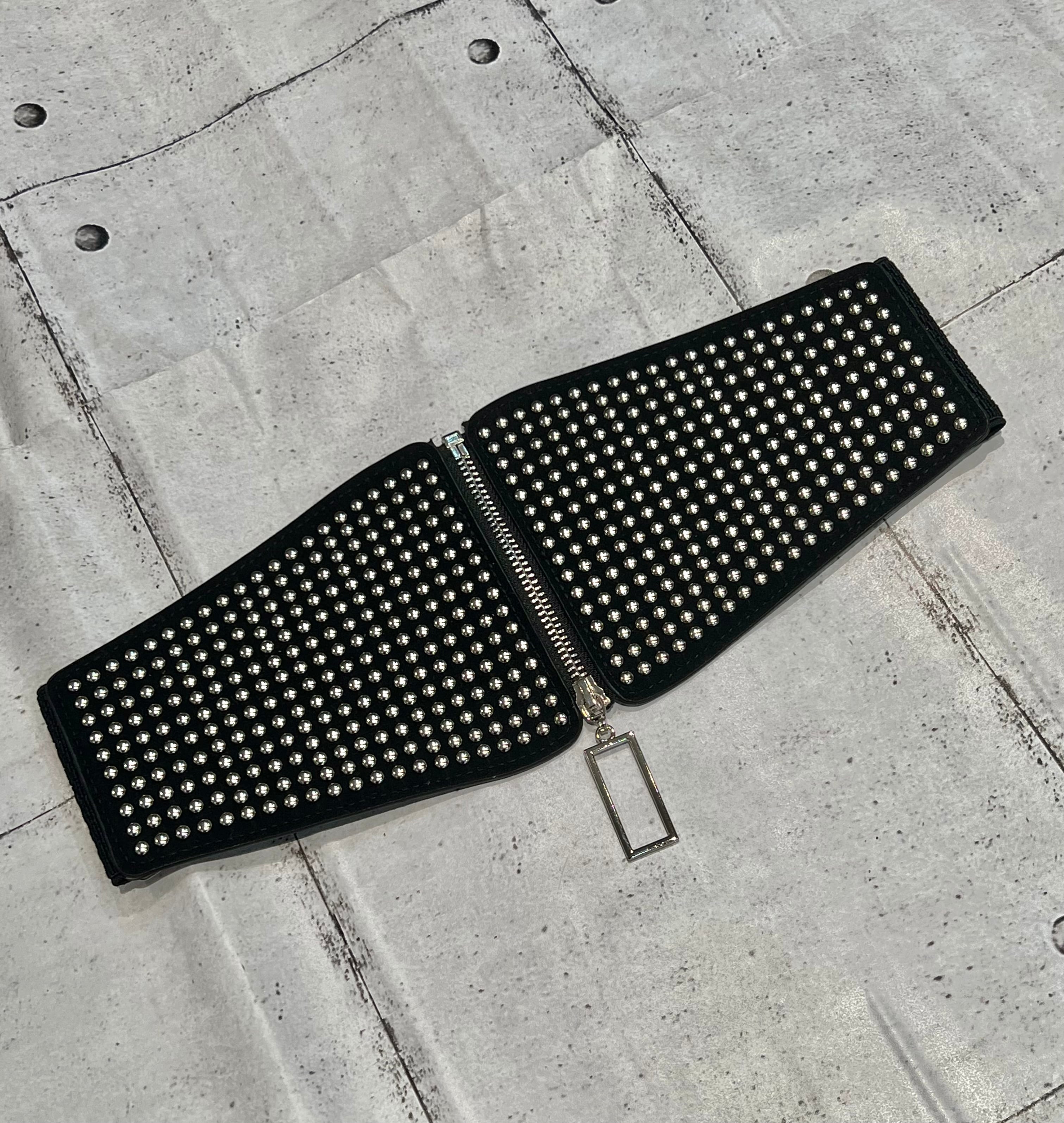 silver studs wide zip belt ベルト 太ベルト ウエストマーク ゴムベルト シルバー スタッズ