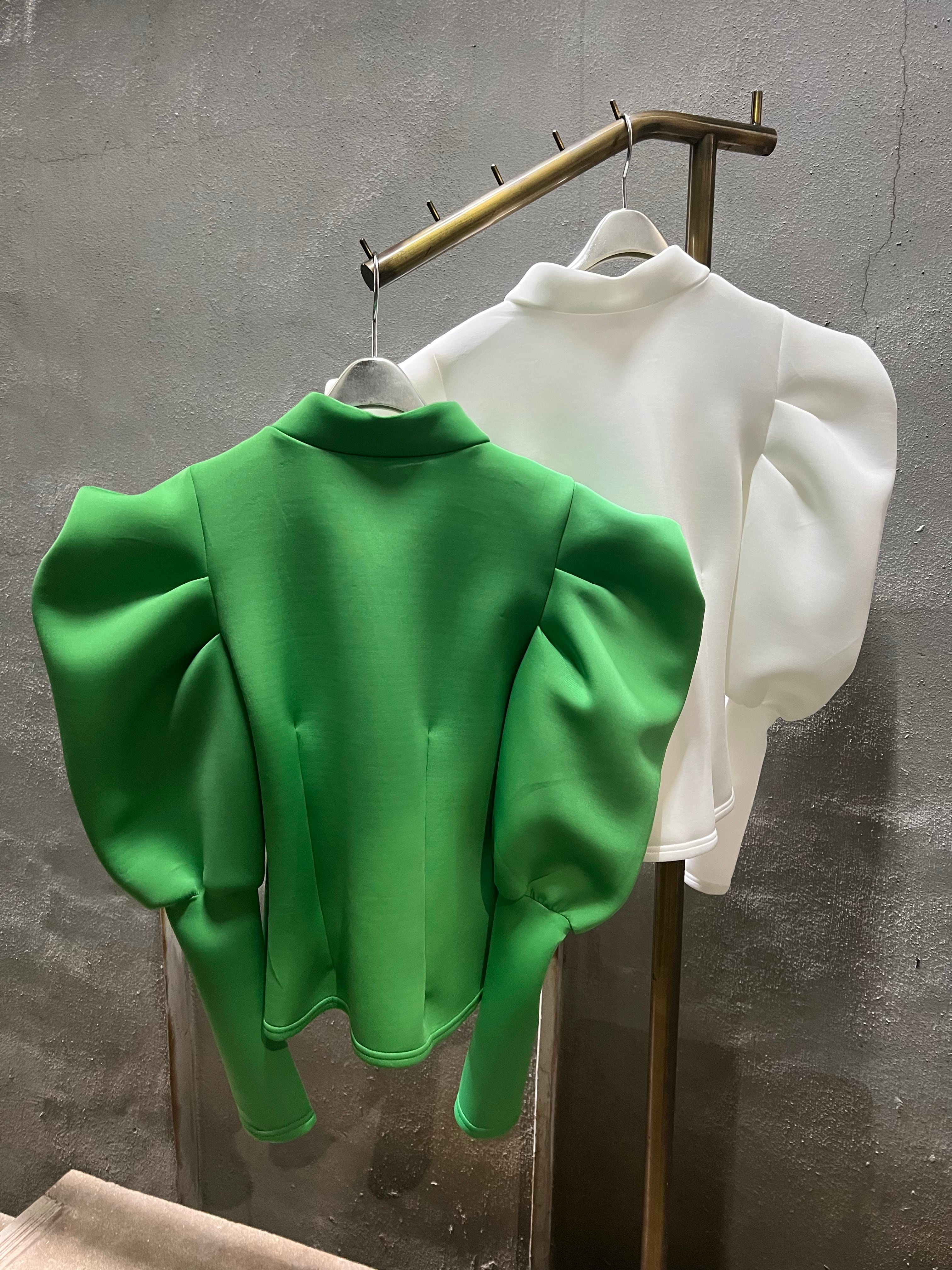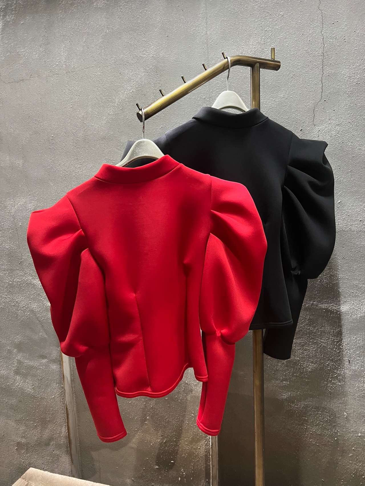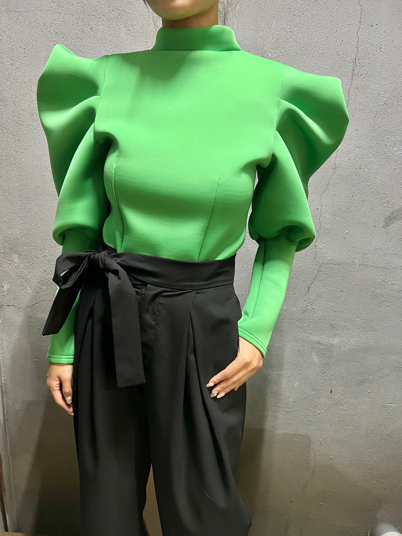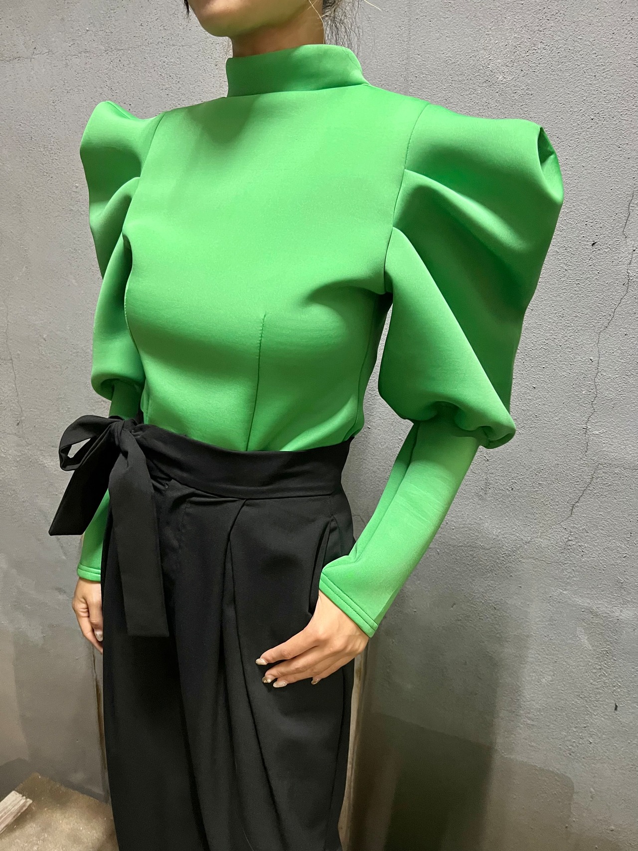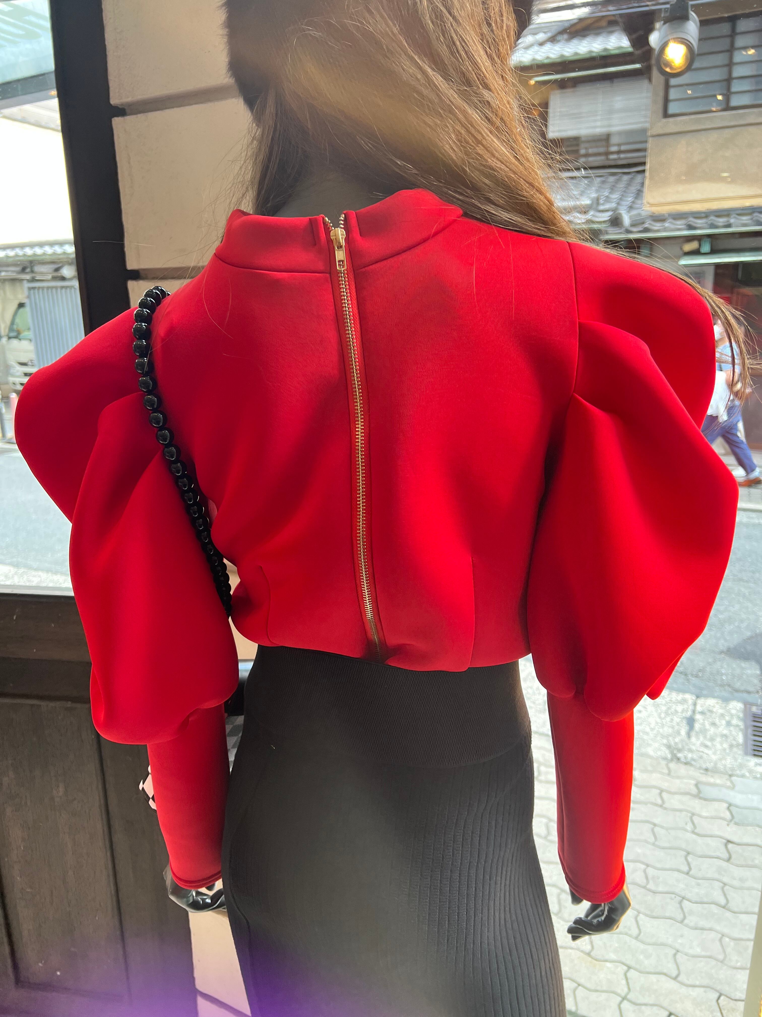 design sleeve zip back tops トップス ダンボールニット デザインスリーブ ハイネック ウレタン ジッパー