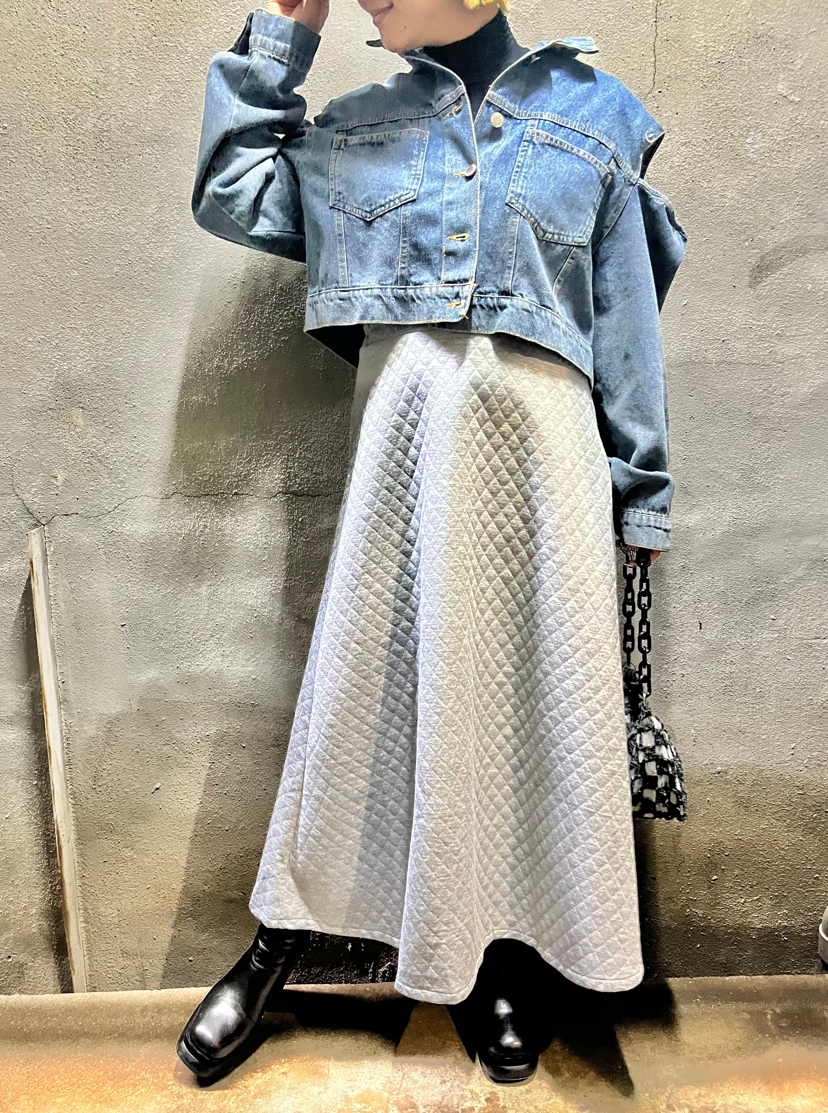 quilting stitch flare skirt スカート フレアースカート キルティング ゴムウエスト きれいめ カジュアル