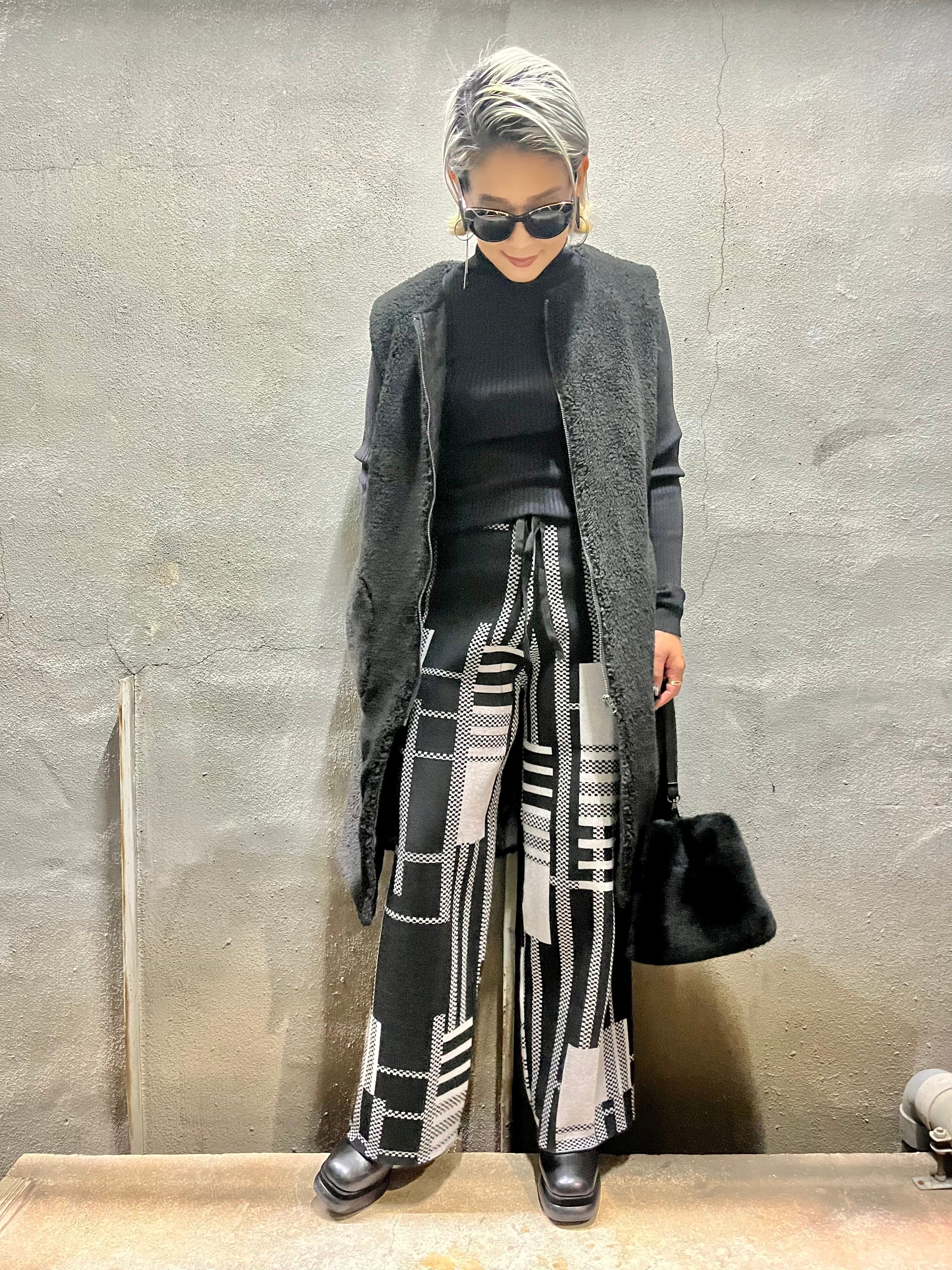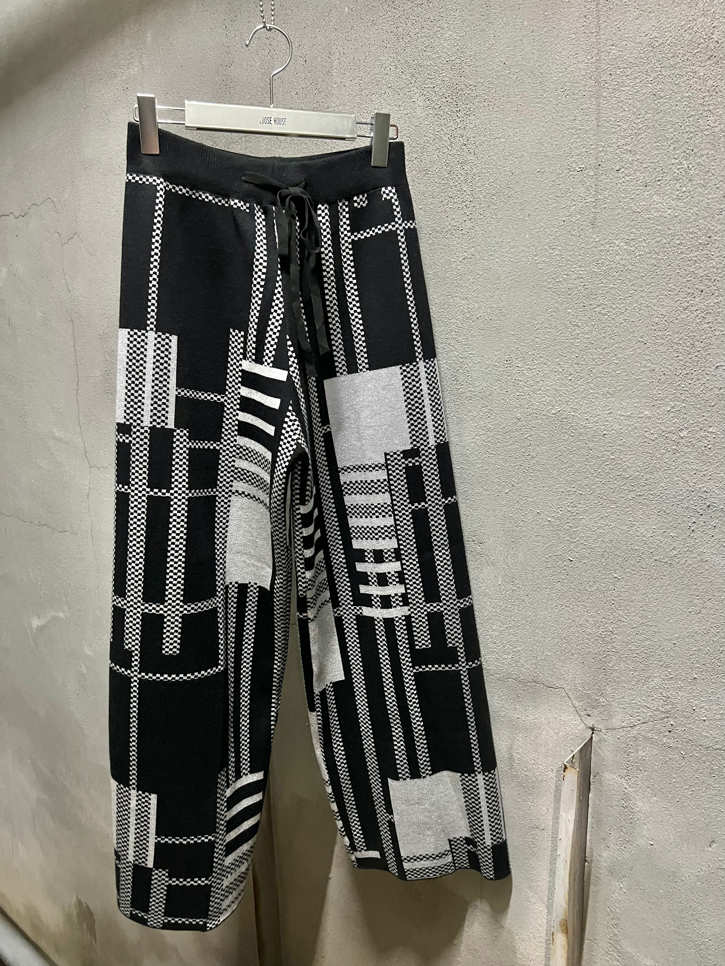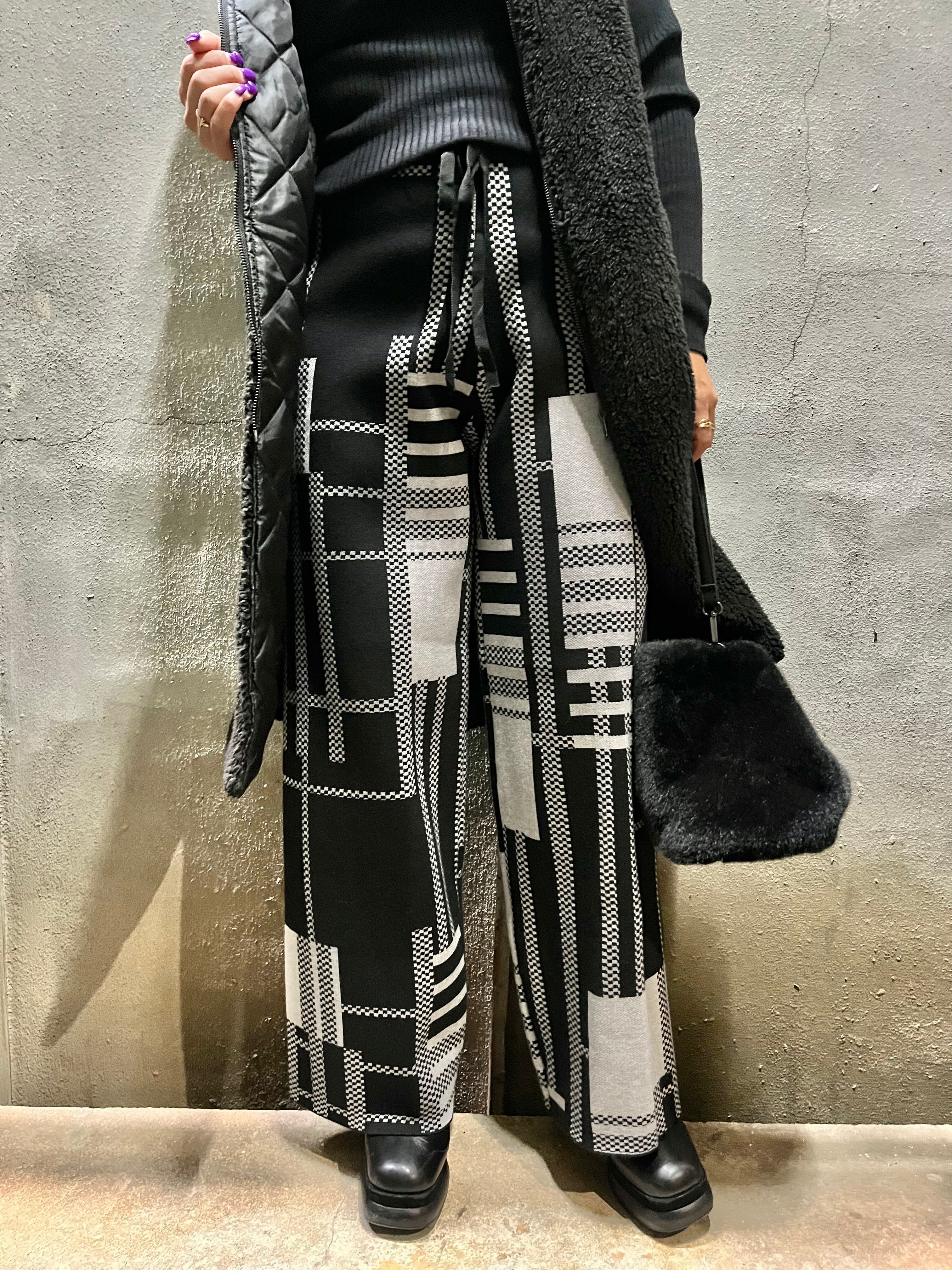 イレギュラーなチェック柄がオシャレなニット素材のワイドパンツ