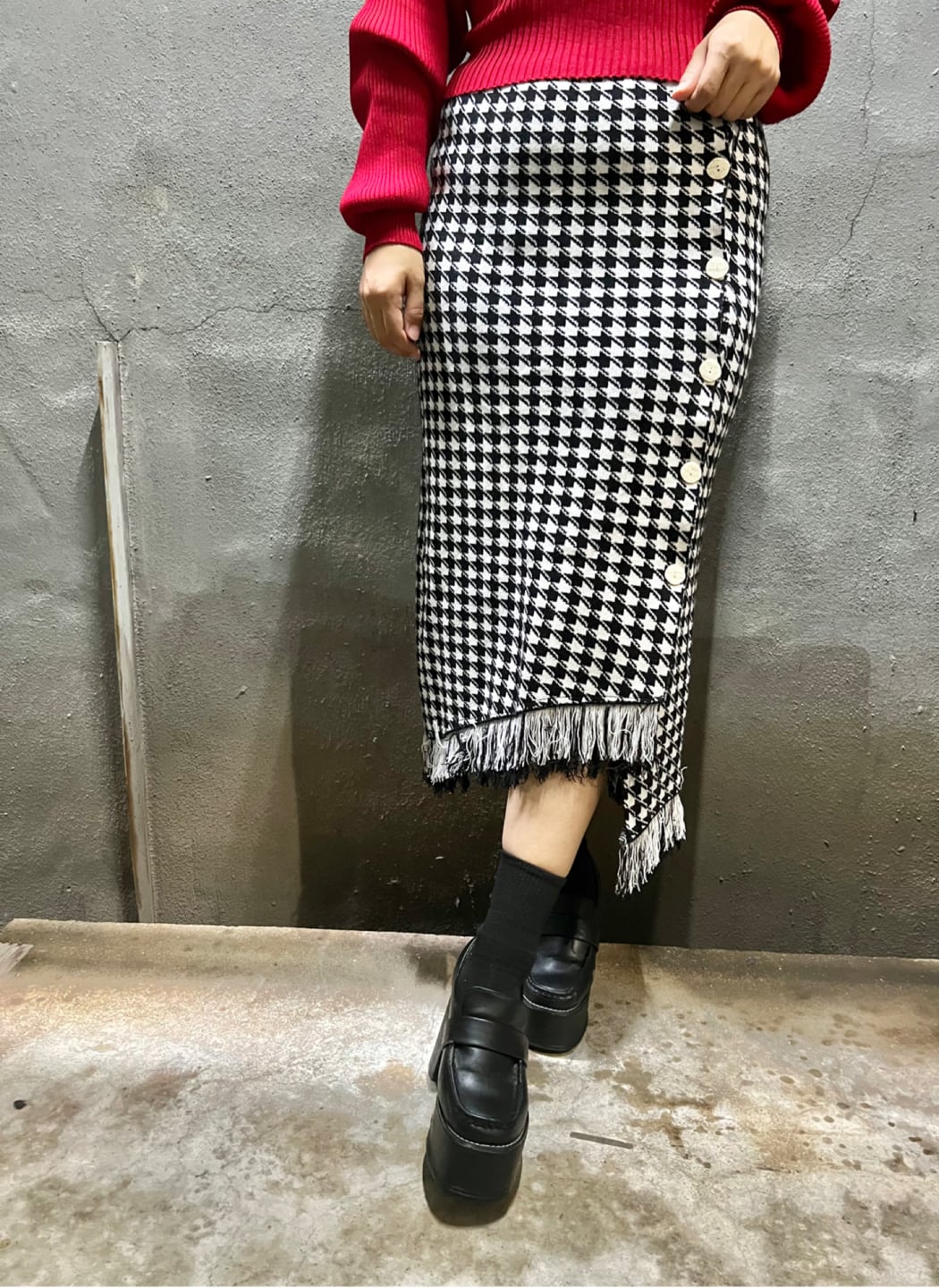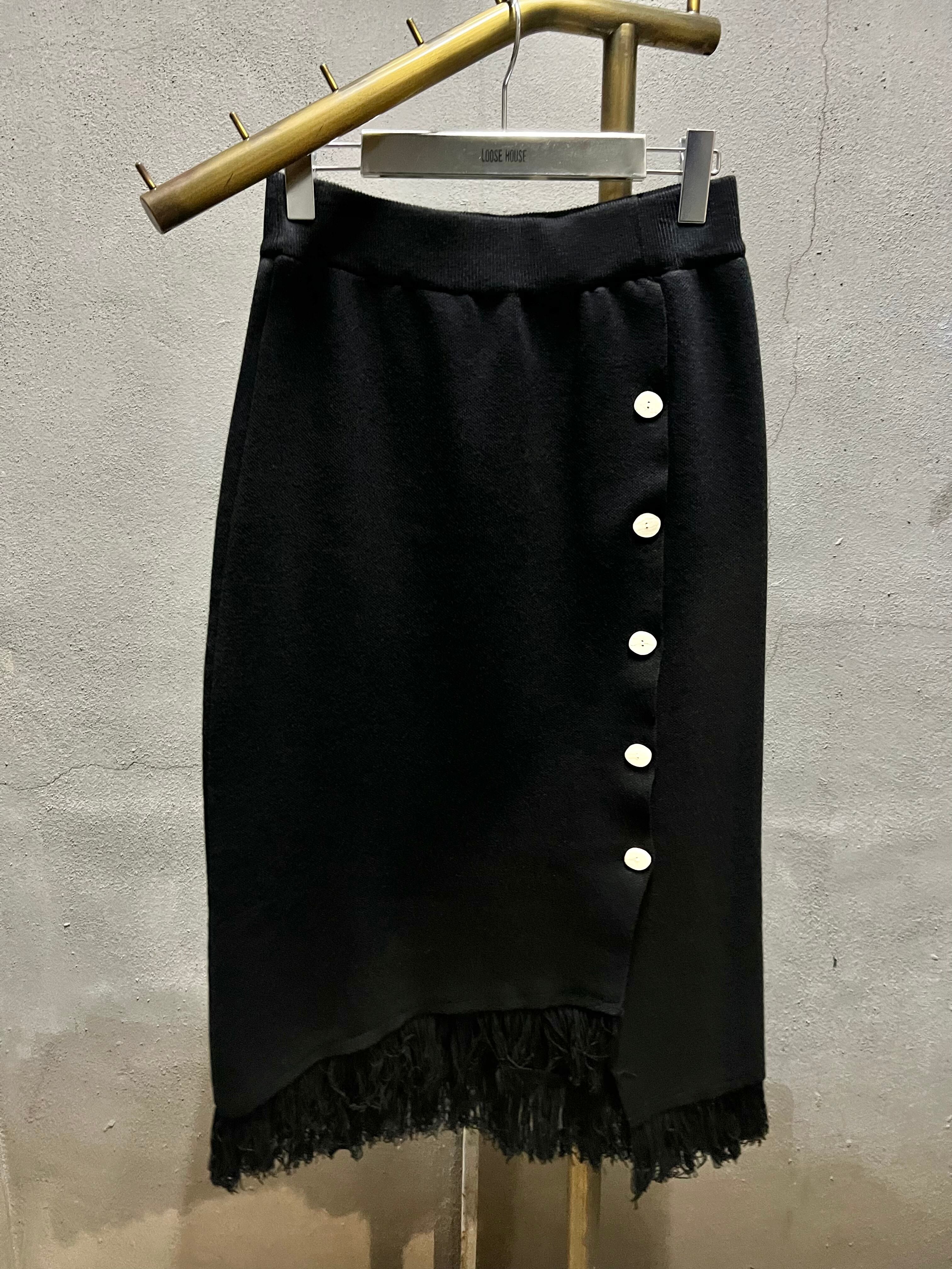 button fringe knit skirt ニット スカート ニットスカート ボタン フリンジ
