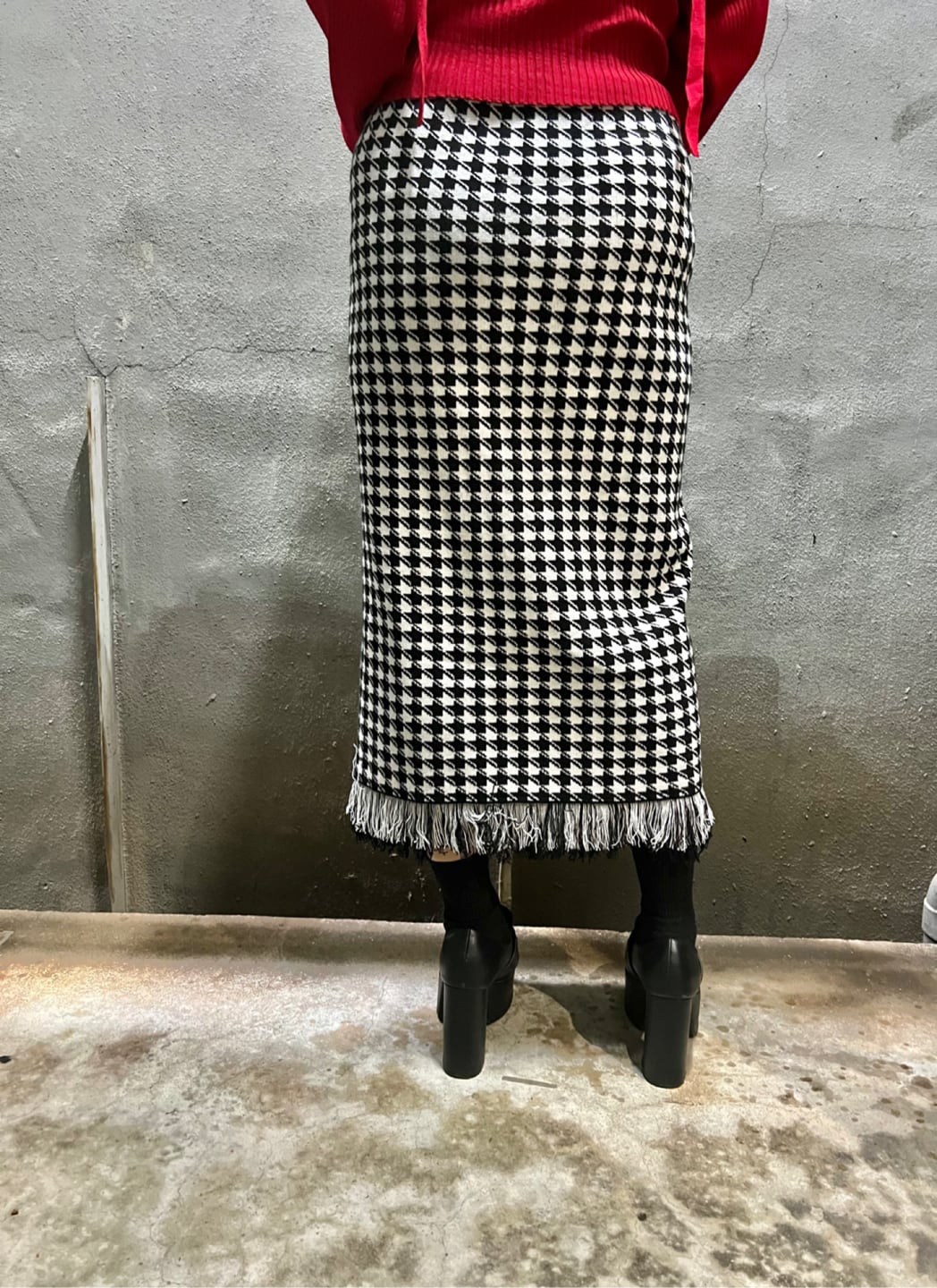 裾に付いたフリンジが可愛いニット・タイトスカート