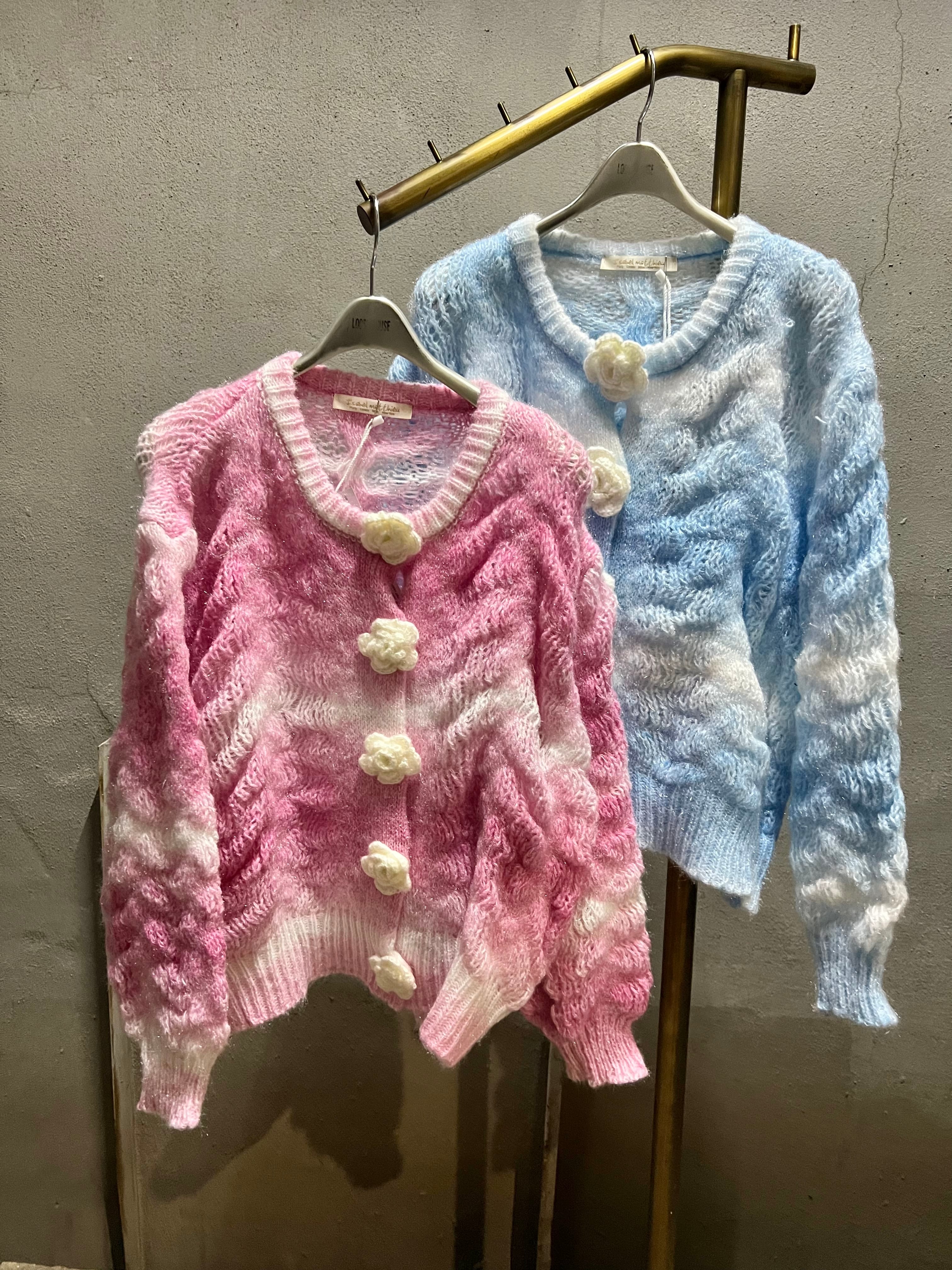 sweet gradation flower button knit cardigan ニット カーディガン ニットカーデ グラデーション ボタン フラワーモチーフ