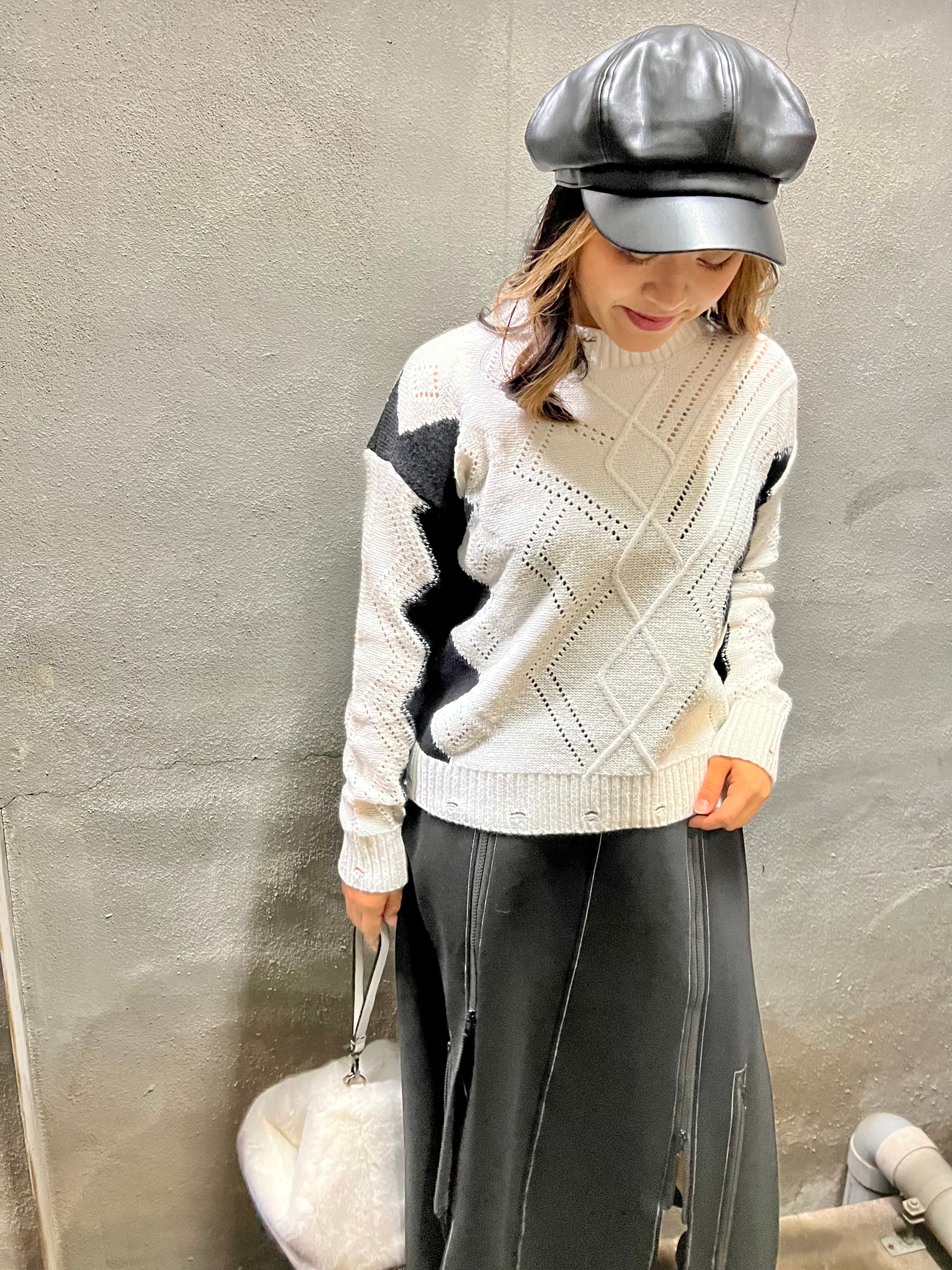 bi-color design knit tops ニット トップス ニットトップス バイカラー 白黒 透かし編み