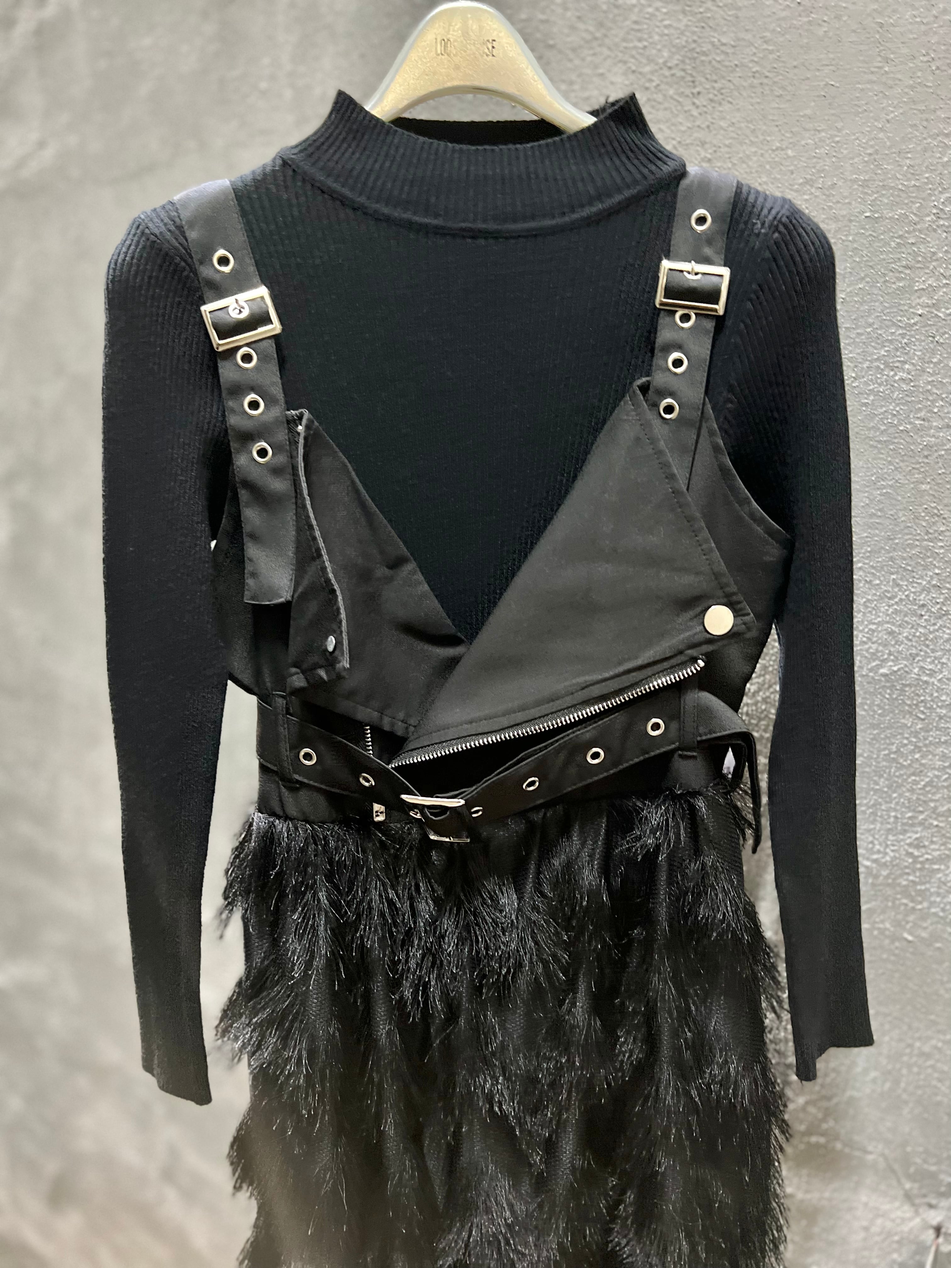 riders design frill fringe one-piece × tops 2P set セット ワンピース ライダース フリンジ トップス