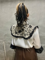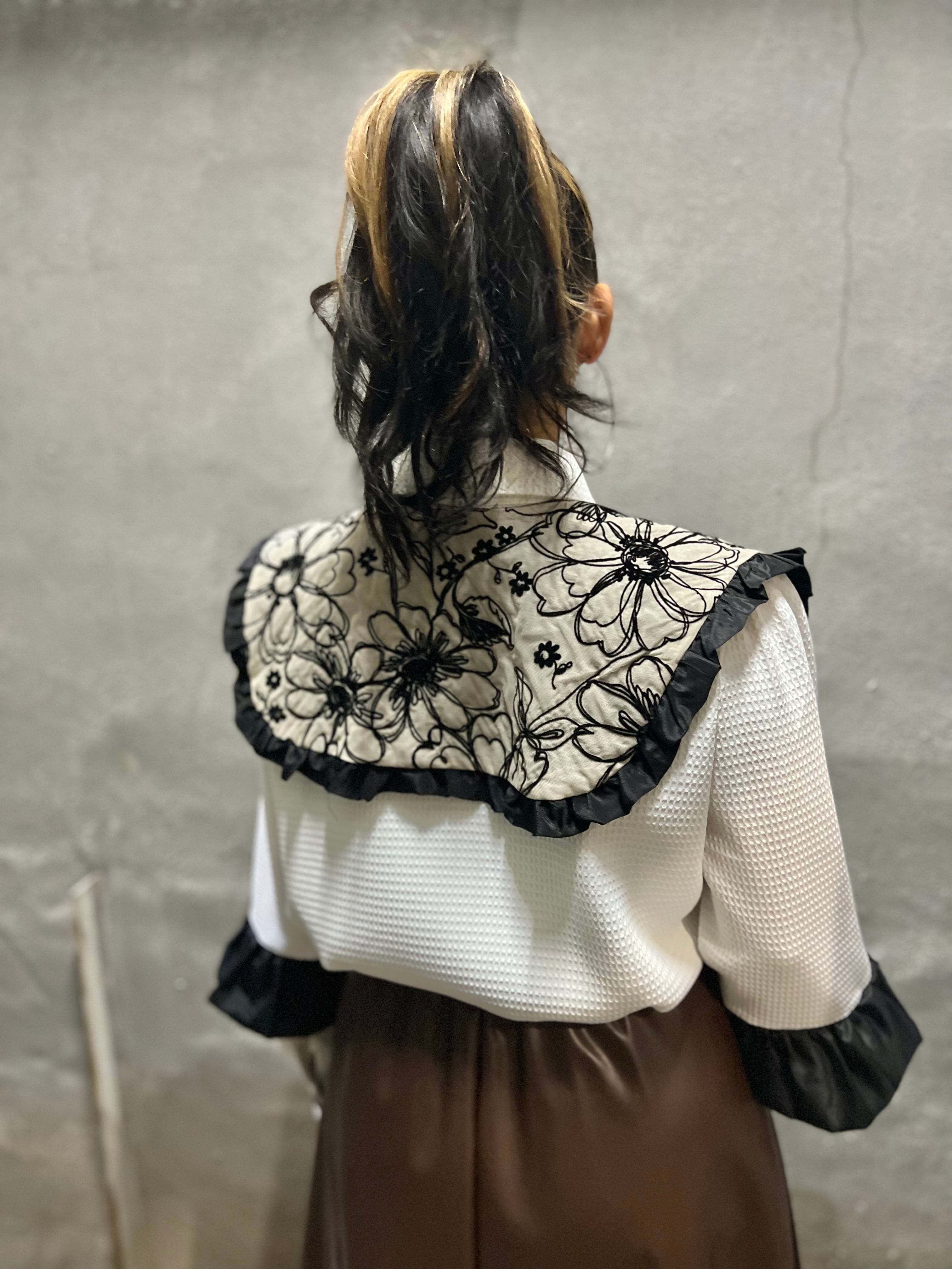 bi-color embroidery collar × frill trimming shirt set 2点セット シャツ フリル 付け襟 刺繍