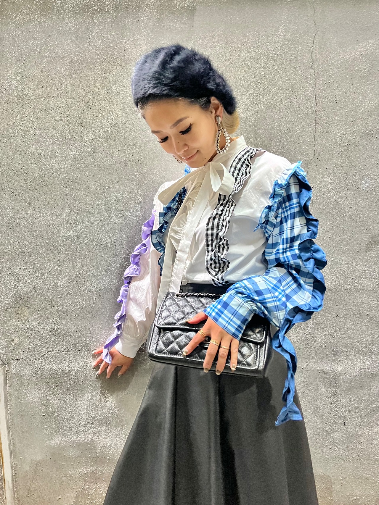 mulch pattern mini frill design shirt シャツ デザインシャツ チェック フリル リボン ボウタイ