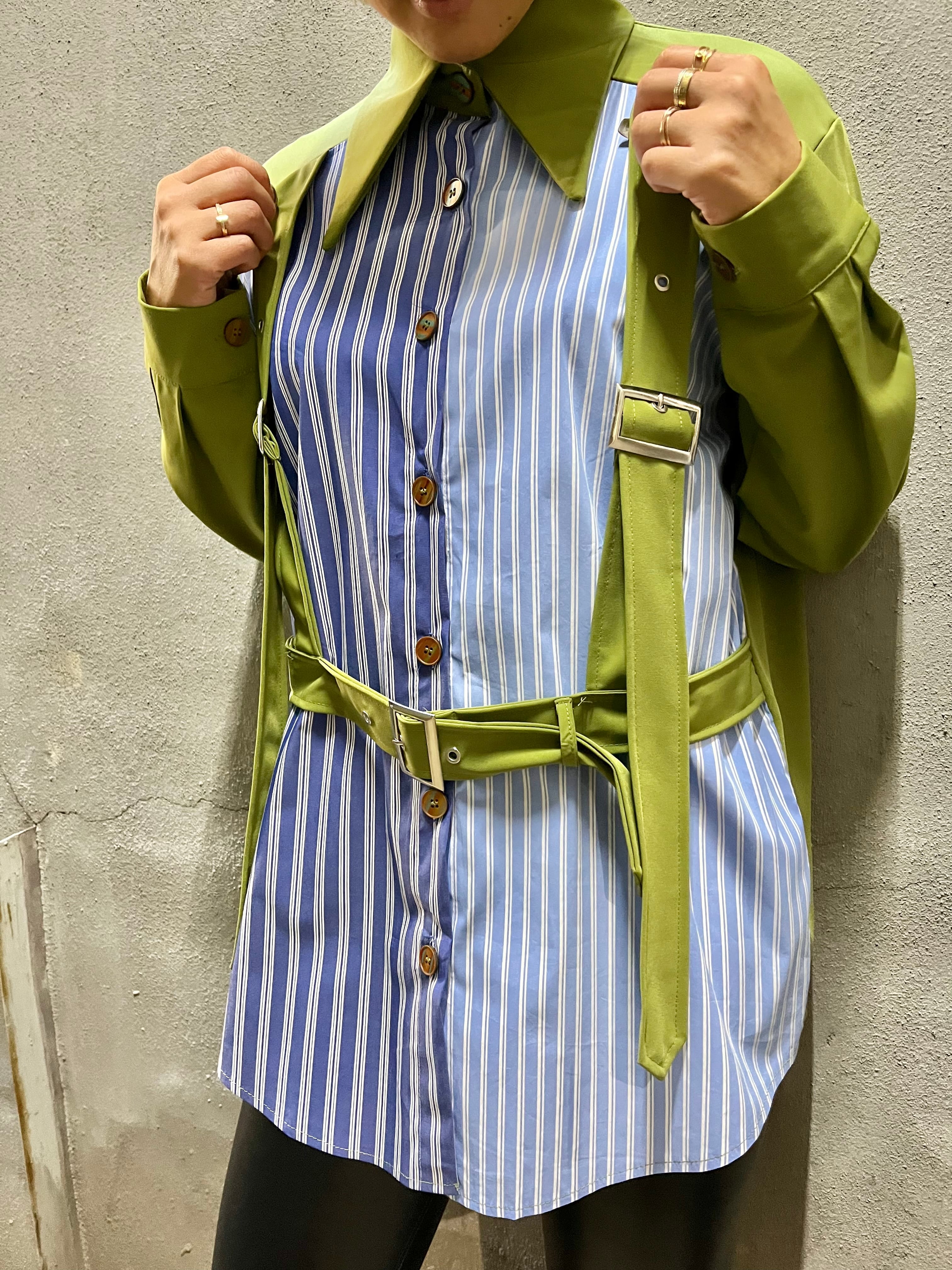 stripe mix military touch belt design shirt シャツ デザインシャツ ストライプ ミリタリー ドッキング