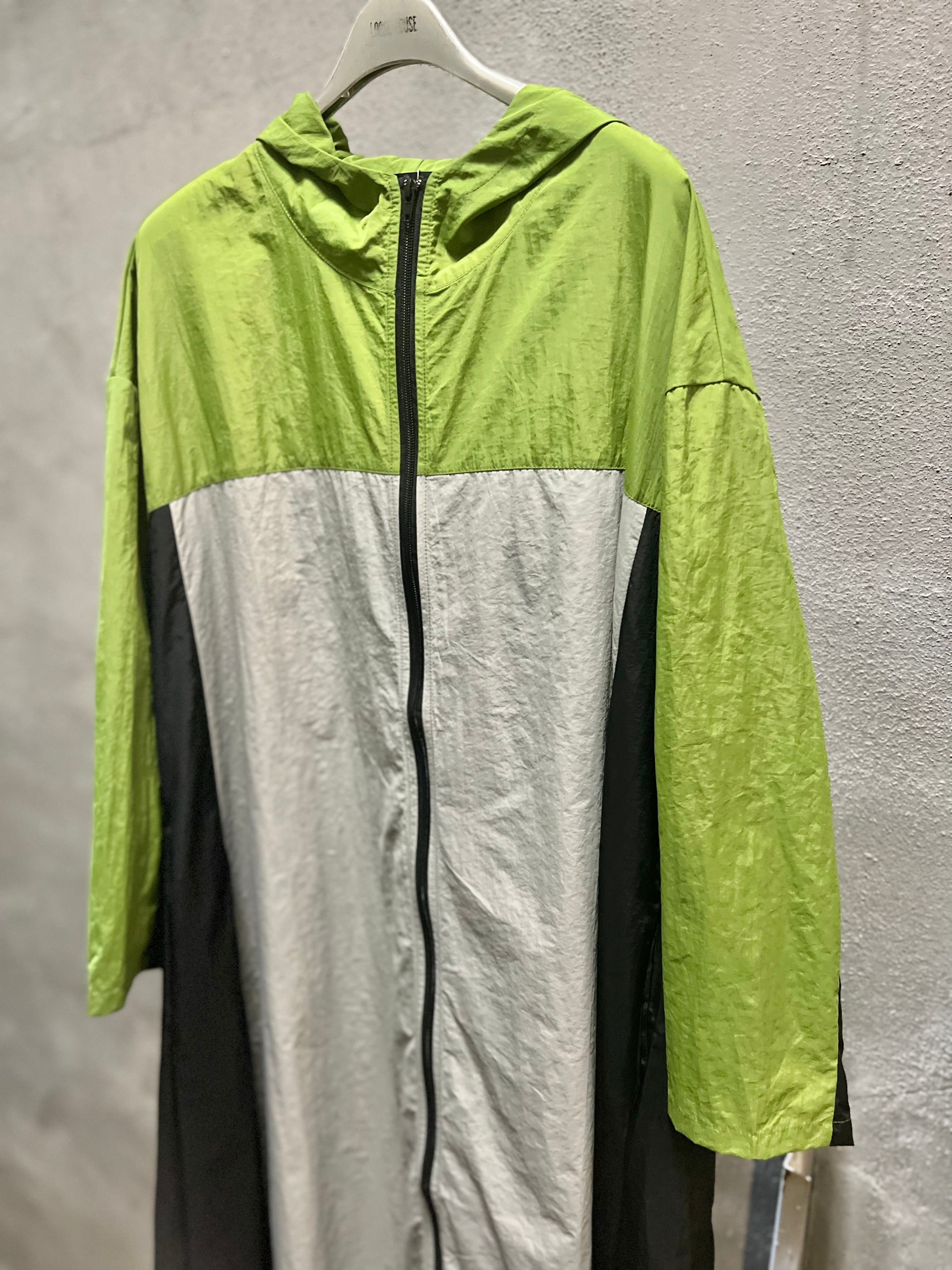 3color zip long hoodie coat コート ジャケット ワンピース 3色 配色 フーディー