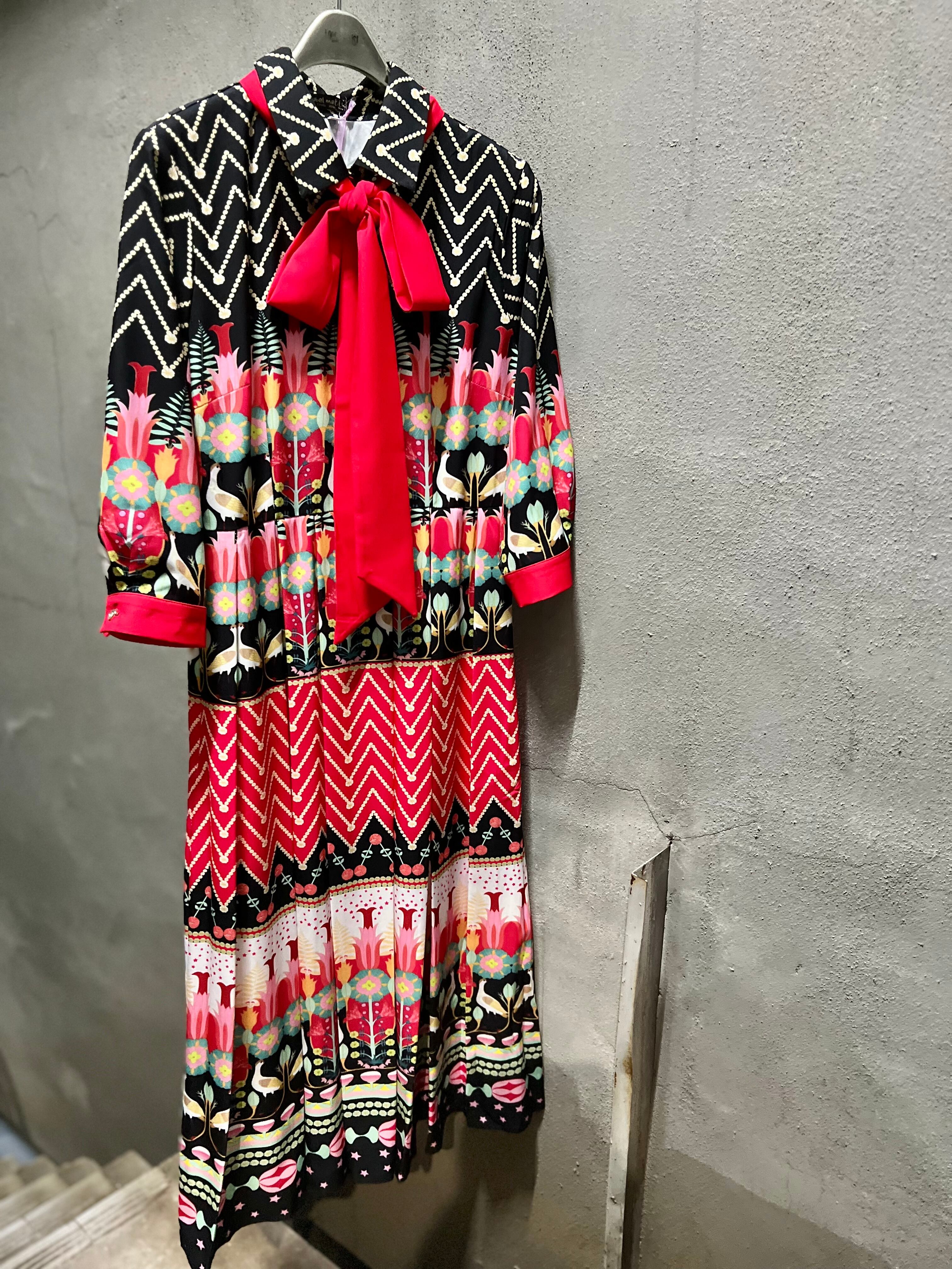 flower bird print one-piece ワンピース ワンピ 柄ワンピ 花柄 鳥 カラフル リボン