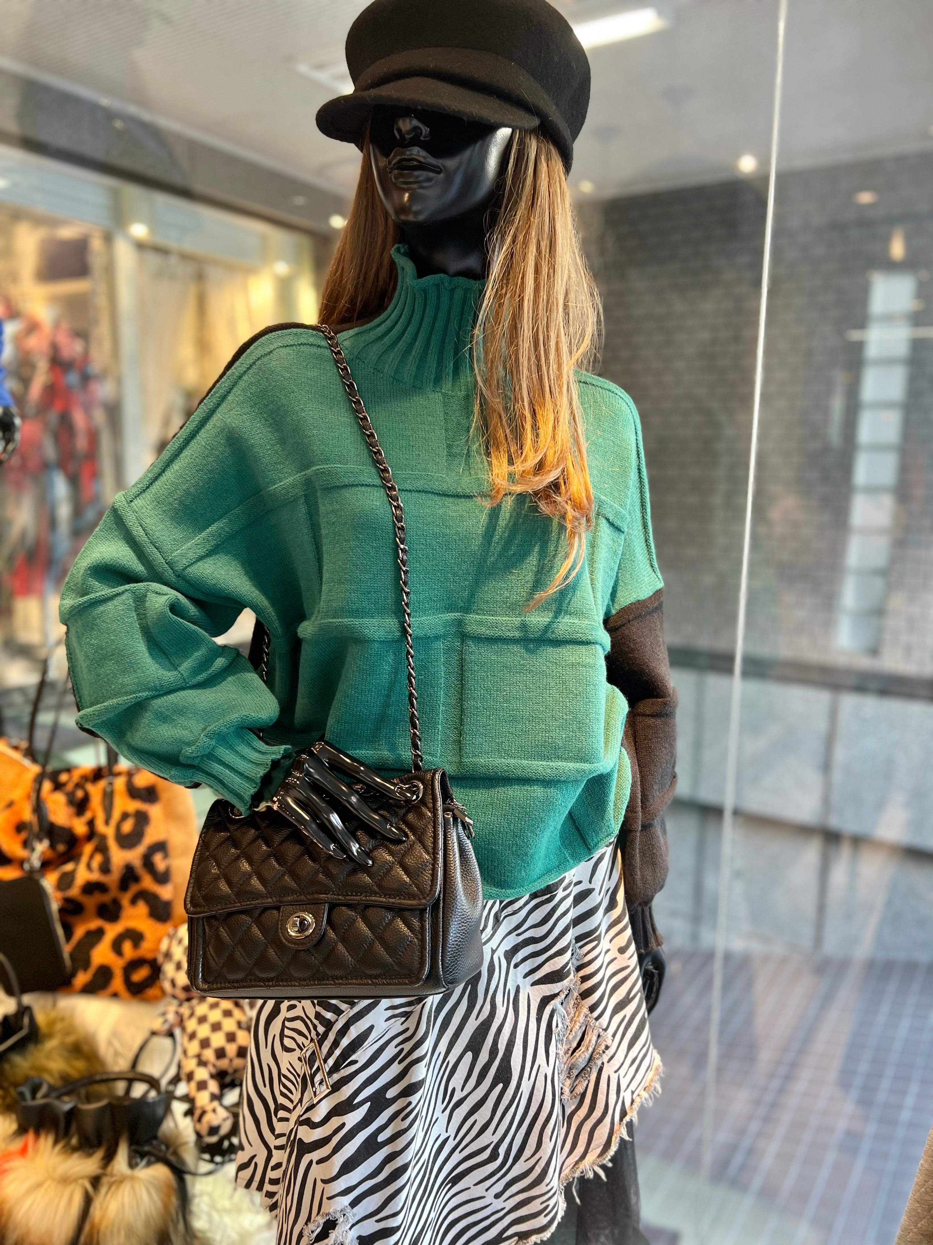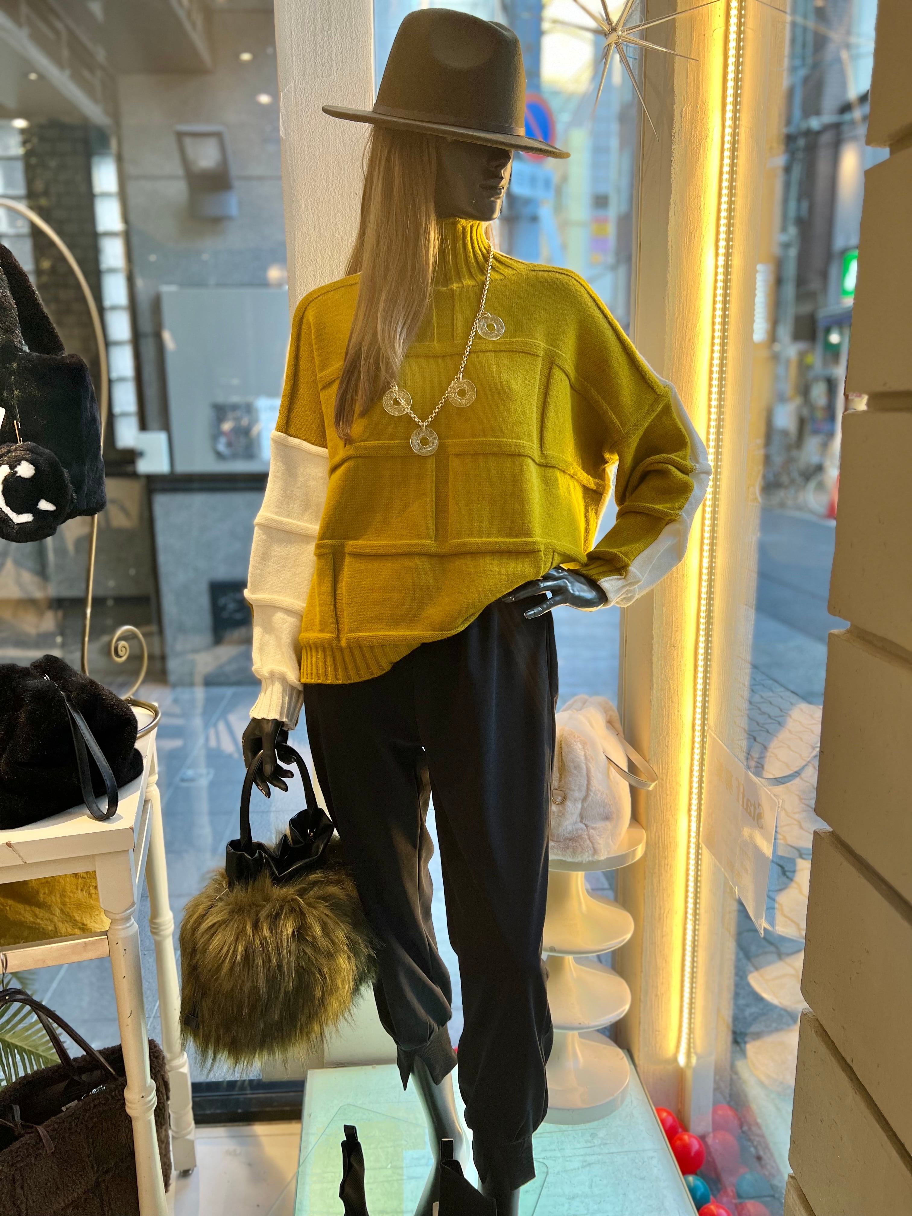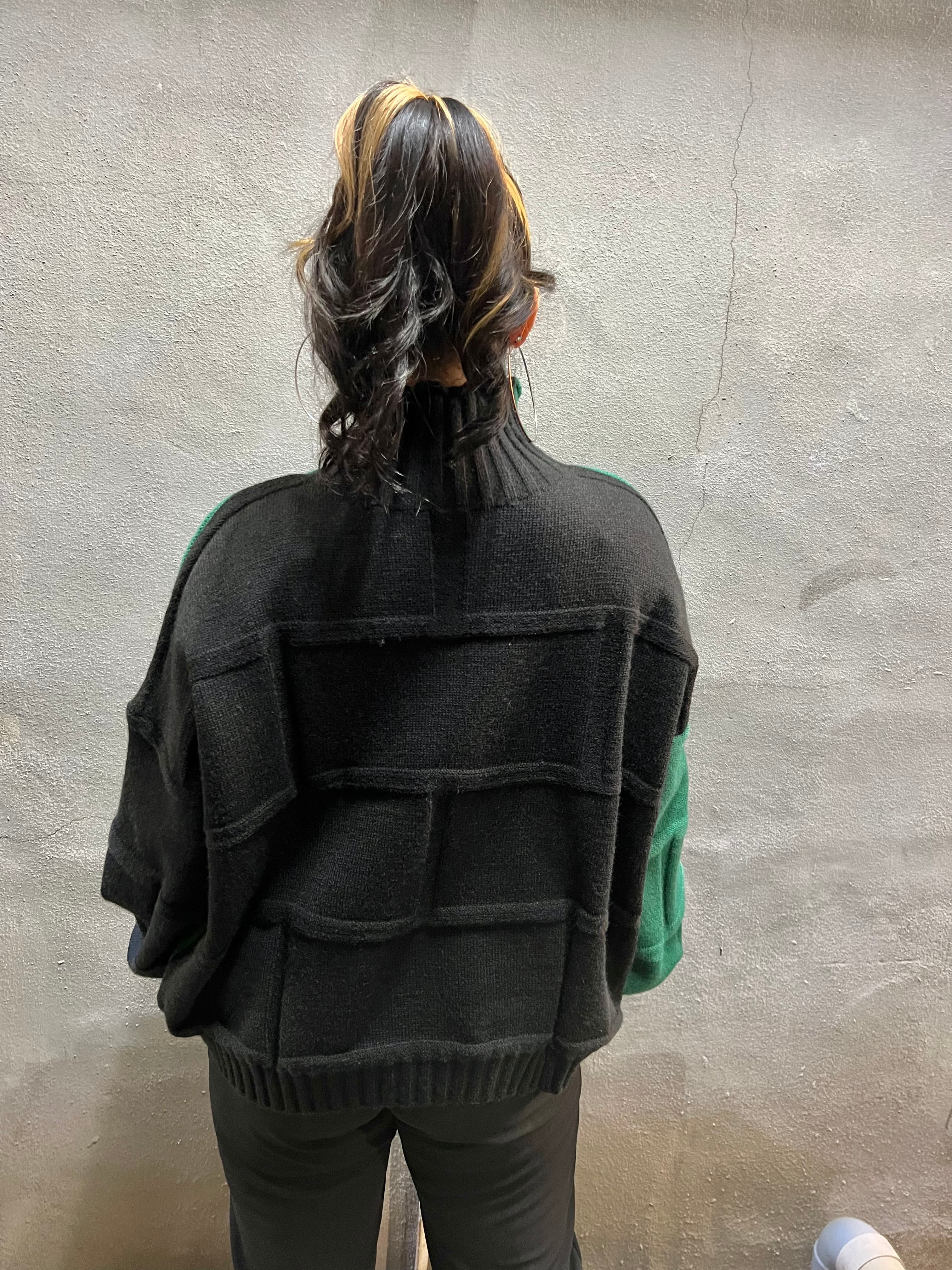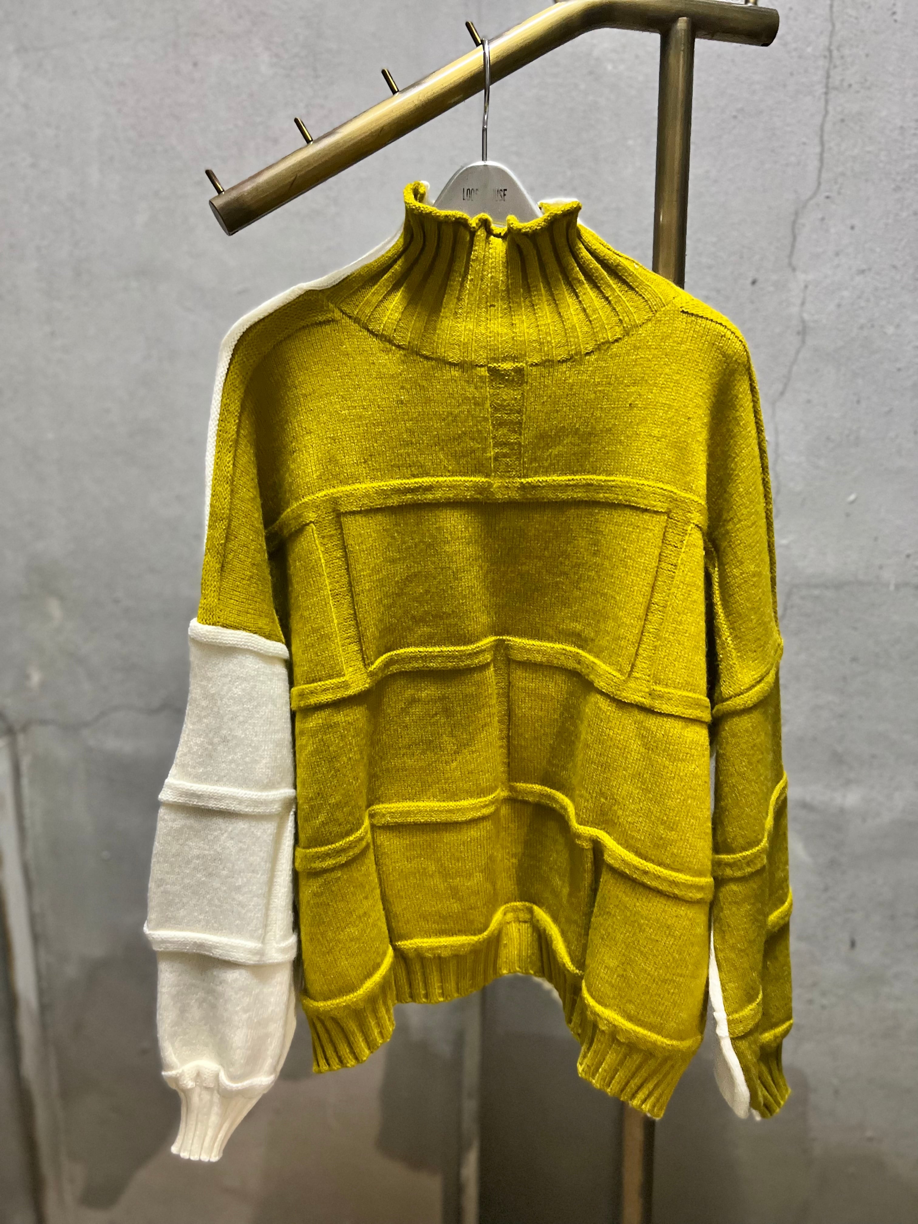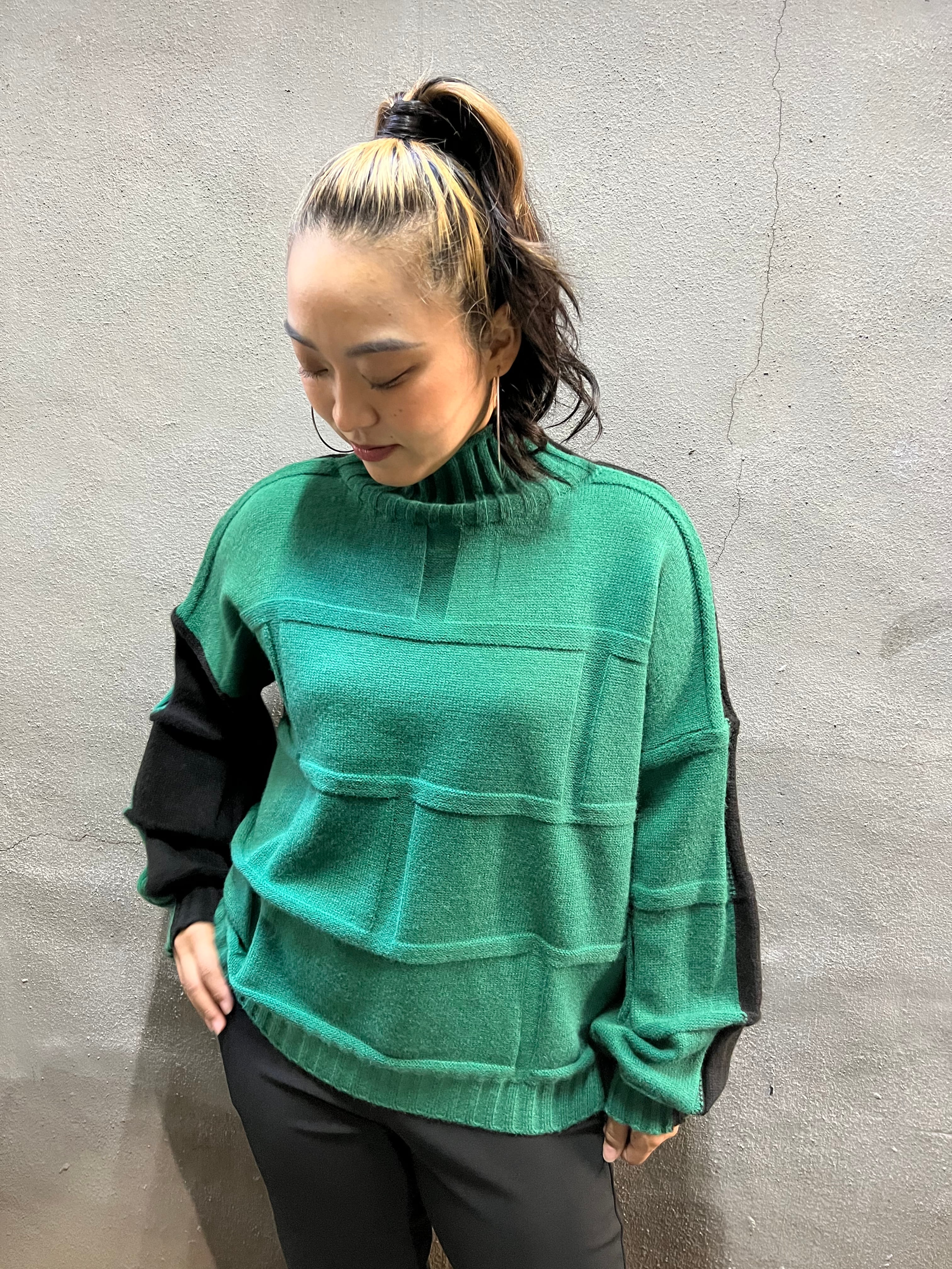 bi-color change high neck sweater knit ニット セーター トップス ハイネック バイカラー ゆったりめ アシンメトリー