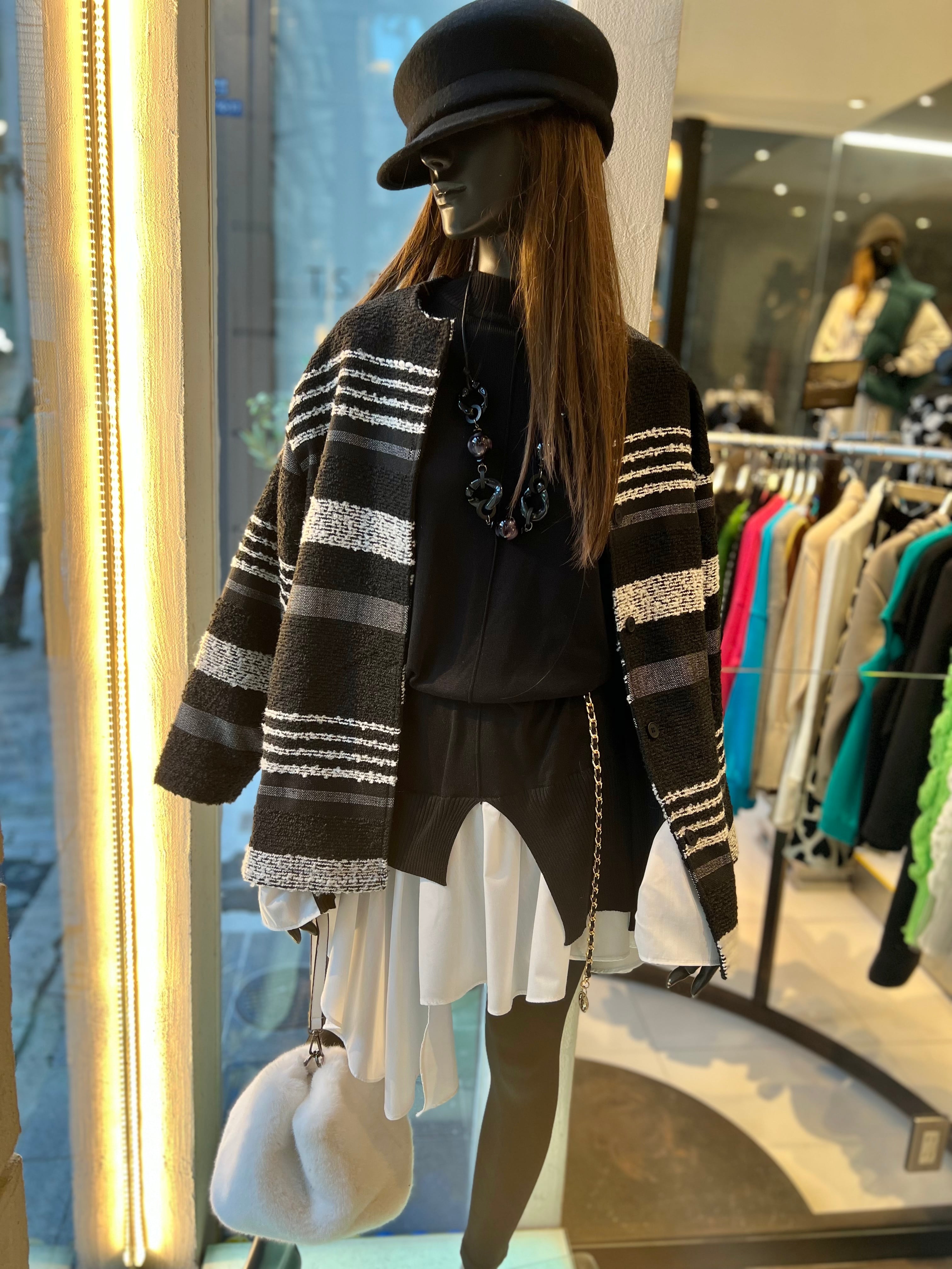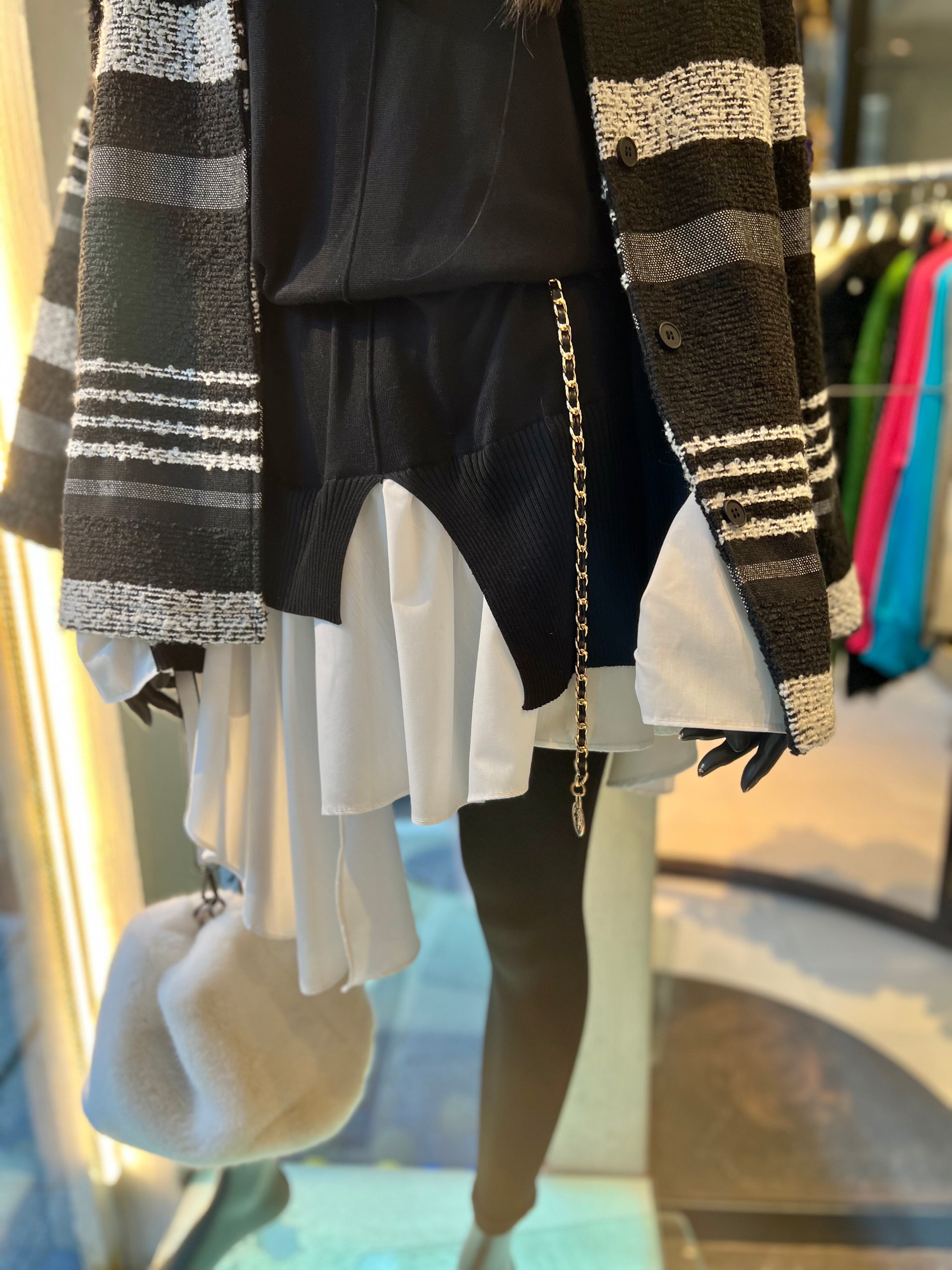 BLACK部分はニット、WHITE部分はシャツ素材の
