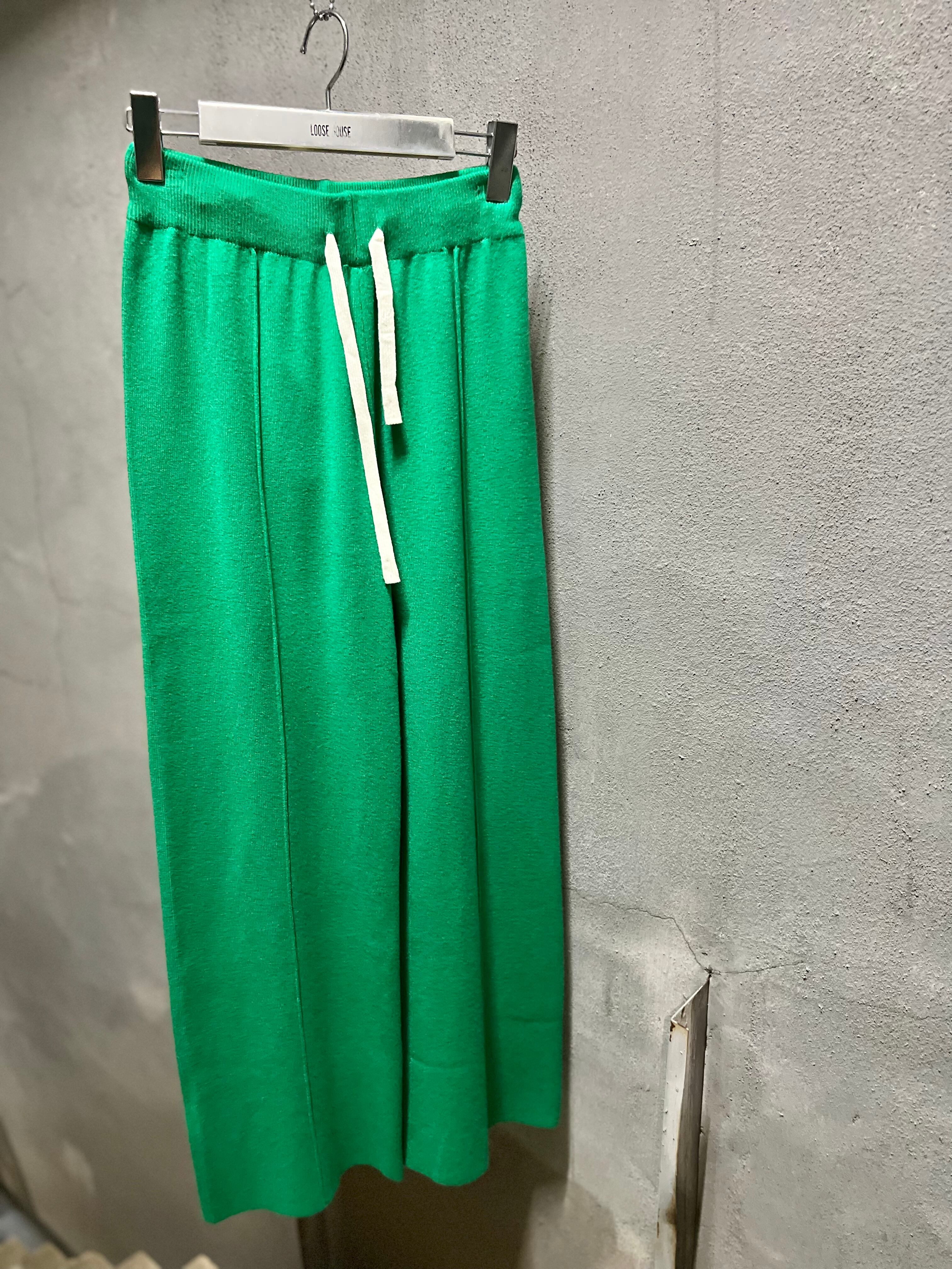 knit wide long pants パンツ ワイドパンツ ニット ロング丈 ゴムウエスト カラーニット