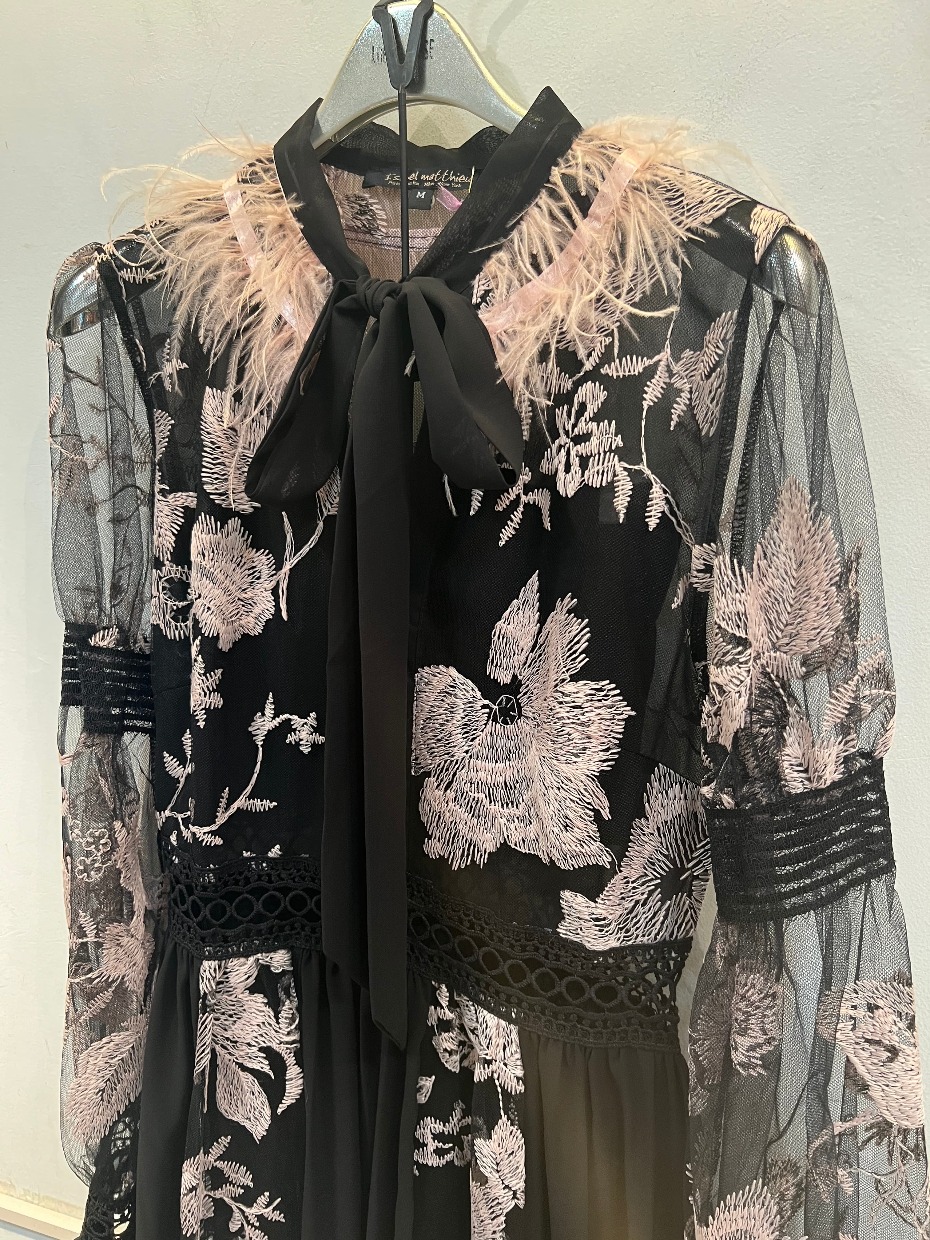 tulle lace change feather neck design one-piece ワンピース ワンピ ドレス チュール レース 刺繍 フェザー ピンク 結婚式 二次会 パーティー