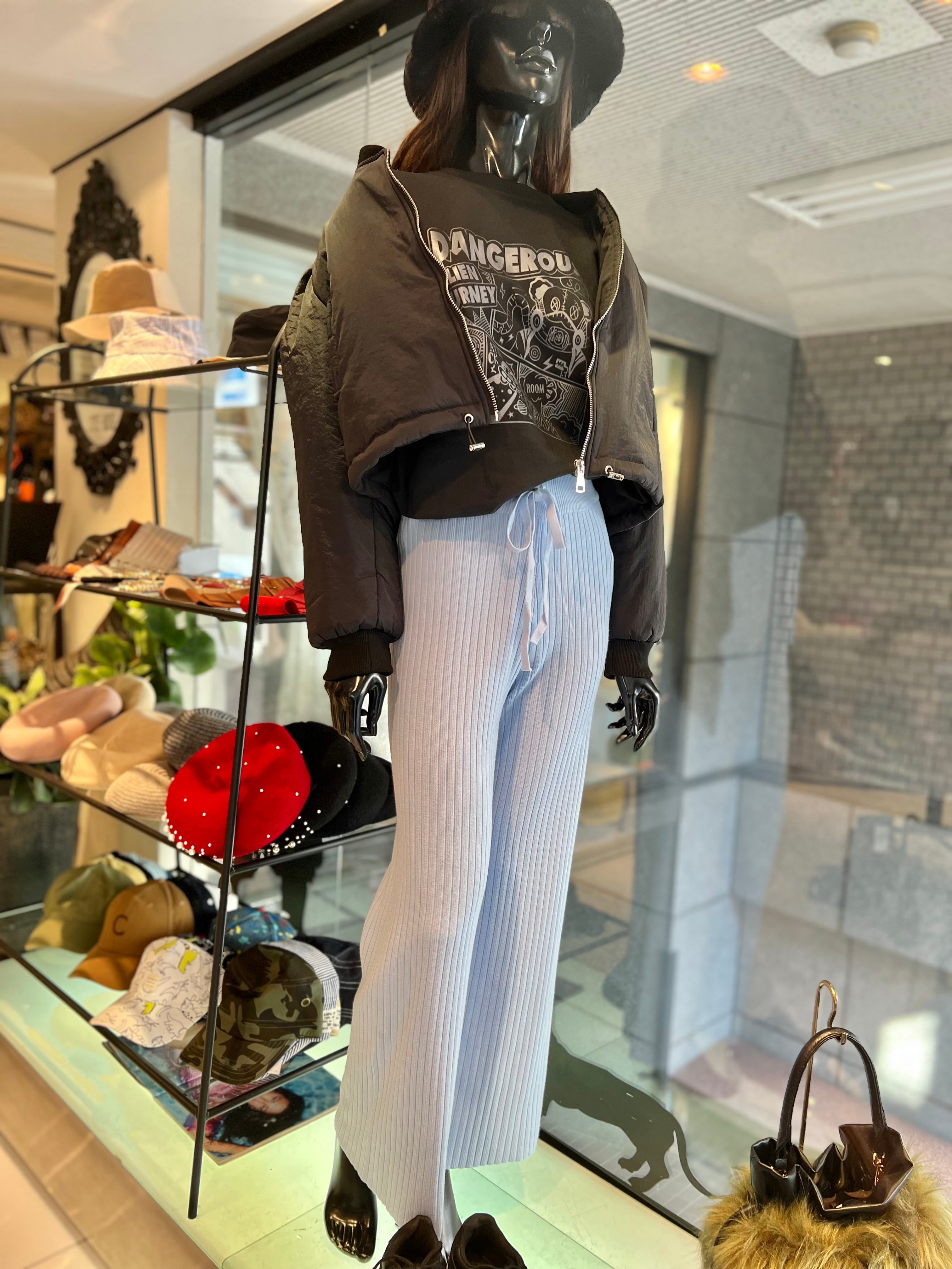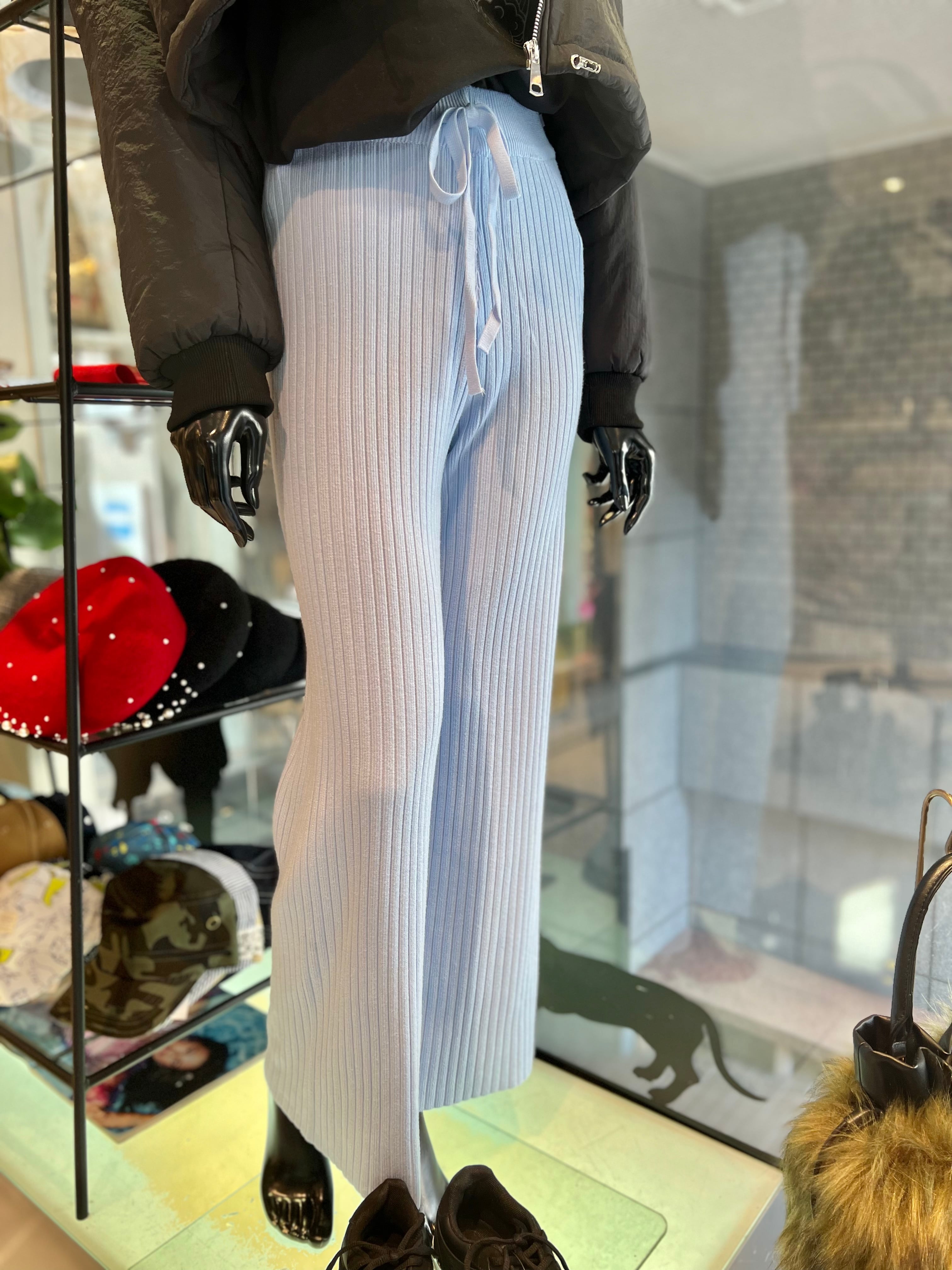 rib knit long wide pants パンツ ニット ワイドパンツ ゴムウエスト 楽ちん カジュアル