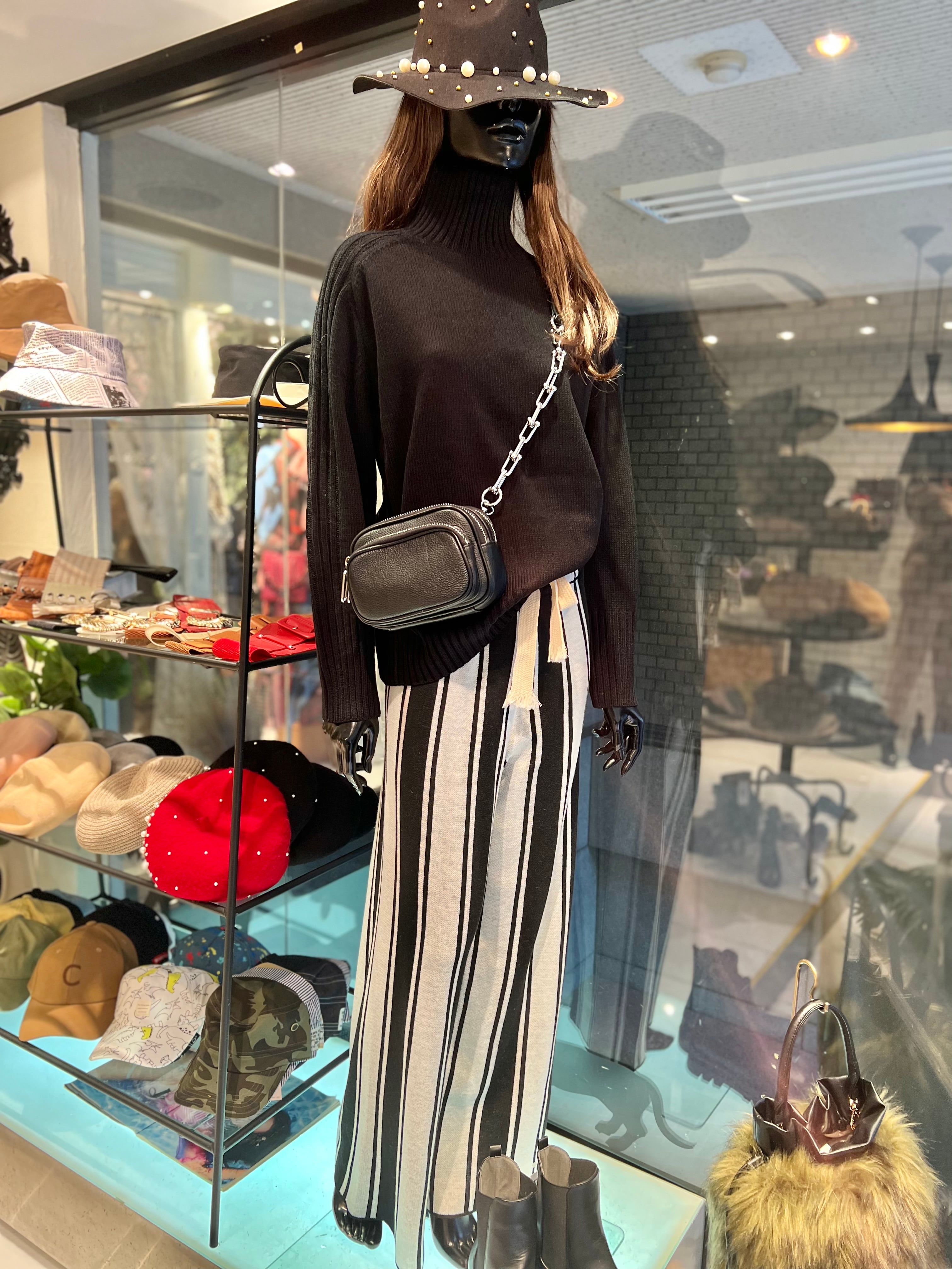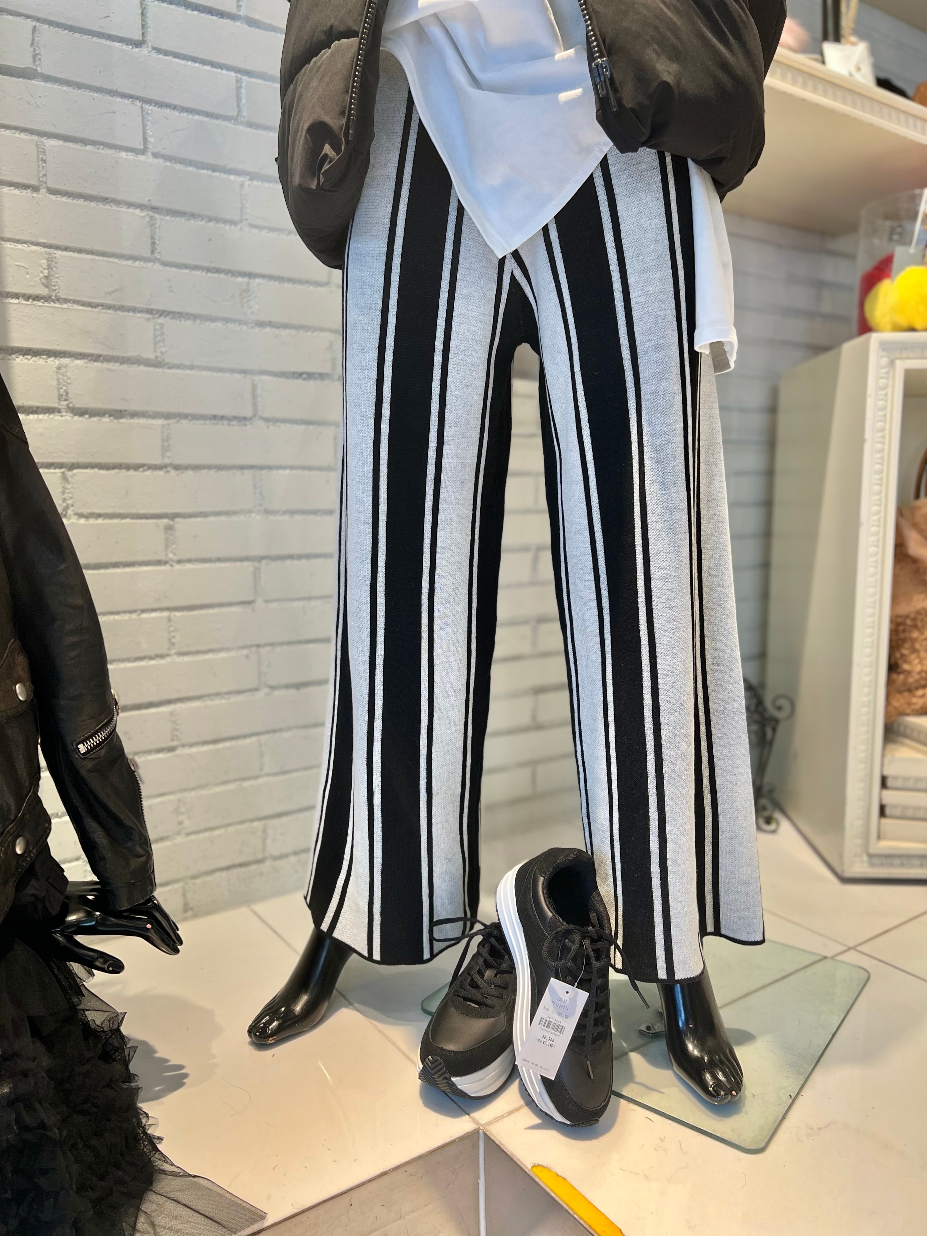 stripe knit long wide pants パンツ ワイドパンツ ニット ストライプ バイカラー 白黒