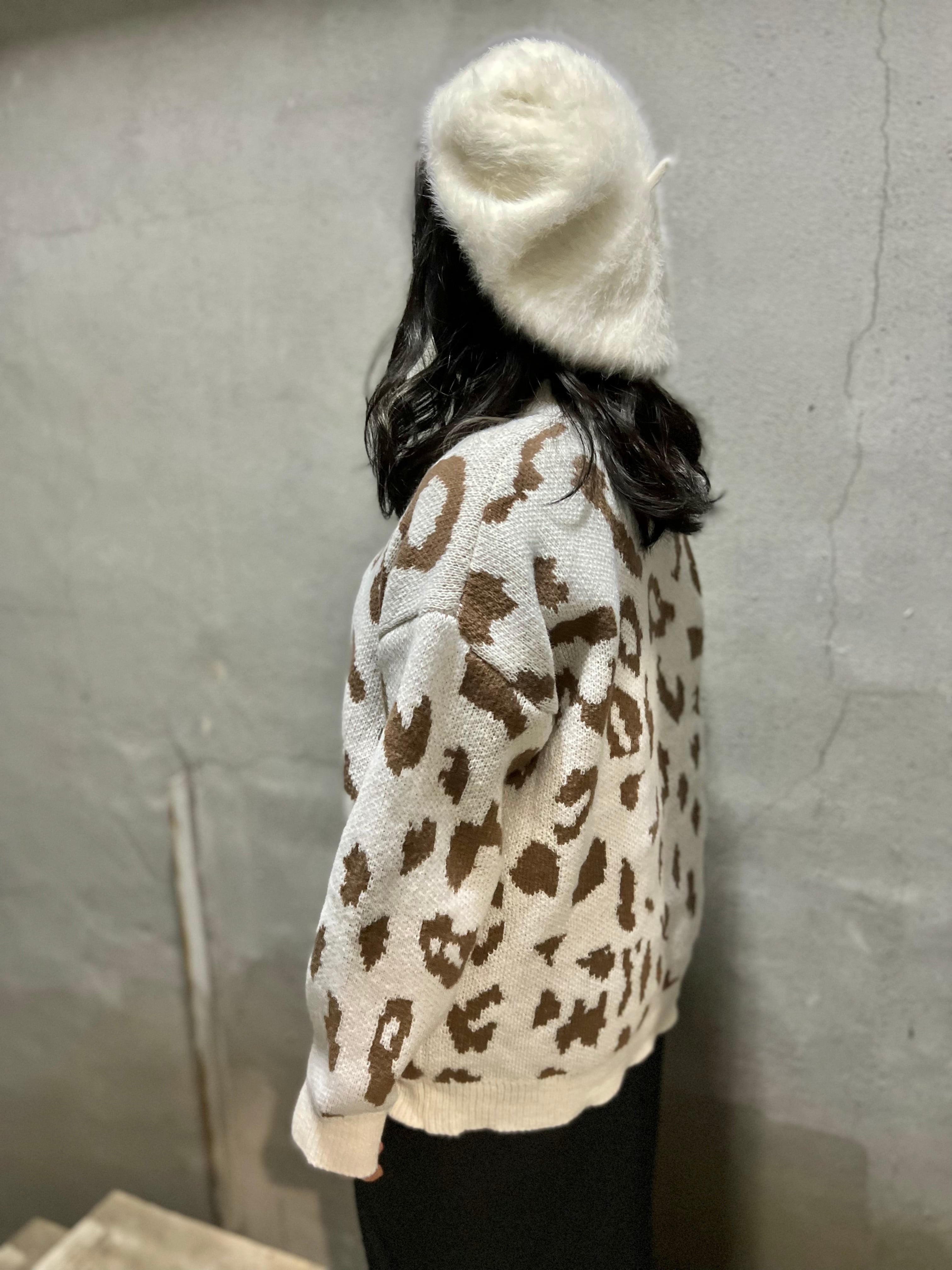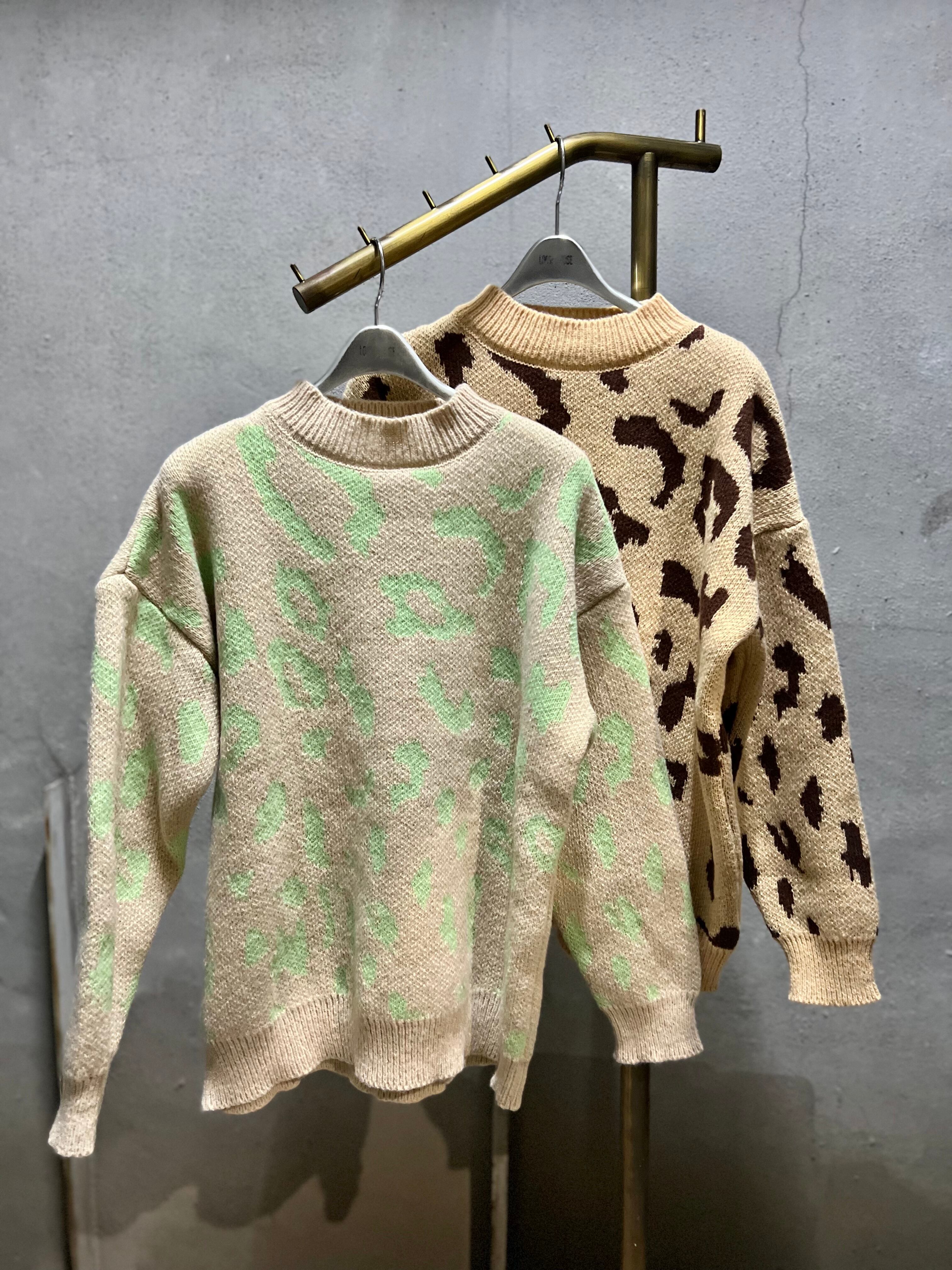 leopard pattern knit sweater ニット トップス セーター レオパード 豹柄 バイカラー