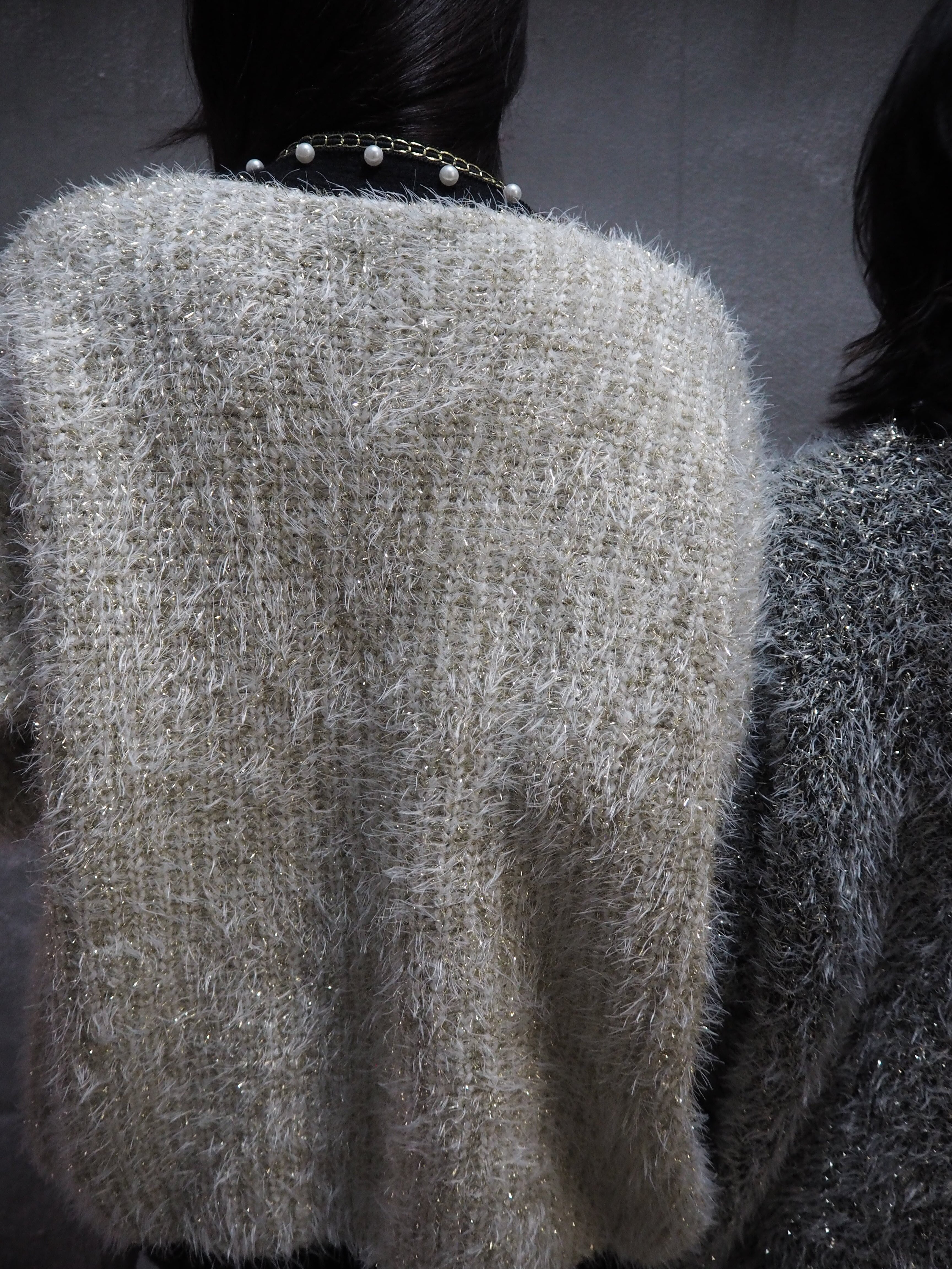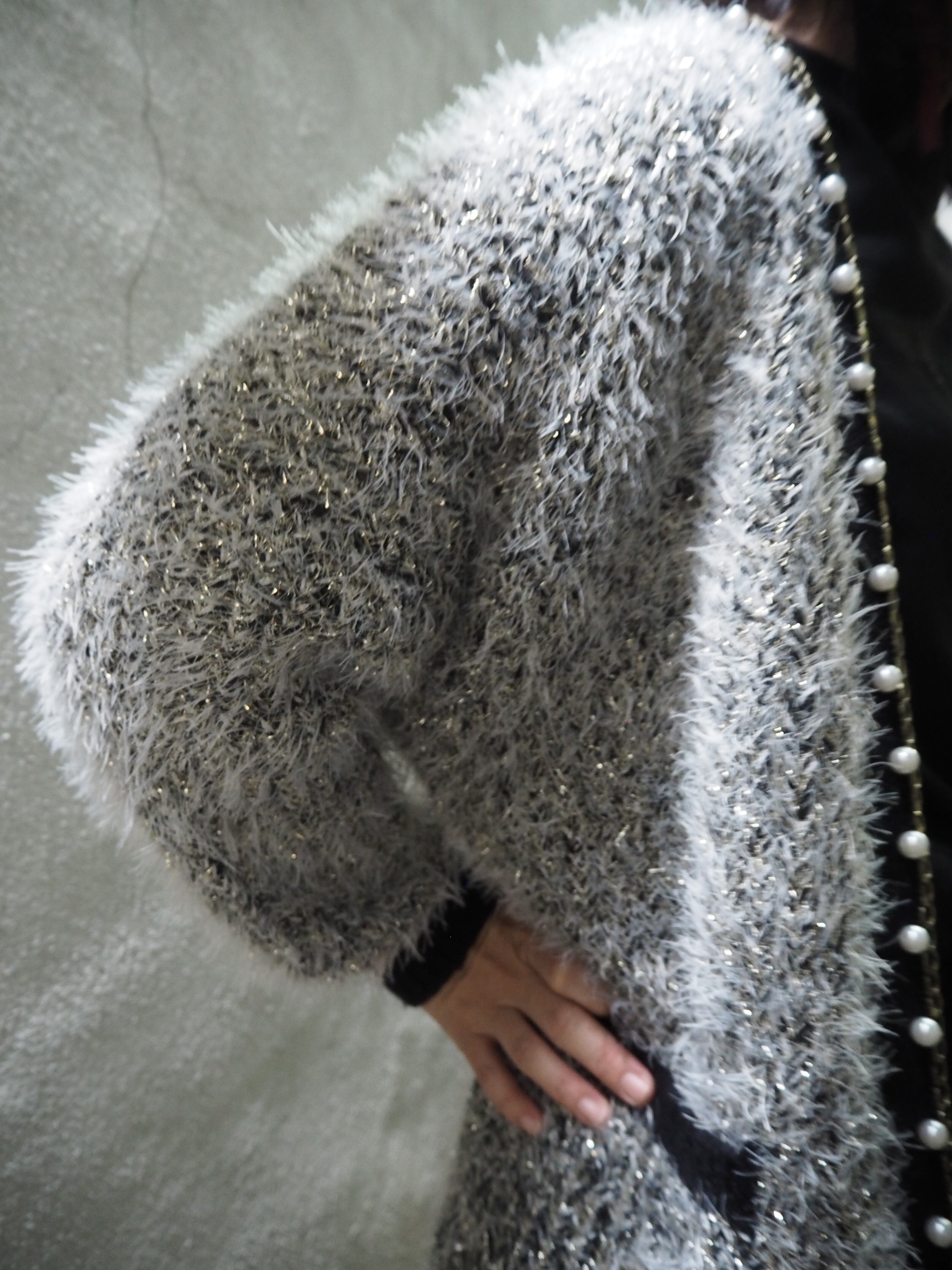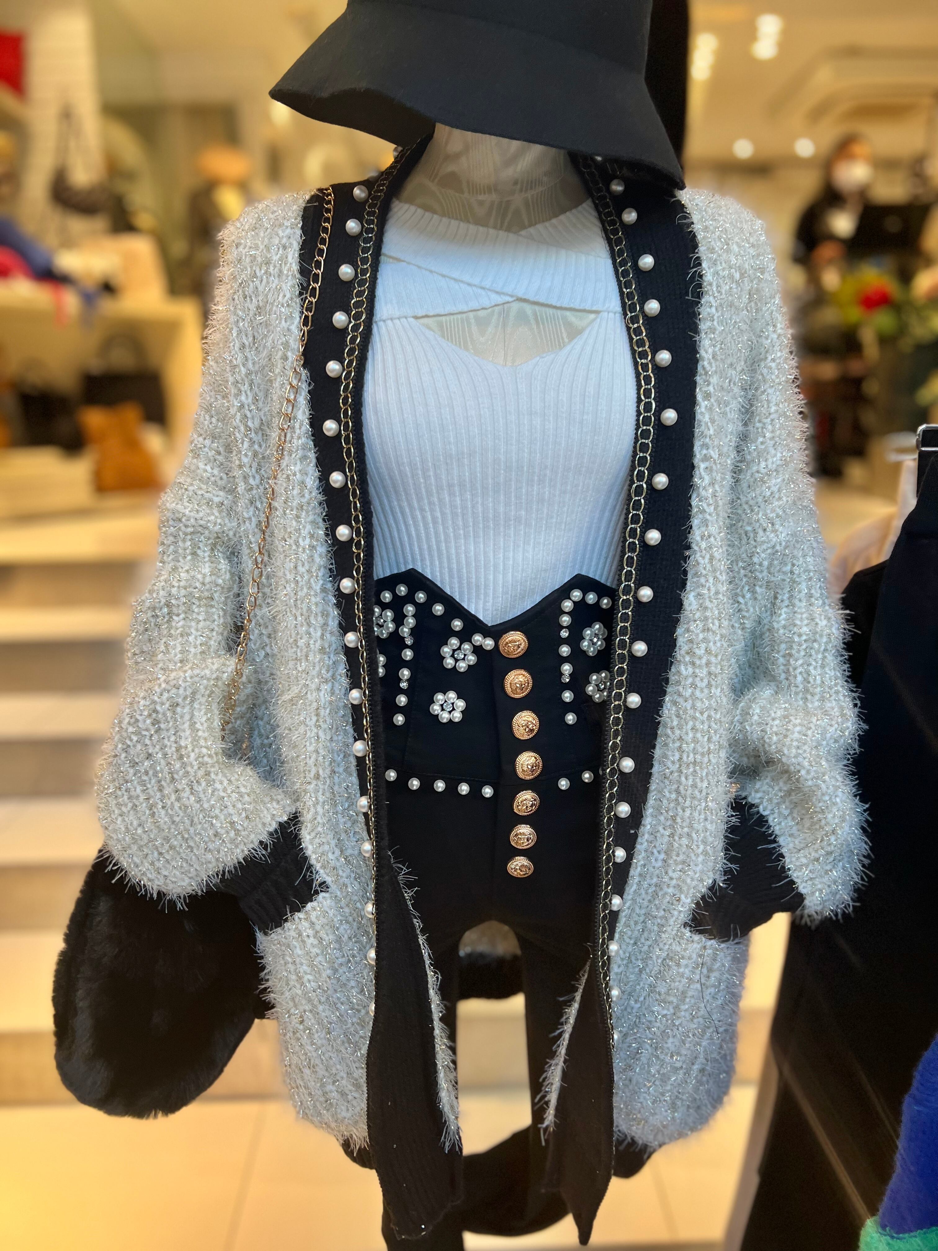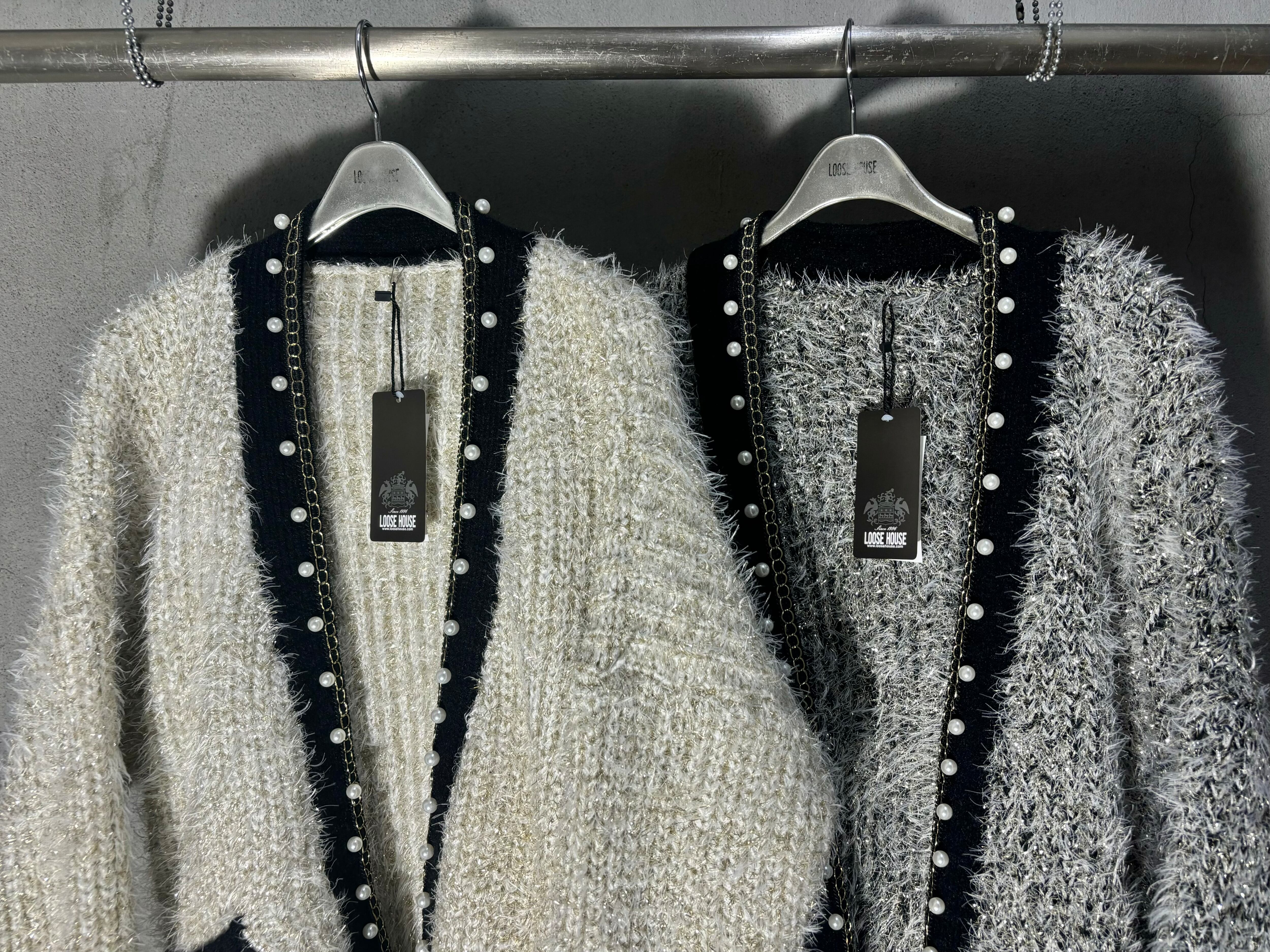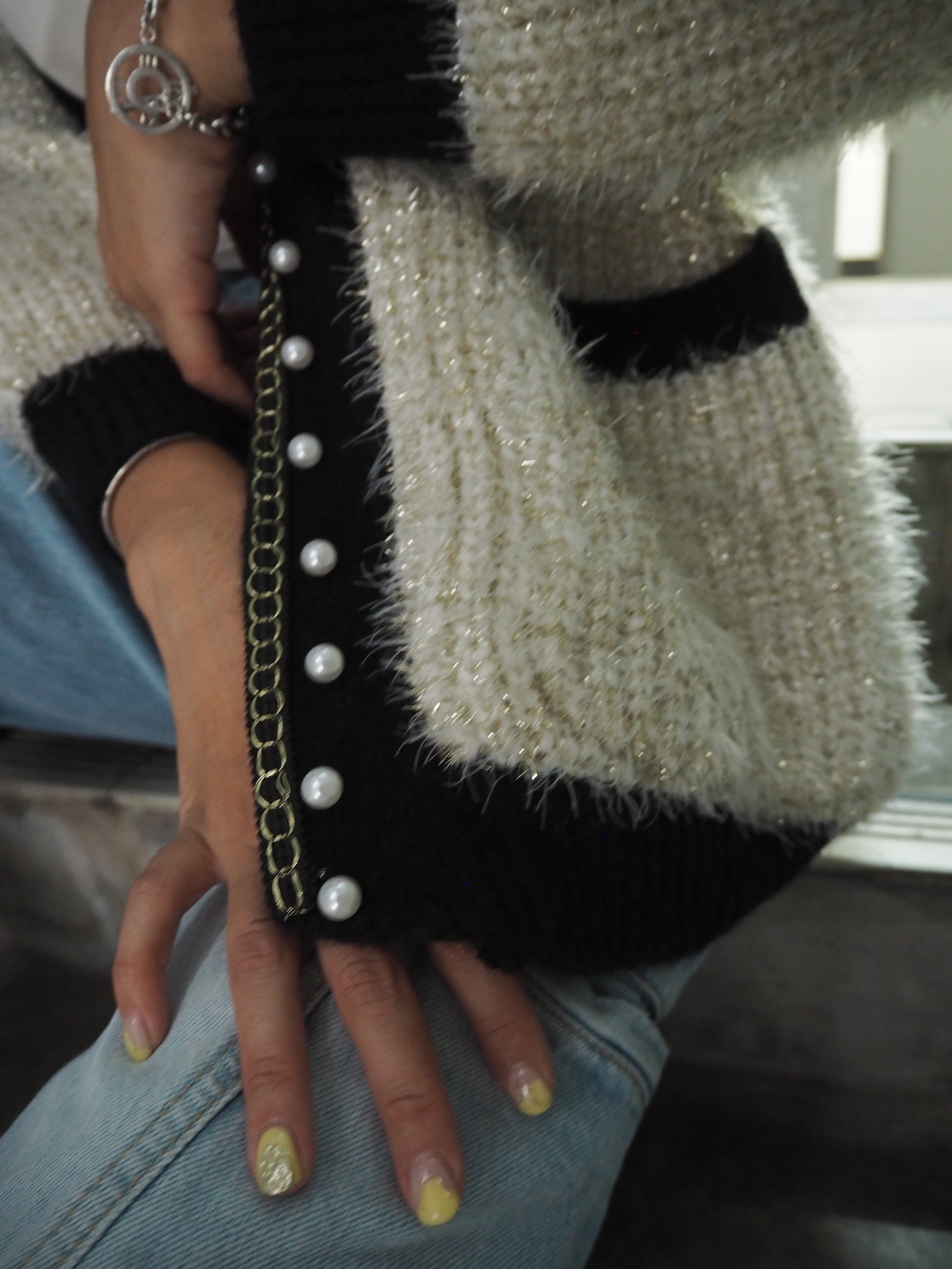 lamé mix yarn pearl chain trimming knit cardigan ニット カーディガン パール ヤーン チェーン ラメ