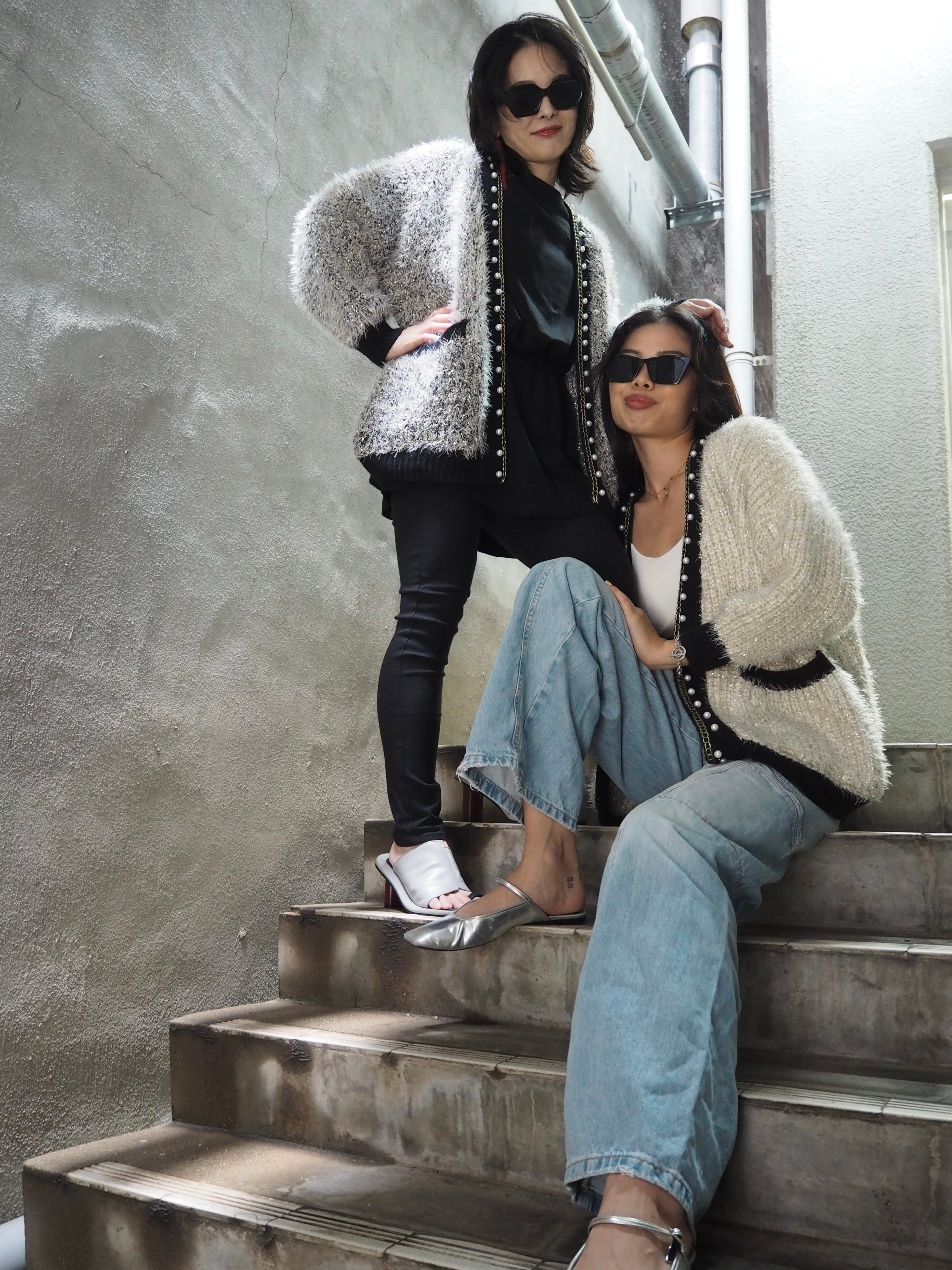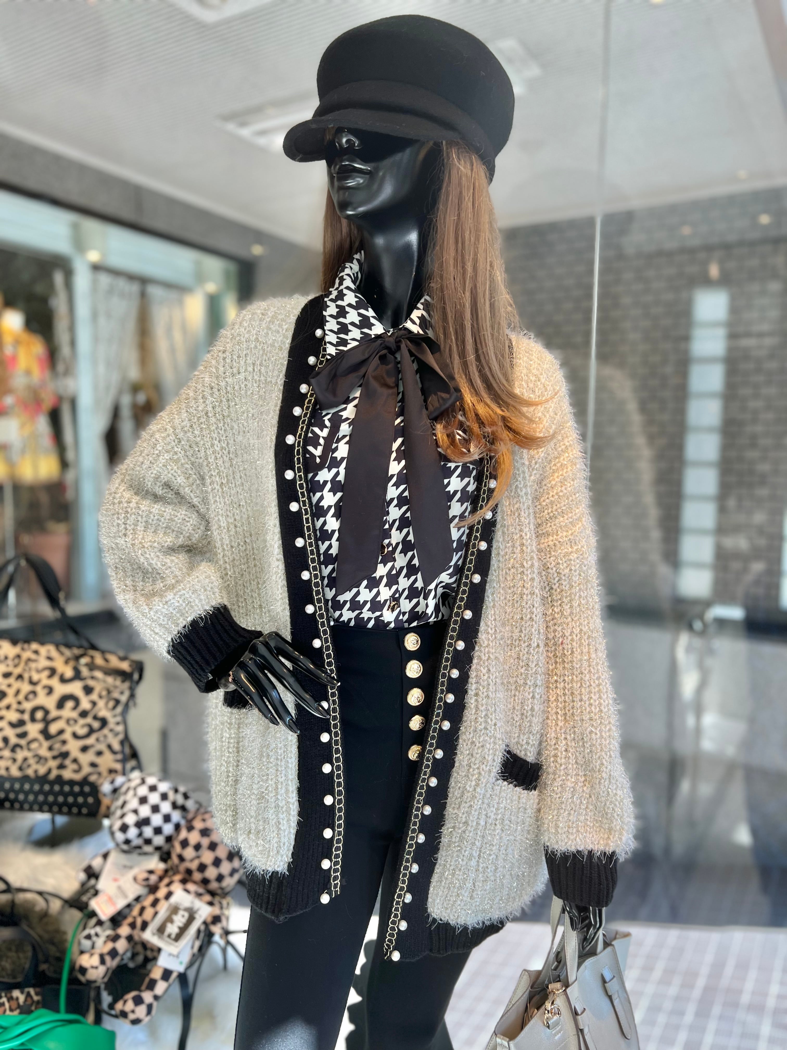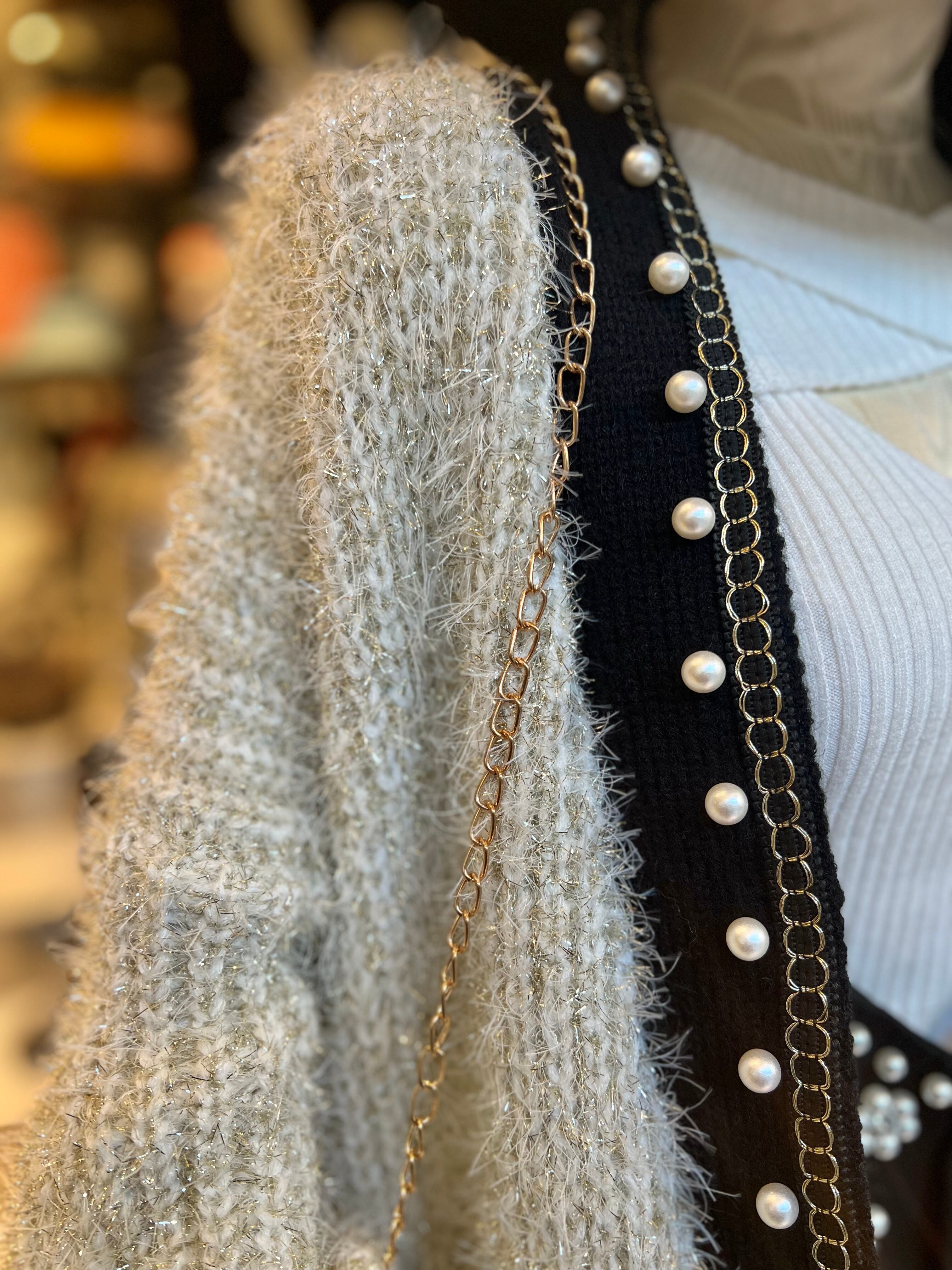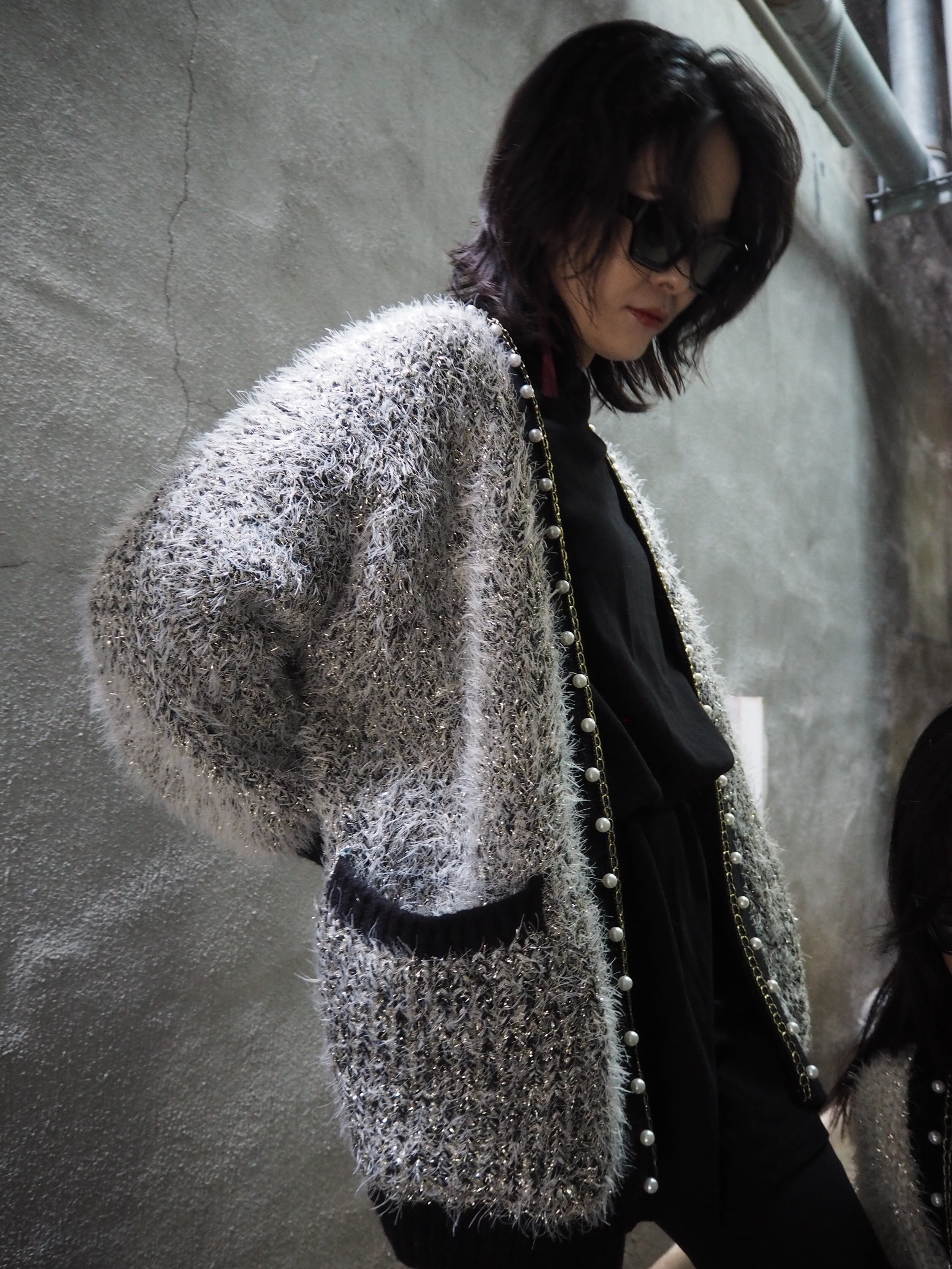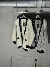 lamé mix yarn pearl chain trimming knit cardigan ニット カーディガン パール ヤーン チェーン ラメ