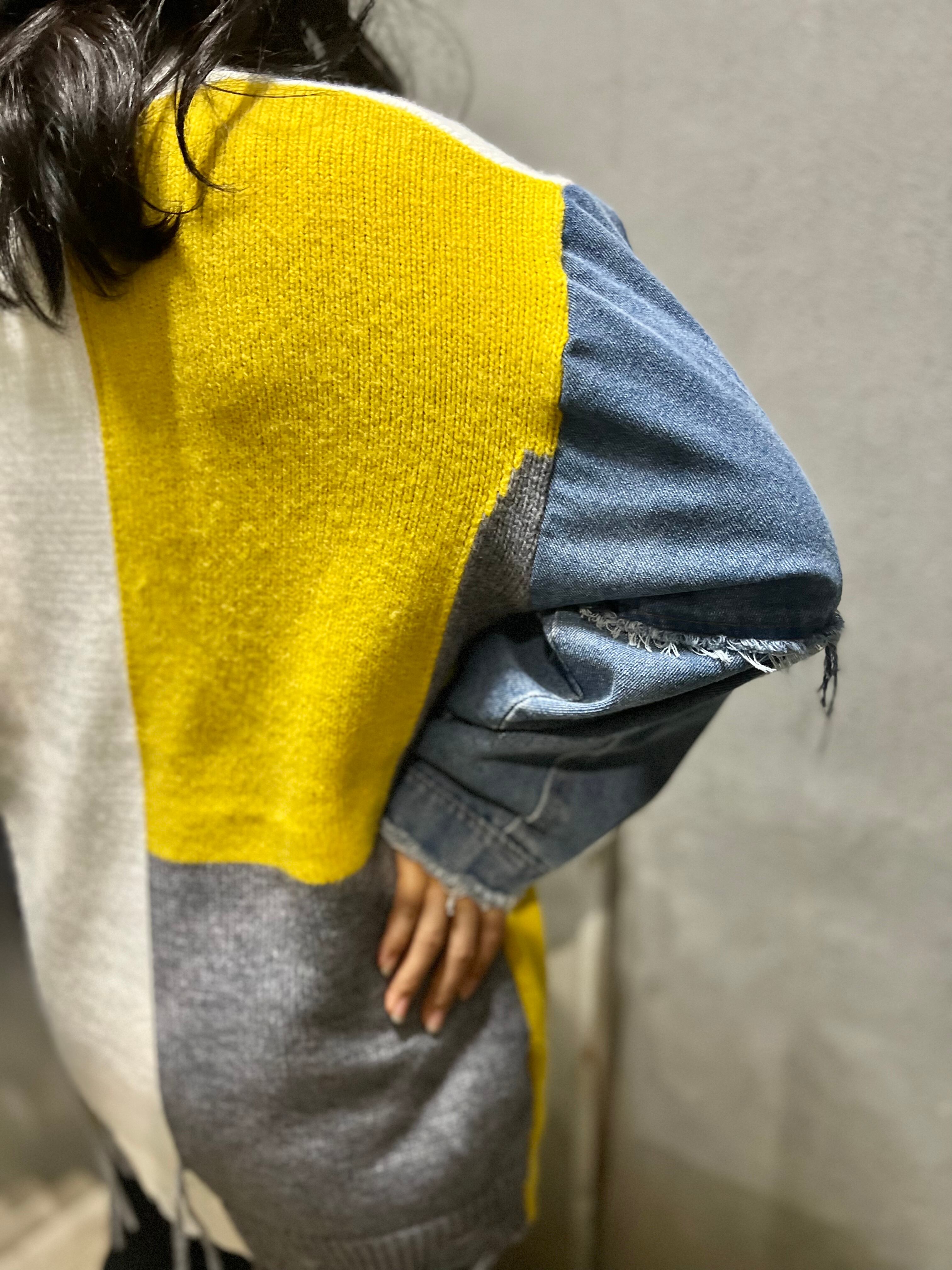 different fabrics change smiley tops トップス デニム ニット 切替デザイン スマイリー ニコちゃん