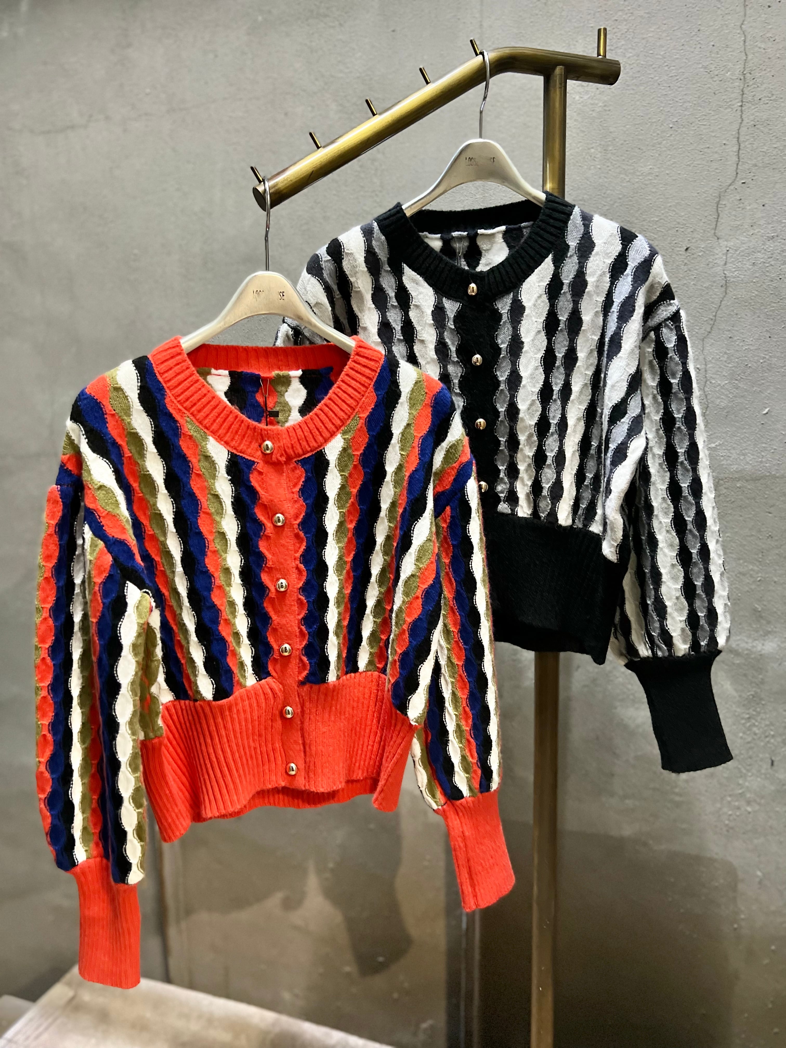 wave stripe knit tops ニット トップス ストライプ ウェーブ 配色