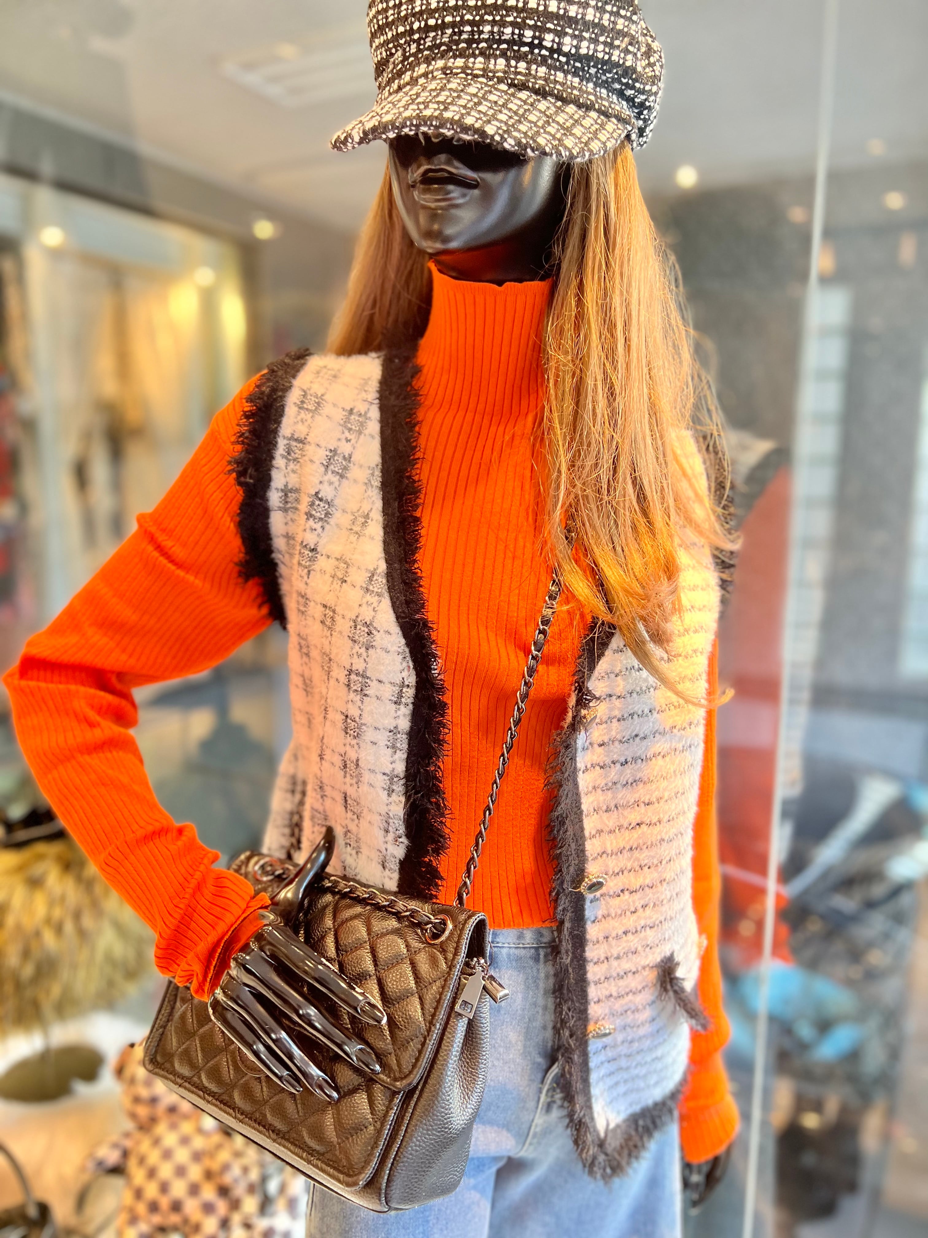 shaggy knit fringe trimming vest ベスト シャギー ニット フリンジ 重ね着 レイヤード