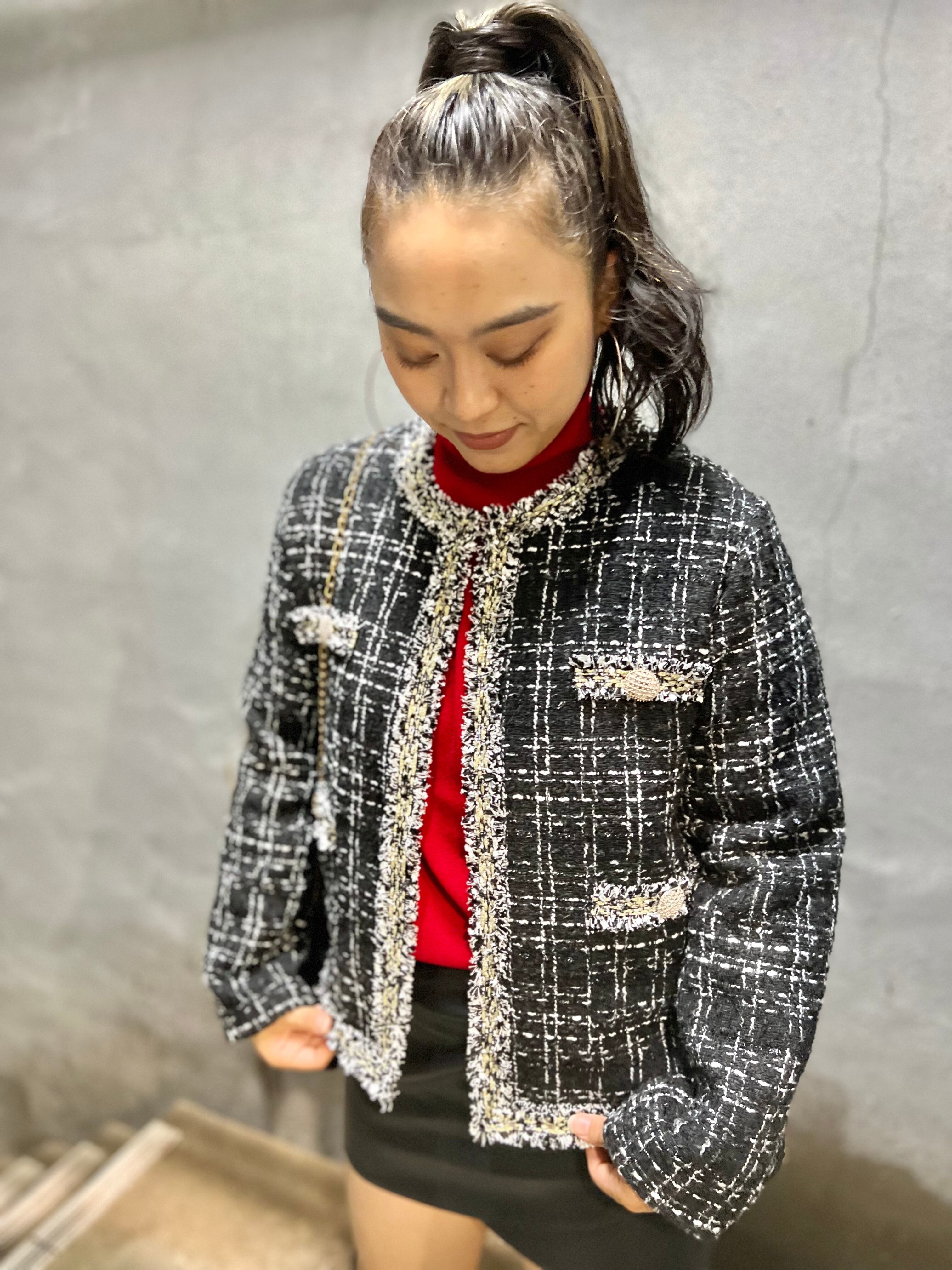 tweed C-necj jacket ジャケット ツィード Cネック きれいめ 上品