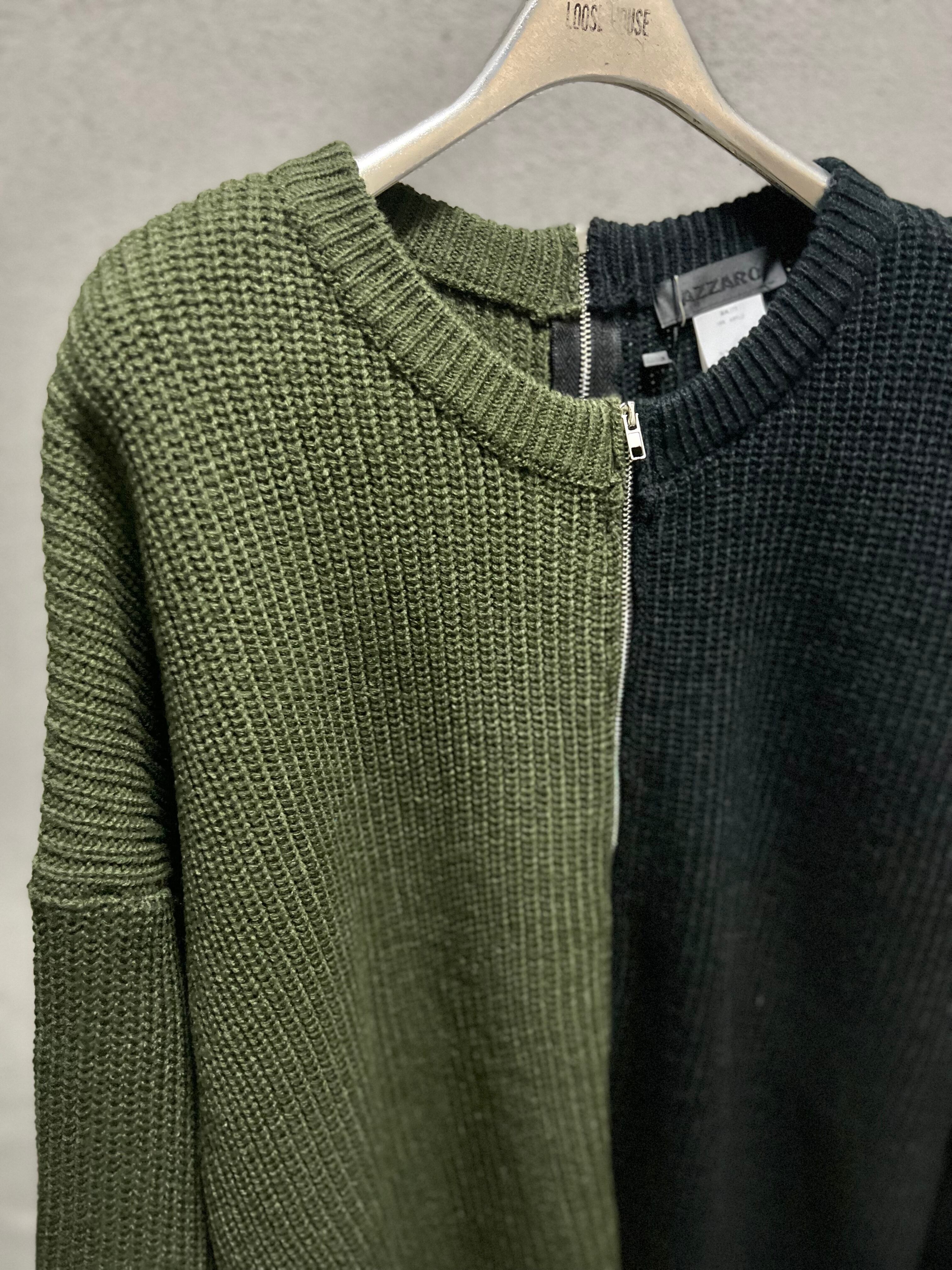 rib knit asymmetry color zip tops ニット アシンメトリー バイカラー 配色 ジッパー