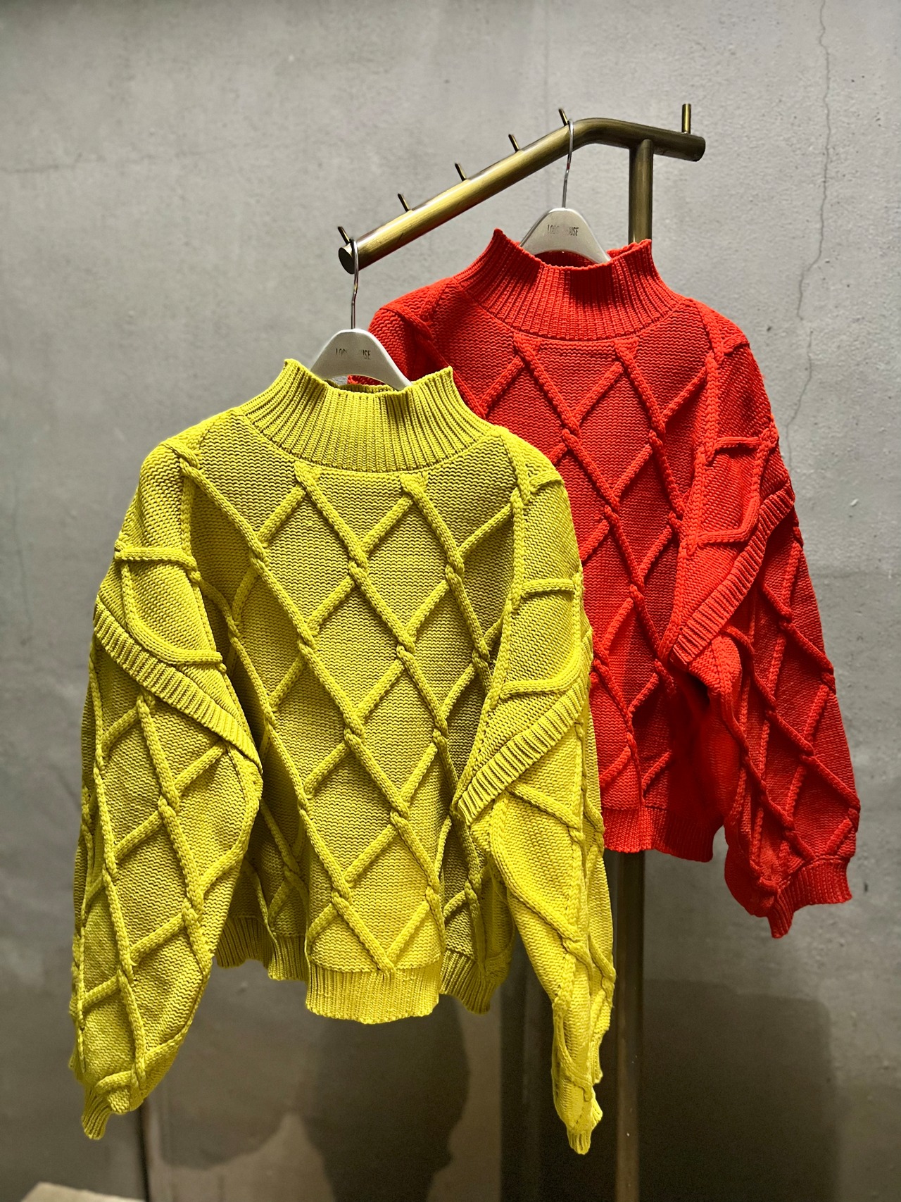 cable knit high neck sweater ニット セーター ケーブルニット ハイネック カラフル きれい色