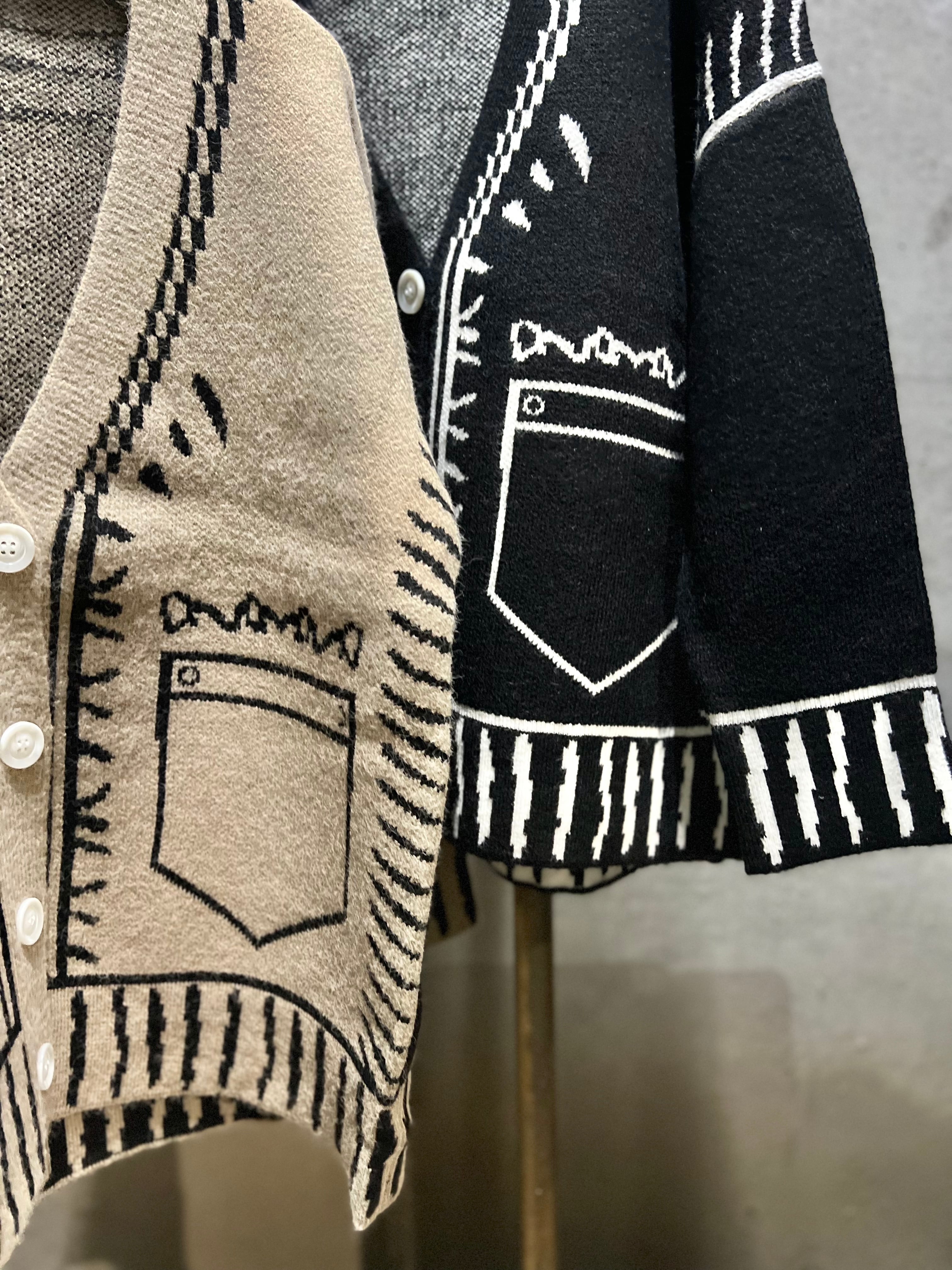 trompe-l'oeil jacquard knit cardigan ニット カーディガン ニットカーデ 騙し絵 だまし絵 プリント