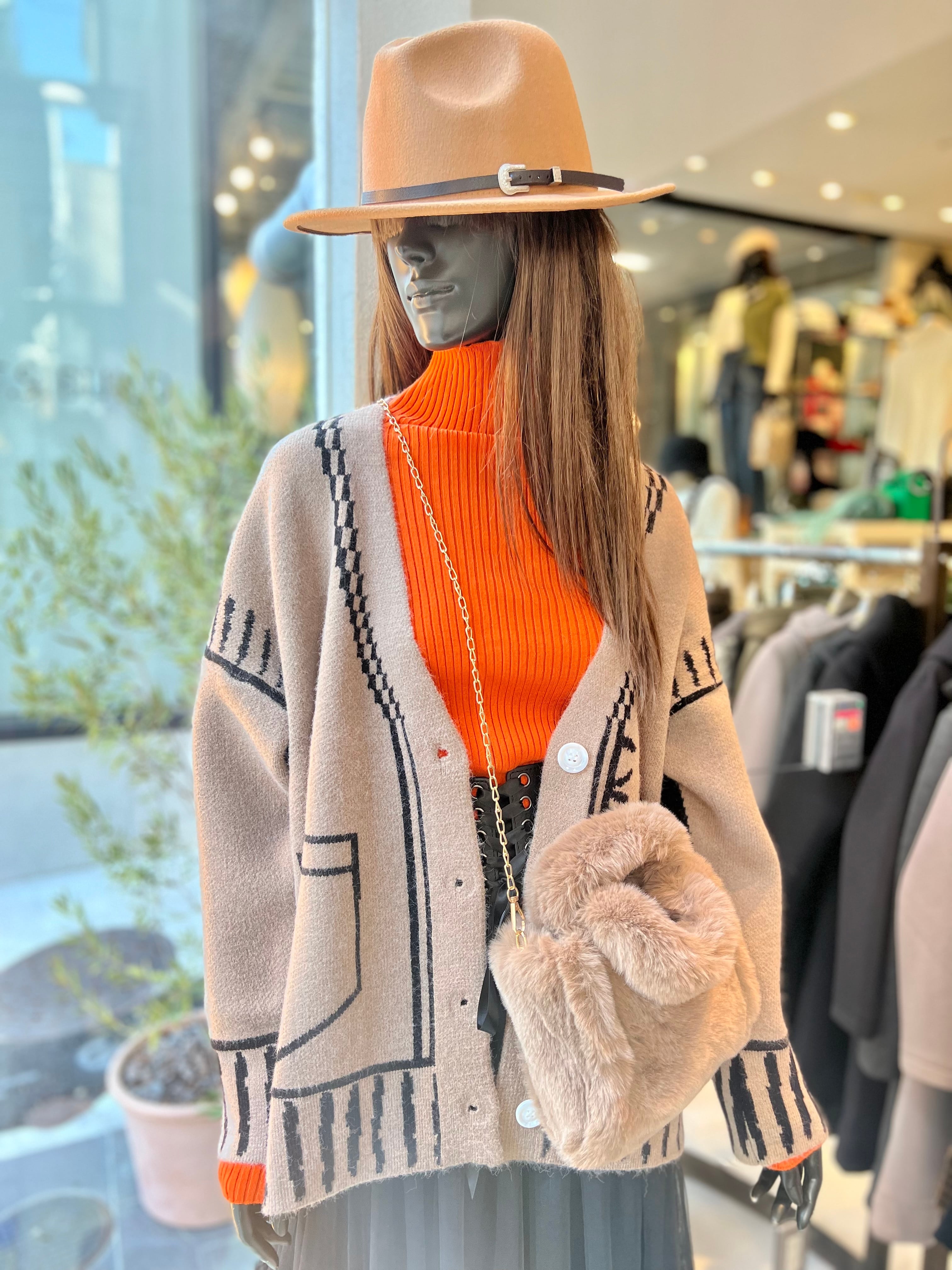 インナーには、タートル、シャツ、Tシャツとなんでも合わせられて