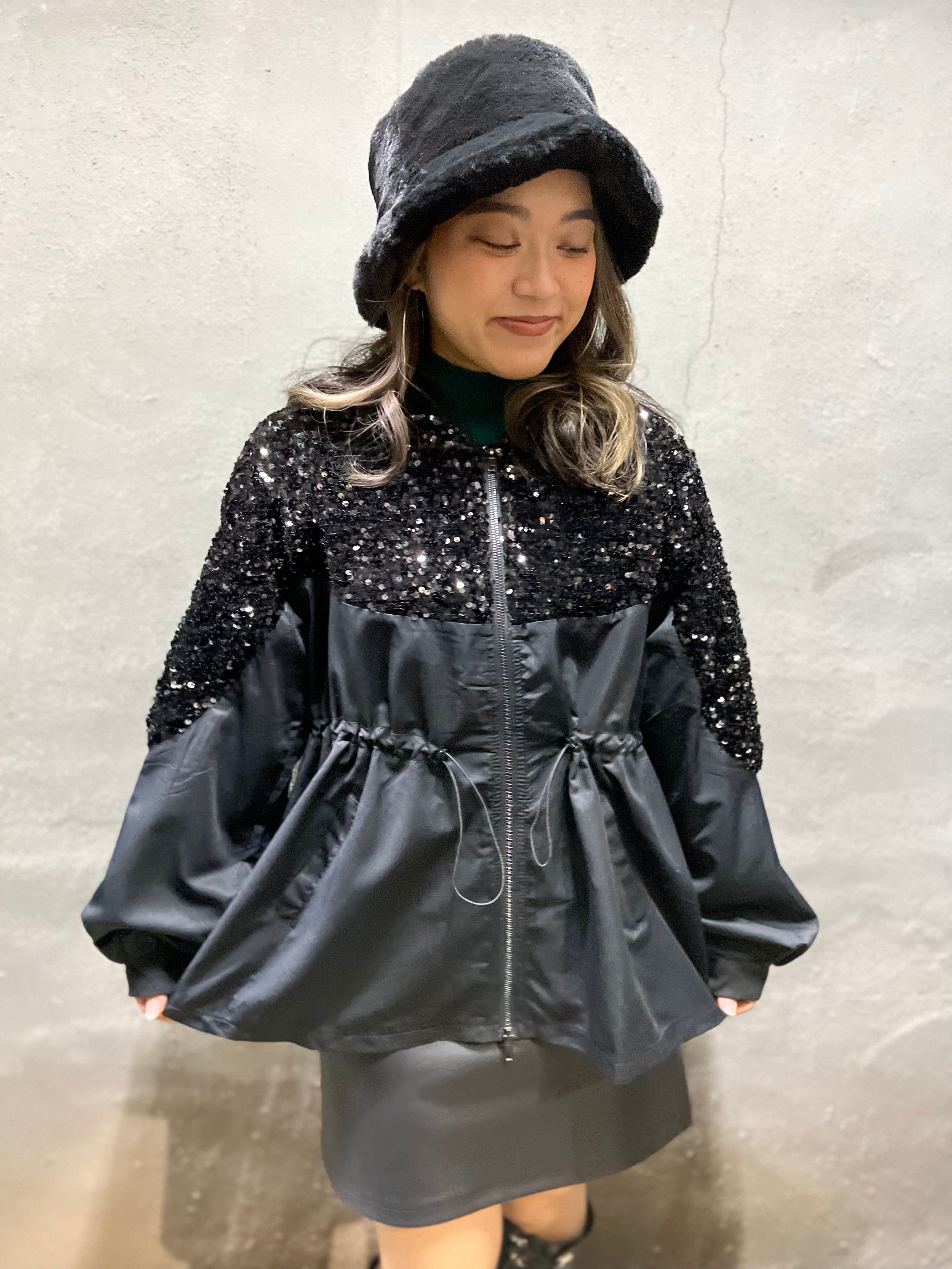 spangle change drawstring shape zip jacket ジャケット スパンコール ドロスト ジップ