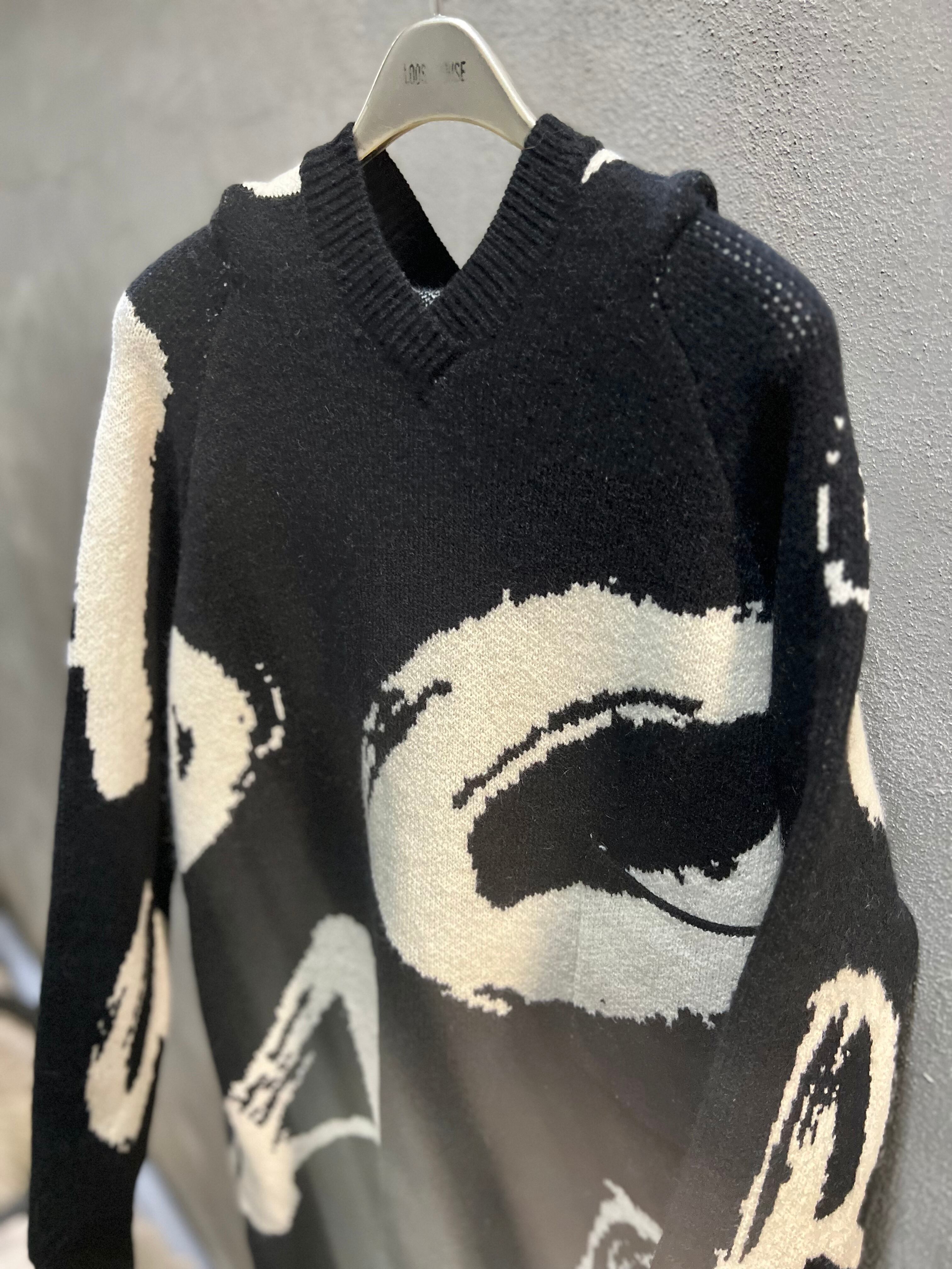 jacquard knit brush text hoodie one-piece ニット ワンピース ニットワンピ フーディー