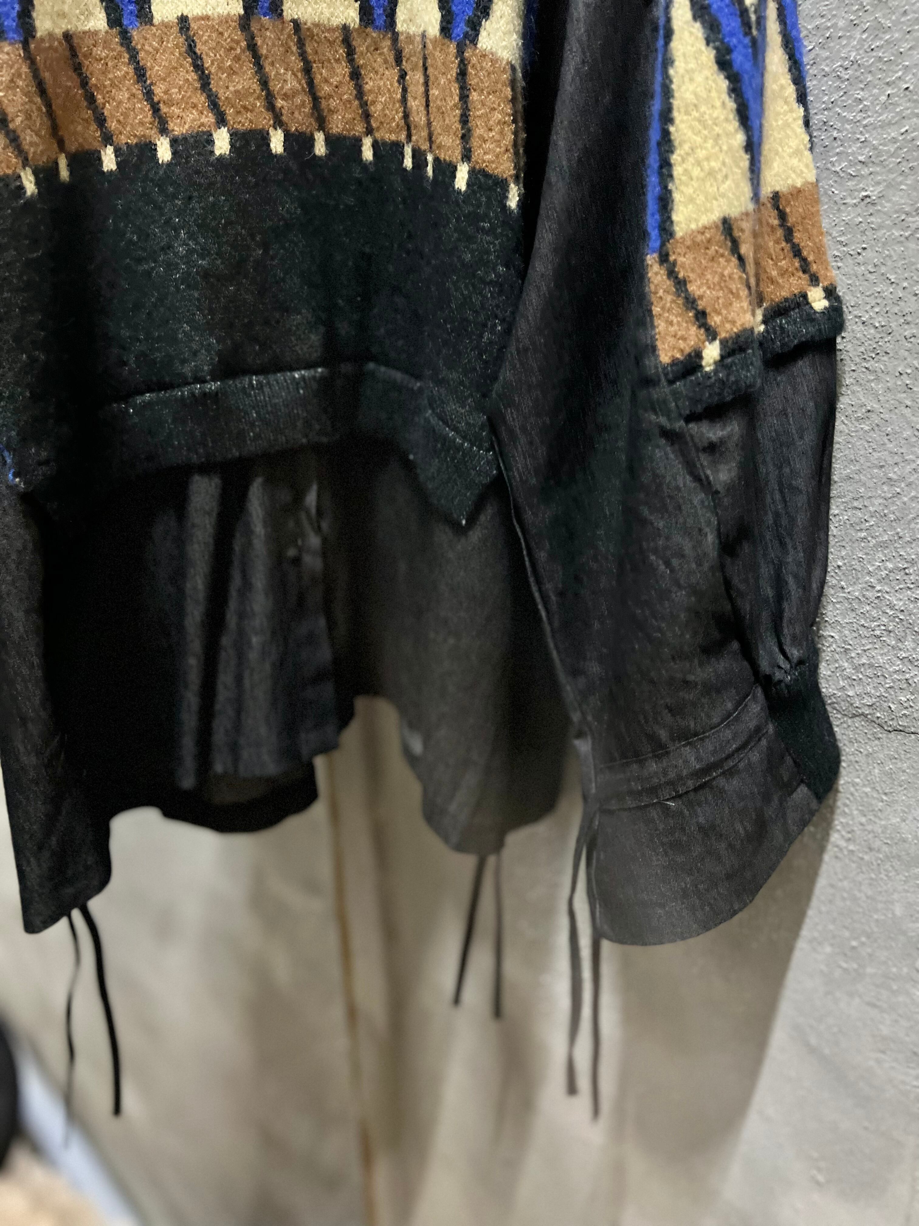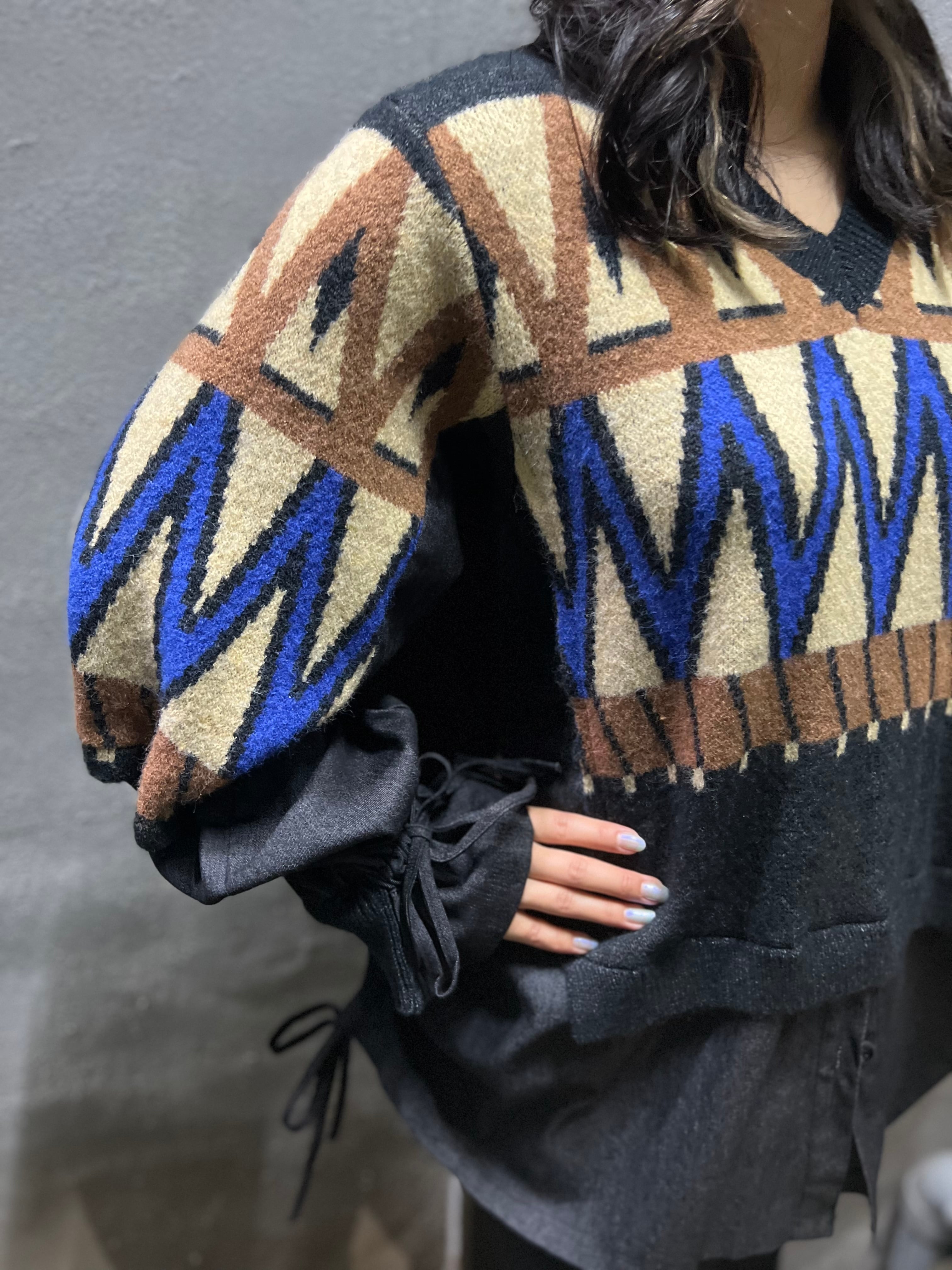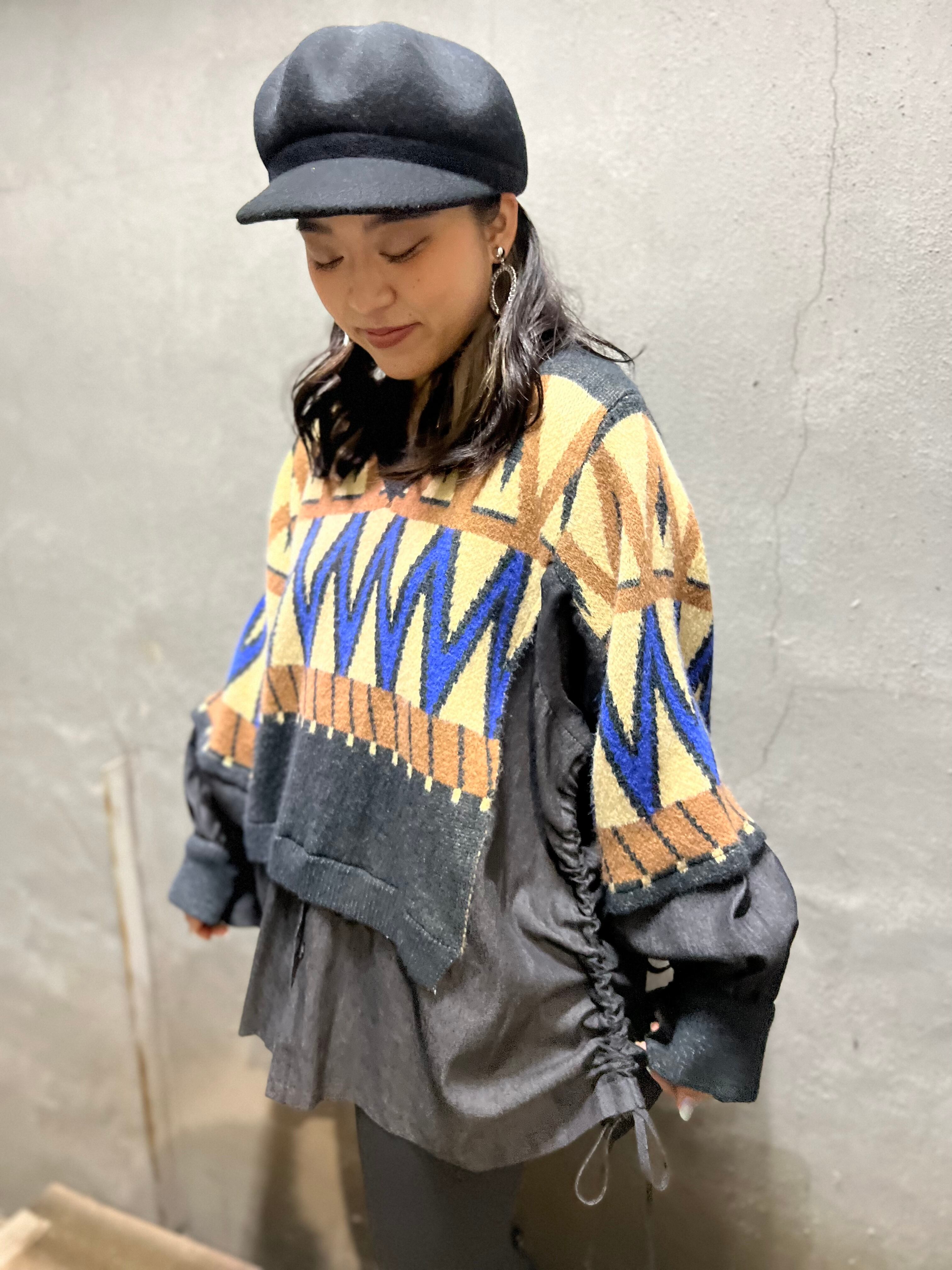 denim × knit docking design tunic チュニック デニム ニット ドッキング Vネック ドローコード