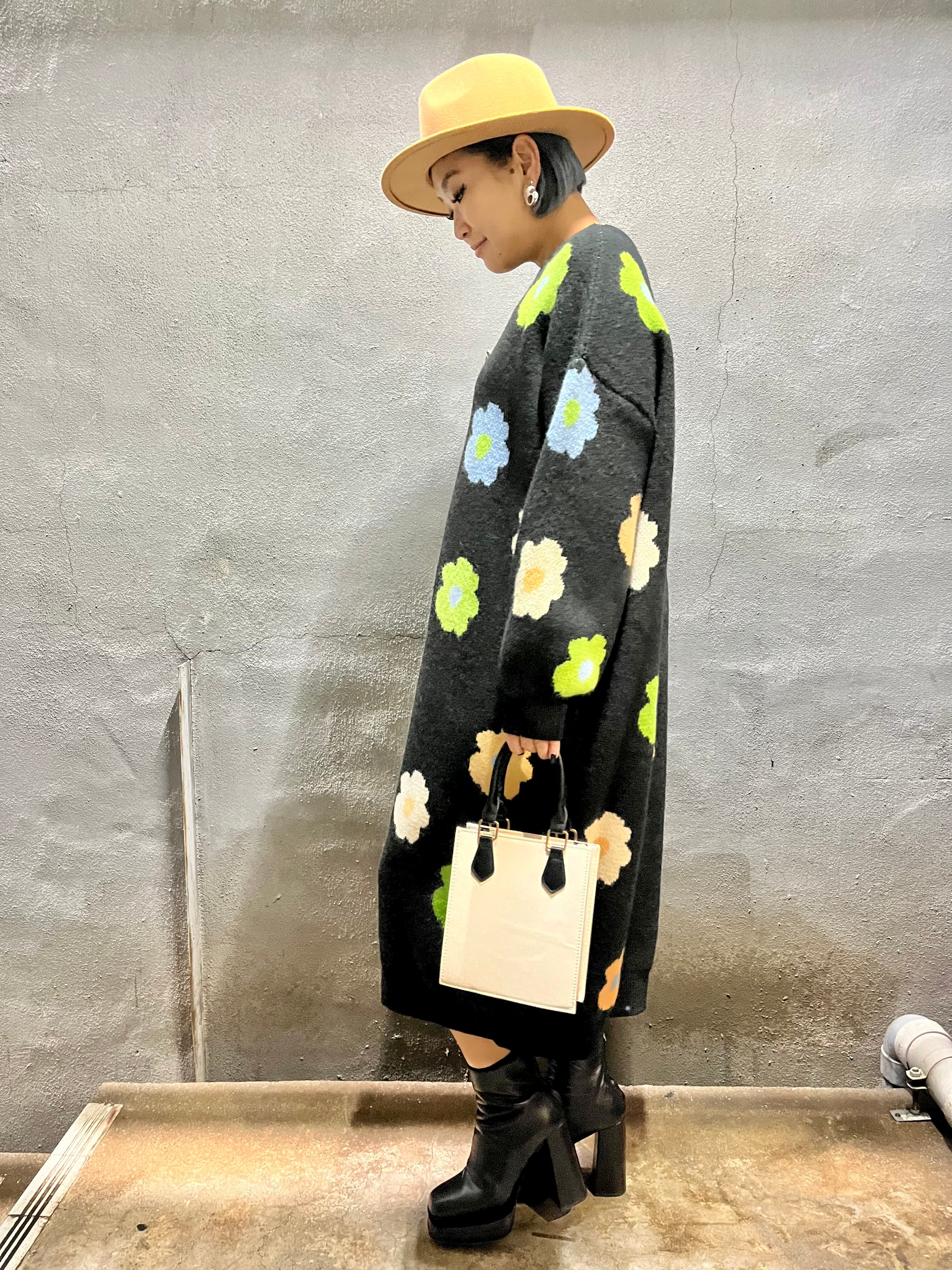 flower knit long one-piece ワンピース ニット ニットワンピ 花柄 ゆったりめ ロング丈