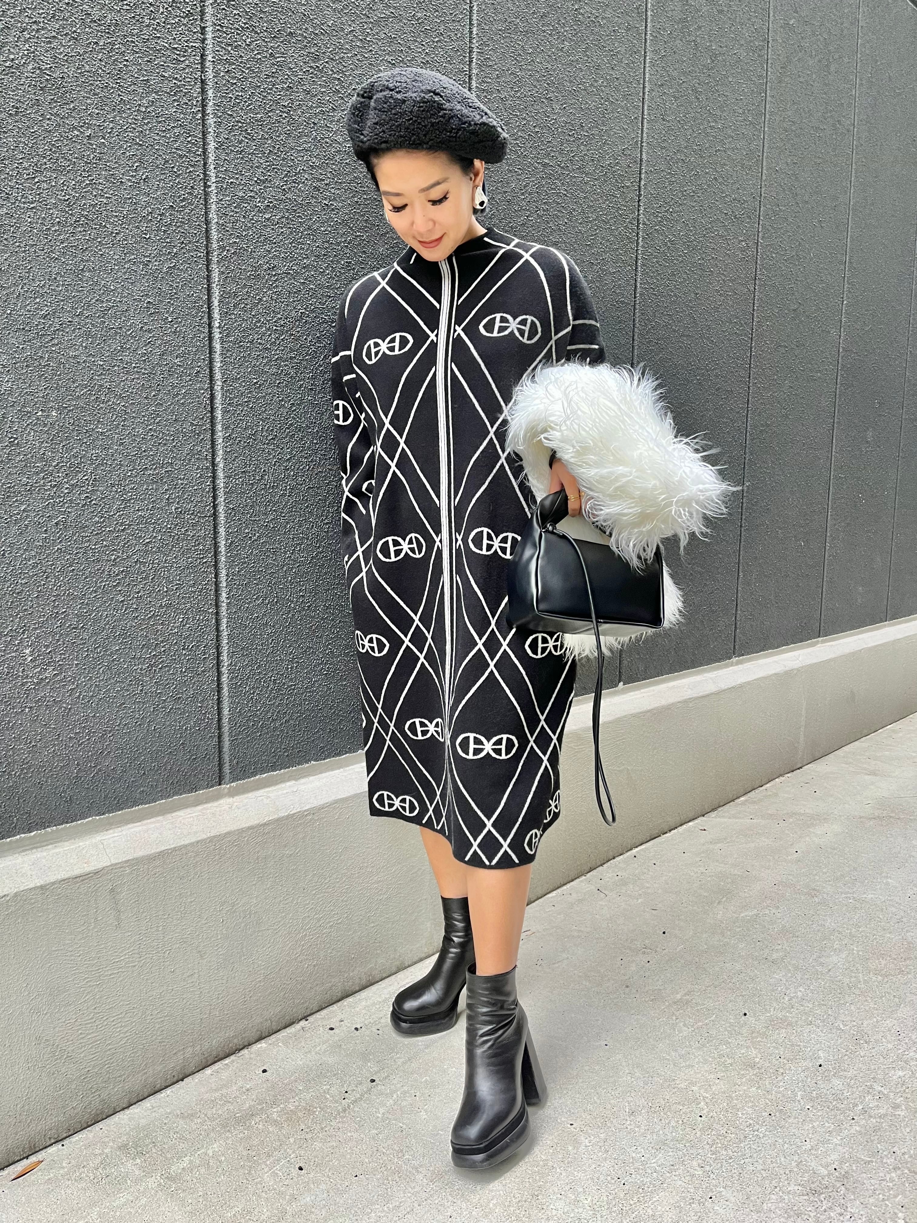 graphic pattern knit long one-piece ニット ワンピース ニットワンピ 柄ニット グラフィック ロングワンピ