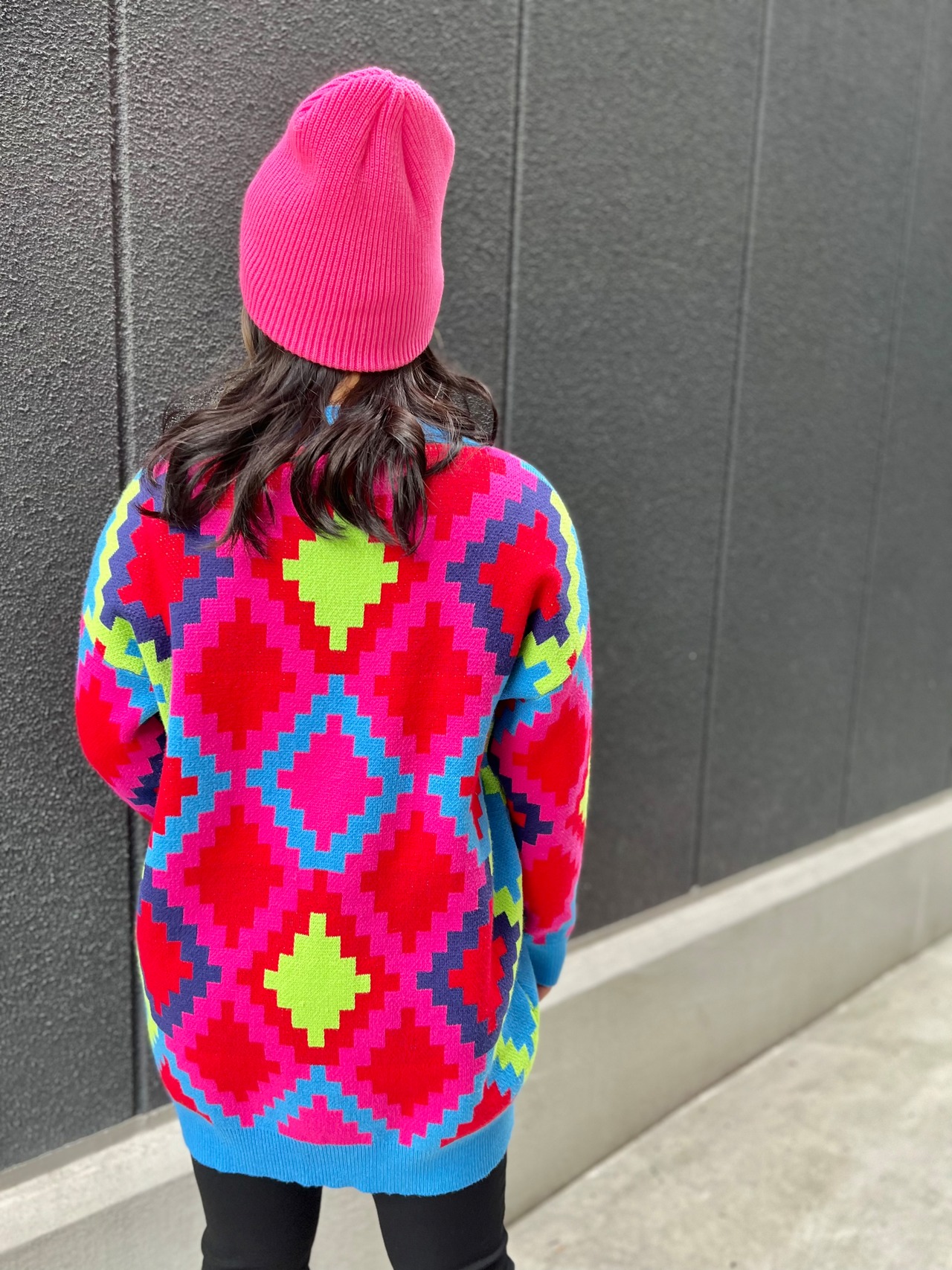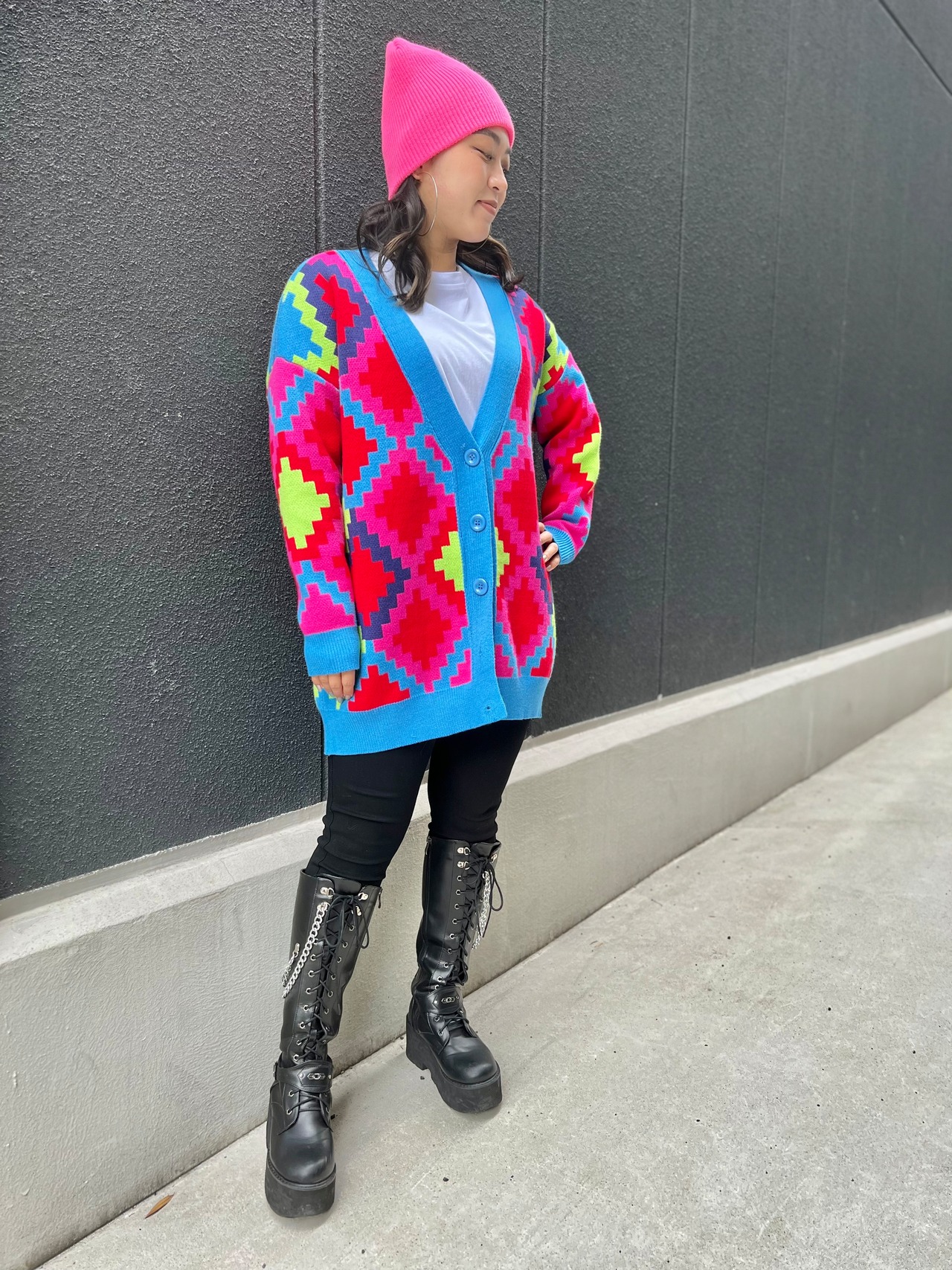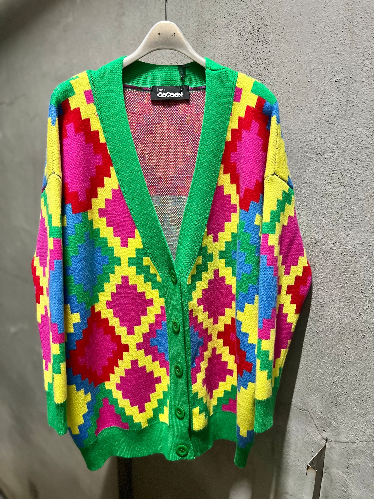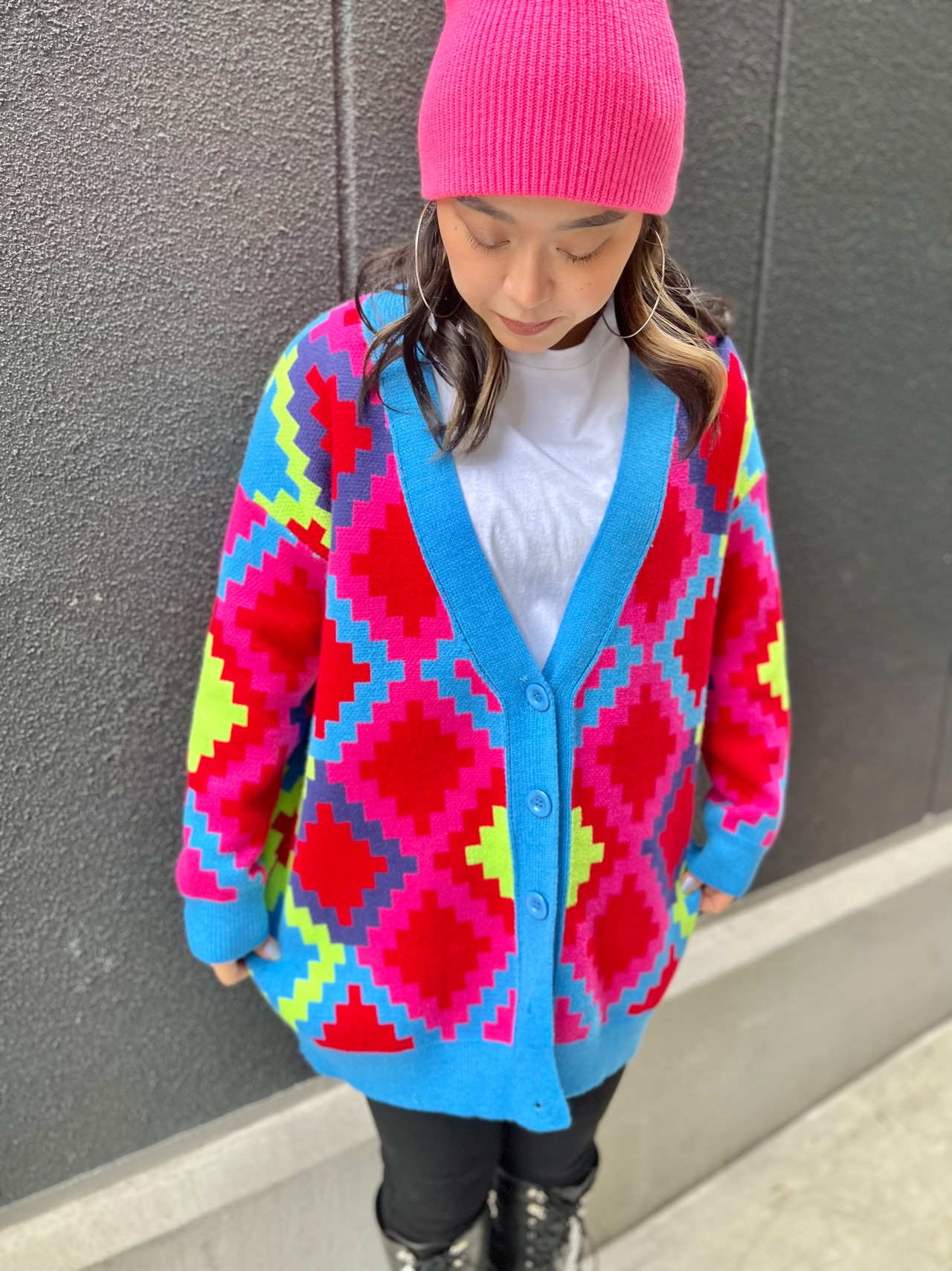 colorful rhombus knit cardigan ニット カーディガン ニットカーデ 菱形 カラフル
